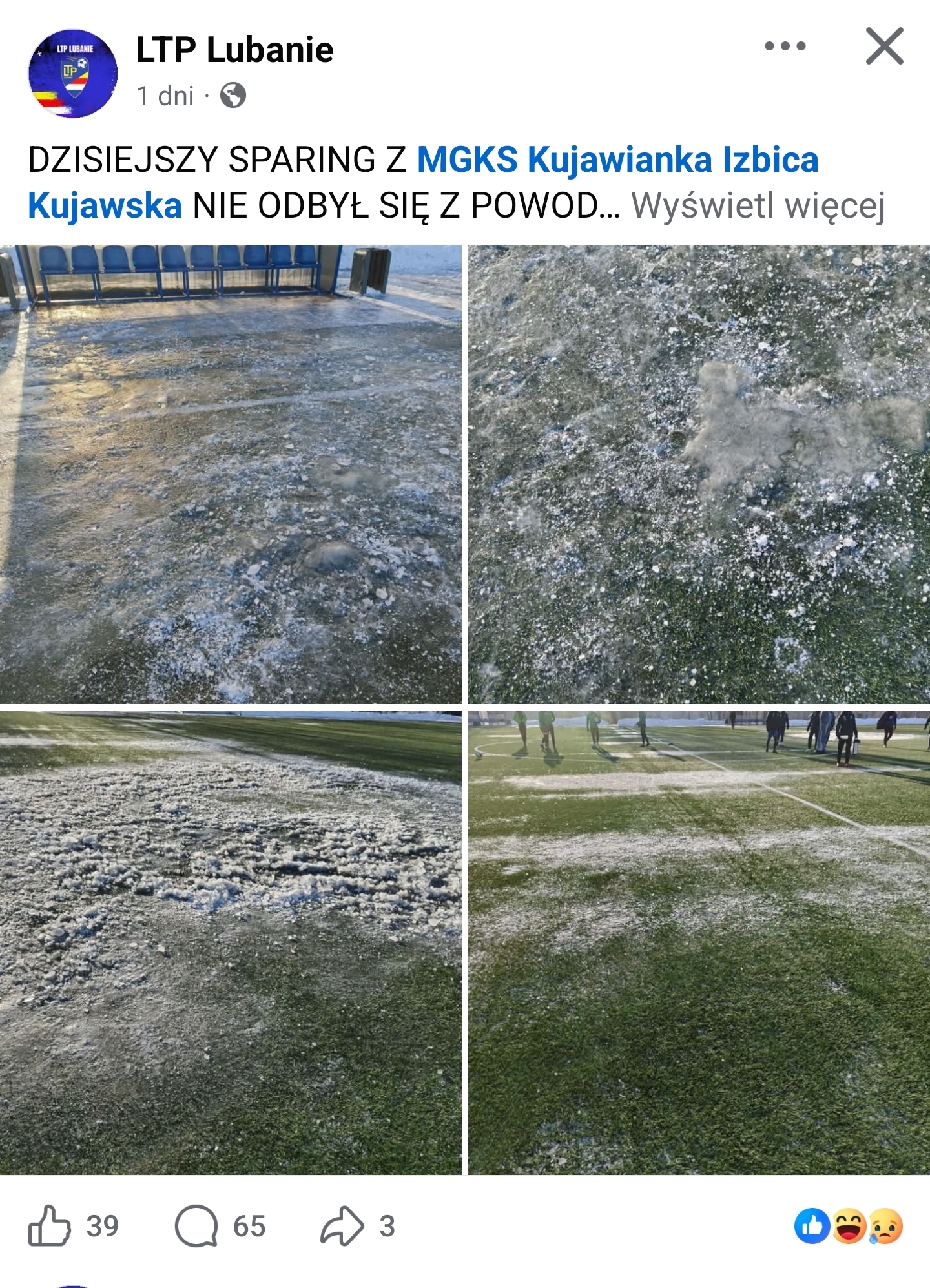 Zaplanowany sparing pomiędzy MGKS Kujawianka Izbica Kujawska a LTP Lubanie nie doszedł do skutku. Powodem był zły stan boiska we Włocławku, na którym miało zostać rozegrane spotkanie. Informację o odwołaniu meczu oba kluby przekazały w mediach społecznościowych. Z opublikowanych komunikatów wynika, że nawierzchnia była zamarznięta i nieprzygotowana do gry, co – zdaniem klubów – stwarzało realne zagrożenie dla zdrowia zawodników. Kluby opublikowały również zdjęcia dokumentujące stan boiska.