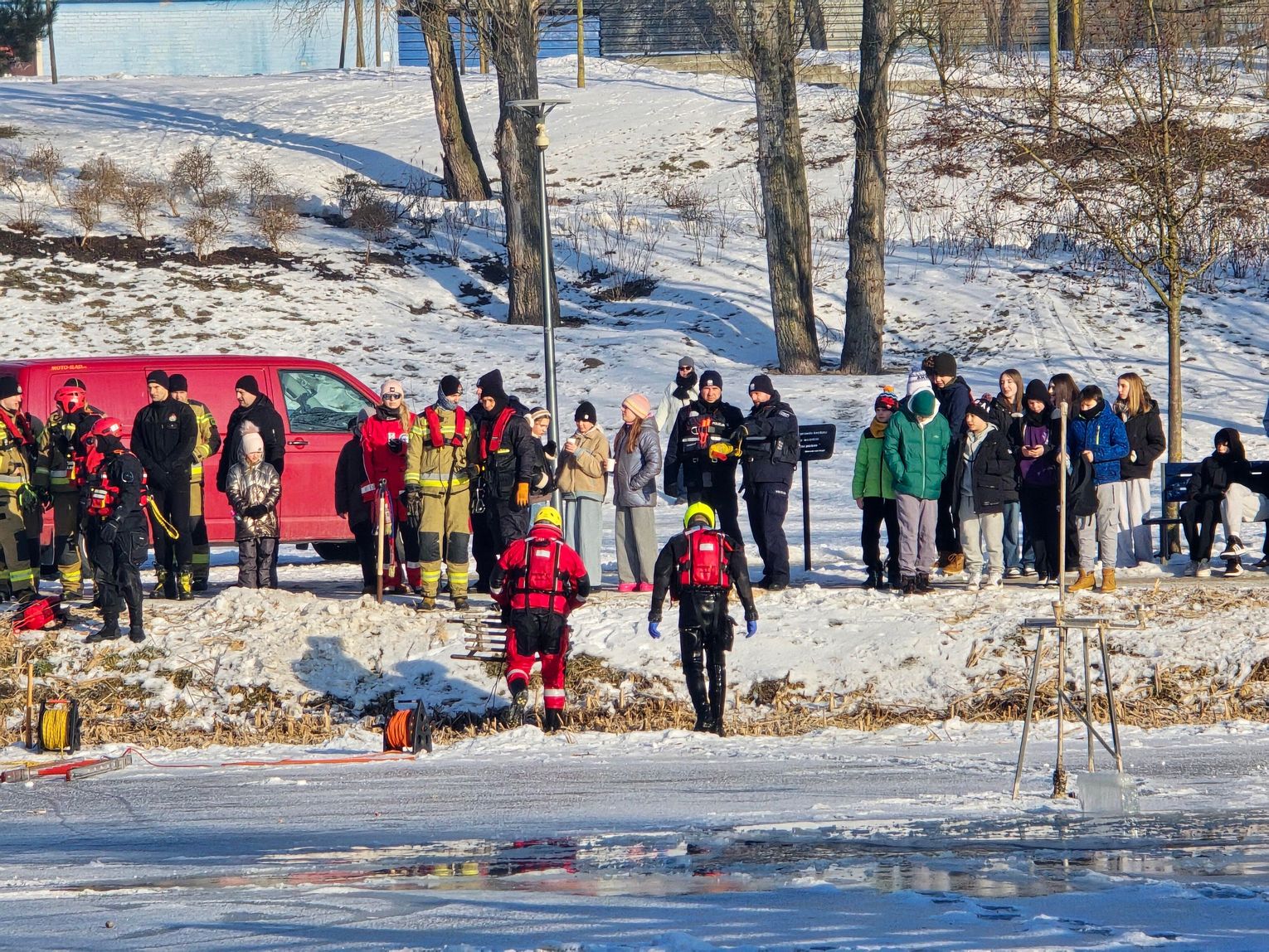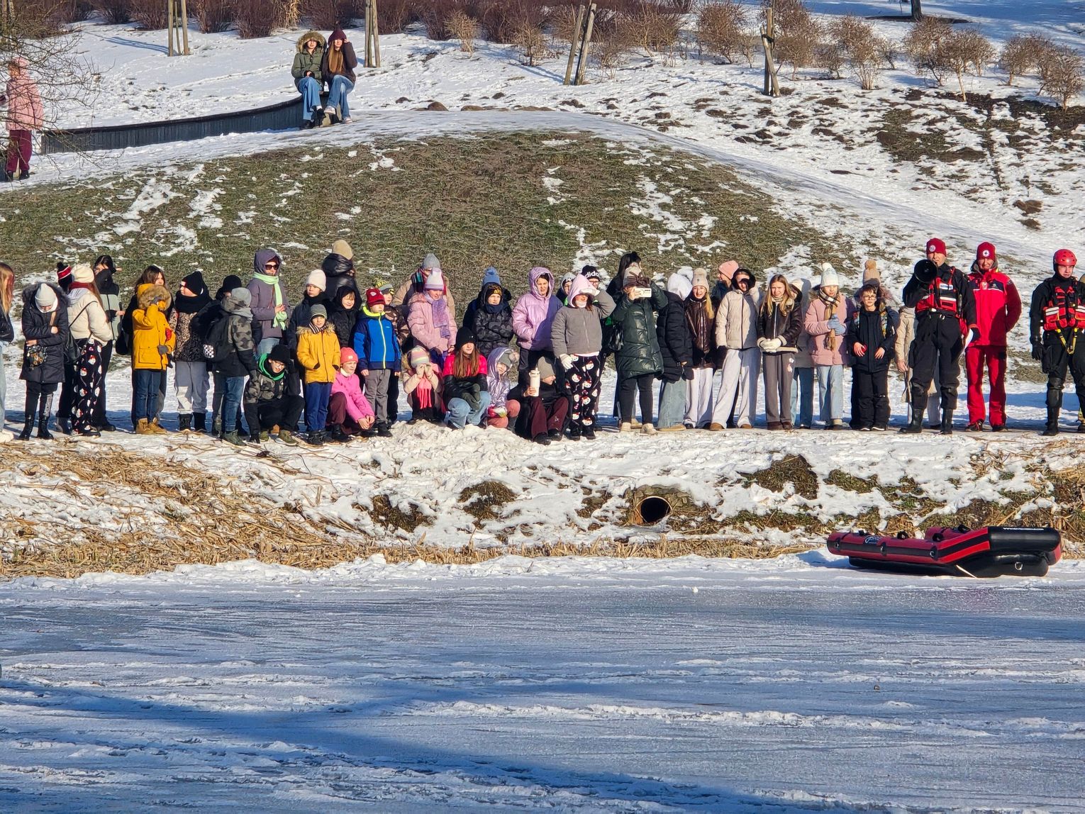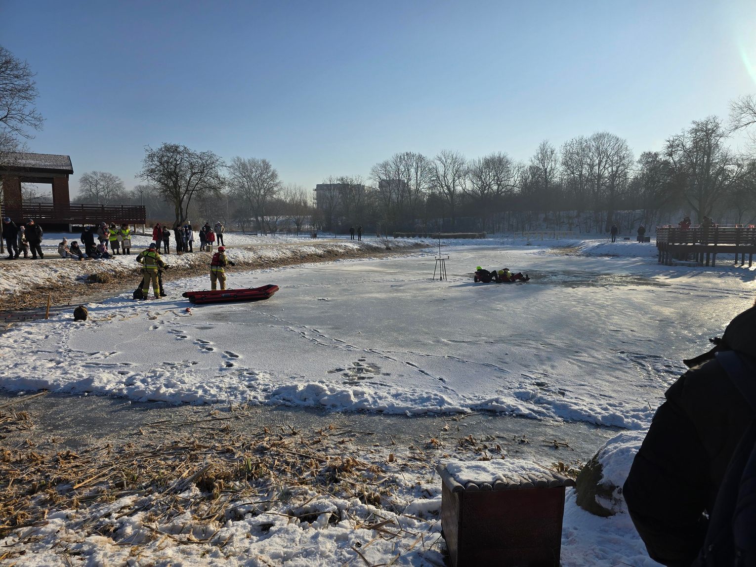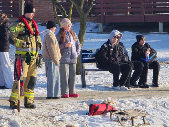 W Parku na Słodowie, w pobliżu Basenu Miejskiego, od godz. 10.00-12.00 odbywają się otwarte pokazy ratownictwa na lodzie. Na miejscu są ratownicy WOPR, strażacy oraz policjanci. Wydarzenie ma charakter edukacyjny – każdy może podejść, obejrzeć przygotowane scenki i dowiedzieć się, jak wygląda akcja ratunkowa na lodzie i na wodzie, a także czego nie robić w sytuacji zagrożenia. Zaproszenie na pokaz służby skierowały do szkół. Wśród widzów są uczniowie, którzy przyszli z nauczycielami i pozostają pod ich opieką. Organizatorzy przygotowali też poczęstunek – rozdawana jest grochówka oraz kiełbaski. Największe zainteresowanie budzą dynamiczne scenki pokazowe. W jednej z nich odgrywana jest sytuacja, w której mężczyzna przypadkowo wchodzi na zamarzniętą taflę, lód załamuje się, a poszkodowany zaczyna tonąć. Ratownicy prezentują, jak wygląda podejście do przerębla, asekuracja i wydobycie człowieka przy użyciu specjalistycznego sprzętu. W kolejnej scence osobę, która znalazła się w wodzie, ratują policjanci. Funkcjonariusze pokazują, jak przy wykorzystaniu specjalistycznego sprzętu można bezpiecznie dotrzeć do poszkodowanego i wyciągnąć go z przerębla, nie narażając życia ratowników. W innej scence przewidziano zdarzenie z udziałem wędkarza, pod którym załamuje się lód. Pokazywane są sposoby samoratowania oraz zachowania, które mogą zwiększyć szanse na wydostanie się z wody i bezpieczne oddalenie od miejsca, w którym doszło do załamania lodu. Emocji nie brakuje także wśród dzieci. W pewnym momencie, gdy ratownicy i strażacy wchodzili na lód w ramach ćwiczeń, uczniowie spontanicznie reagowali okrzykami ostrzegawczymi, prosząc, żeby „nie wchodzili” i „uważali”. To, co wyglądało groźnie, było jednak elementem szkoleniowego pokazu – przygotowanego tak, by widzowie mogli zobaczyć realne procedury i zrozumieć, jak łatwo o niebezpieczną sytuację na zamarzniętych akwenach. Pokazy w Parku na Słodowie mają przypominać, że wchodzenie na lód zawsze wiąże się z ryzykiem, a w sytuacji zagrożenia kluczowe jest zachowanie spokoju, wezwanie pomocy i unikanie działań, które mogą narazić kolejne osoby.