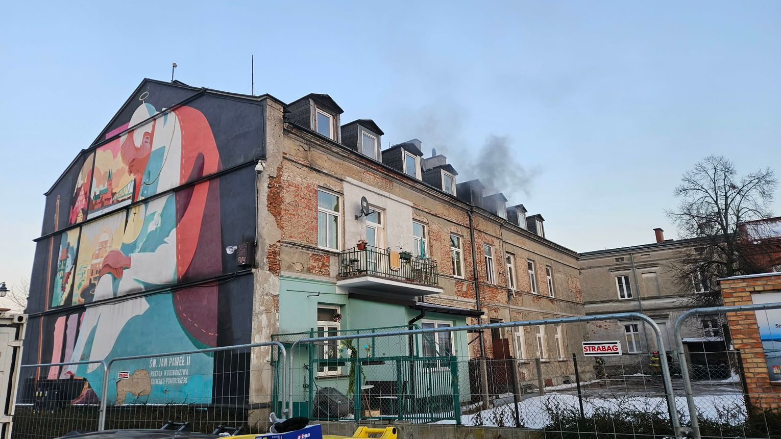 Przy ul. Bulwary we Włocławku trwa akcja gaśnicza. Ogień pojawił się w budynku, który jest dobrze rozpoznawalny przez mieszkańców miasta – na jego elewacji znajduje się mural przedstawiający Jana Pawła II. Na miejscu pracują zastępy straży pożarnej. Strażacy prowadzą działania gaśnicze i zabezpieczają teren. Z informacji uzyskanych na tę chwilę wynika, że sytuacja jest dynamiczna, a akcja nadal trwa. Na ten moment wiadomo że nie ma osób poszkodowanych wszyscy zdążyli się ewakuować. Więcej informacji wkrótce