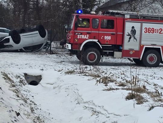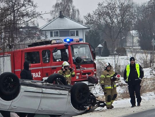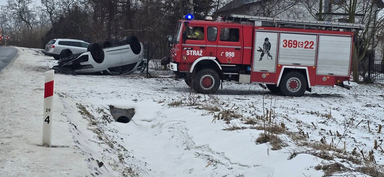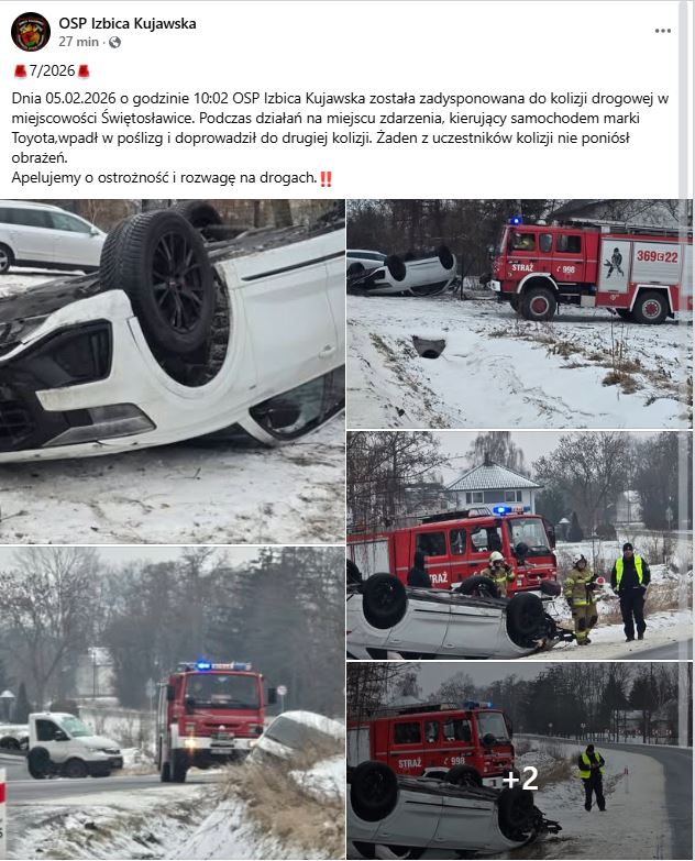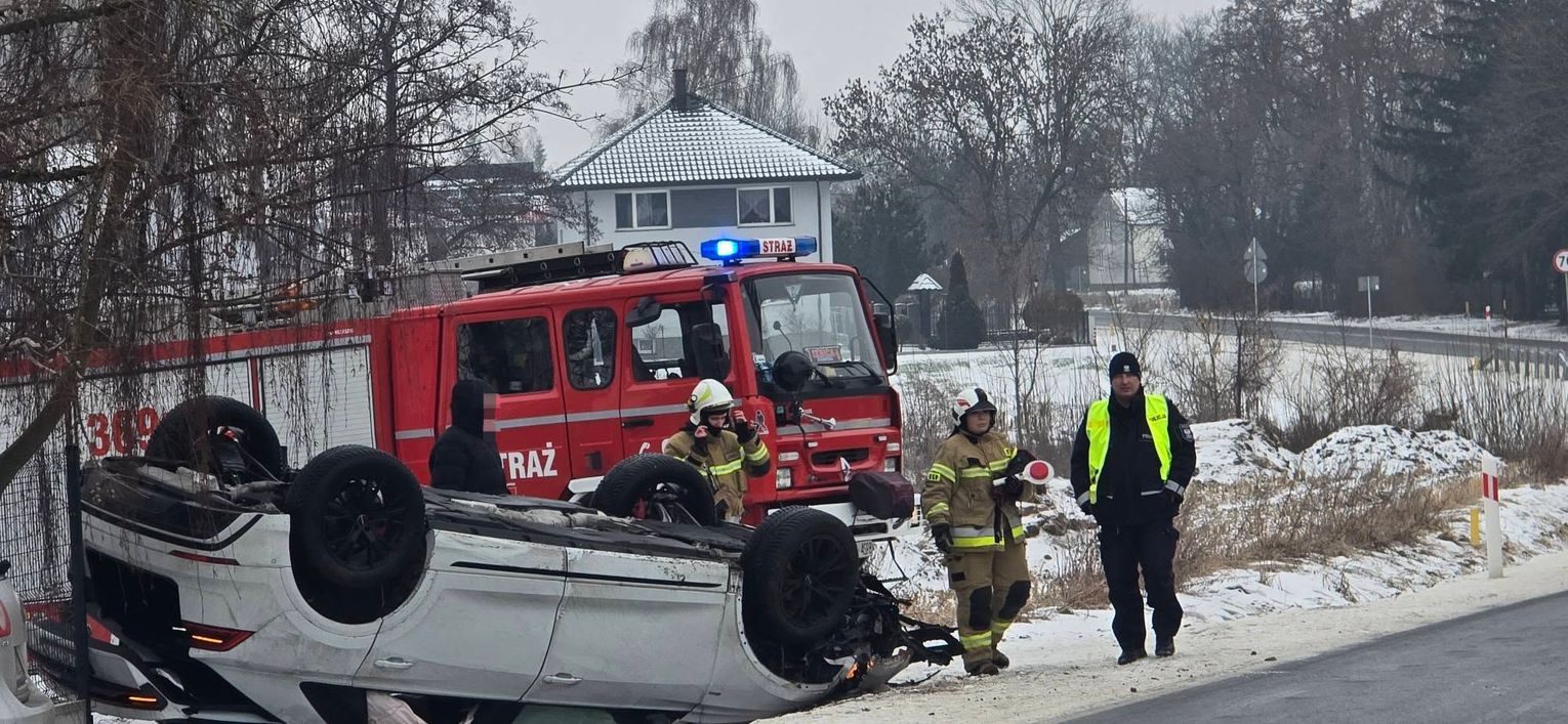 Podczas działań prowadzonych na miejscu zdarzenia kierujący samochodem marki Toyota wpadł w poślizg, w wyniku czego doszło do drugiej kolizji. Pojazd przewrócił się na dach. Na miejscu interweniowały służby ratownicze, które zabezpieczyły teren oraz usunęły zagrożenia związane z uszkodzonymi pojazdami. Jak przekazano, żaden z uczestników zdarzenia nie odniósł obrażeń i nie było potrzeby udzielania pomocy medycznej. Służby apelują do kierowców o zachowanie szczególnej ostrożności oraz rozwagi na drogach, zwłaszcza w trudnych warunkach zimowych.