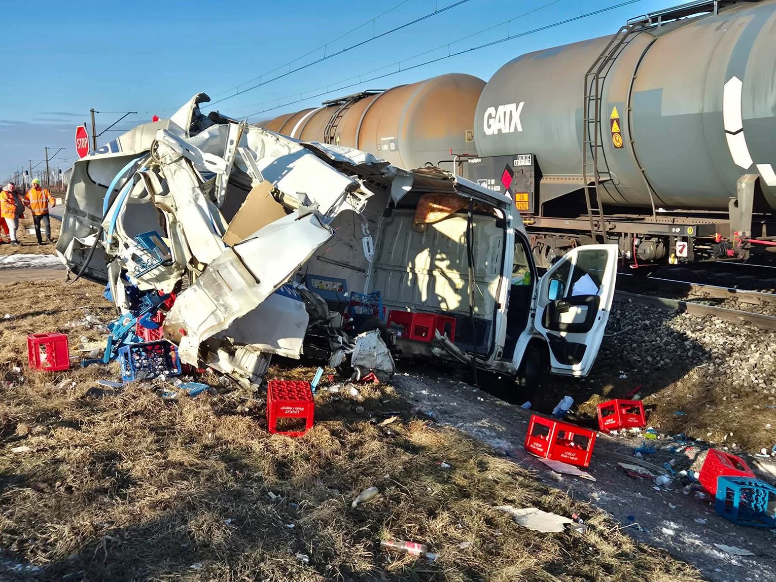 W czwartek, 19 lutego 2026 roku, w miejscowości Anusin w gminie Piotrków Kujawski doszło do groźnego wypadku na przejeździe kolejowym. Samochód dostawczy zderzył się z pociągiem towarowym.