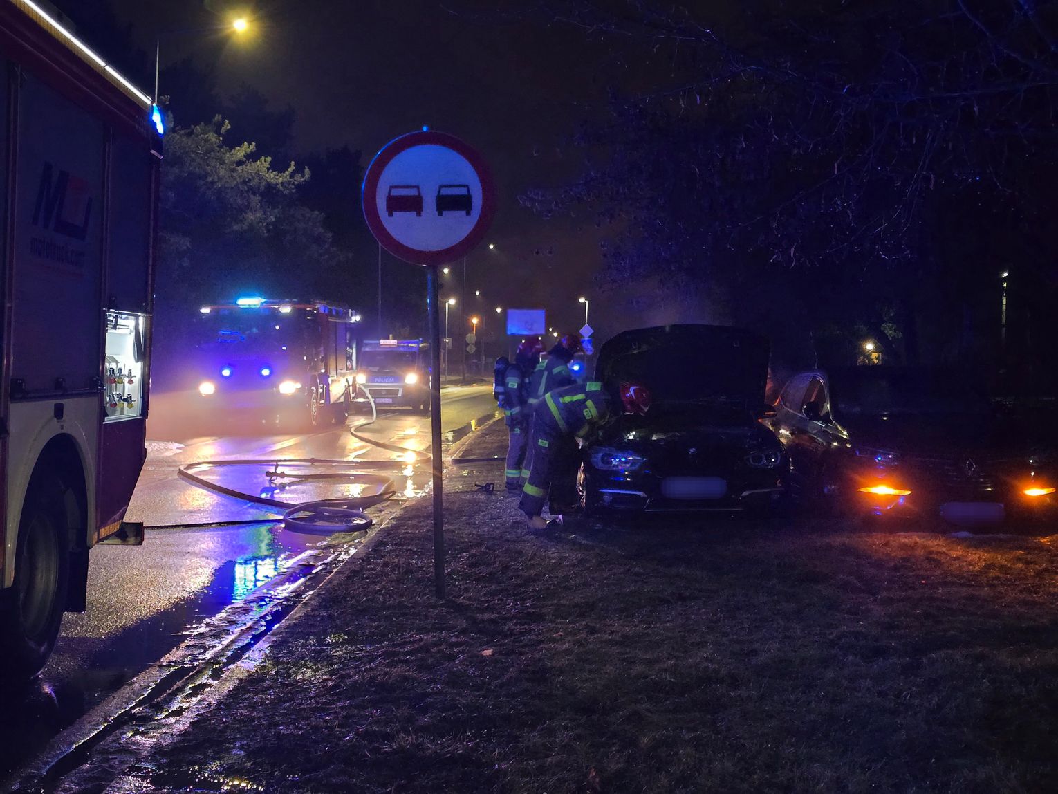 Przed godziną 3:00 w nocy otrzymaliśmy informację o trwającej akcji służb na ul. Kapitulnej. Na miejscu widoczne było duże zadymienie, co wskazywało na pożar. Po przybyciu okazało się, że palił się samochód osobowy marki BMW. W chwili naszego dotarcia na miejsce pojazd był już dogaszany przez strażaków. W działaniach brały udział dwa zastępy straży pożarnej, a teren zabezpieczała Policja. Ze wstępnych ustaleń strażaków wynika, że pożar BMW najprawdopodobniej był wynikiem podpalenia. Zaparkowany obok Renault nie został objęty ogniem, jednak miał wybitą szybę. Szczegóły zdarzenia będą znane po uzyskaniu oficjalnych informacji. Jutro zwrócimy się do rzecznika służb z prośbą o komentarz.