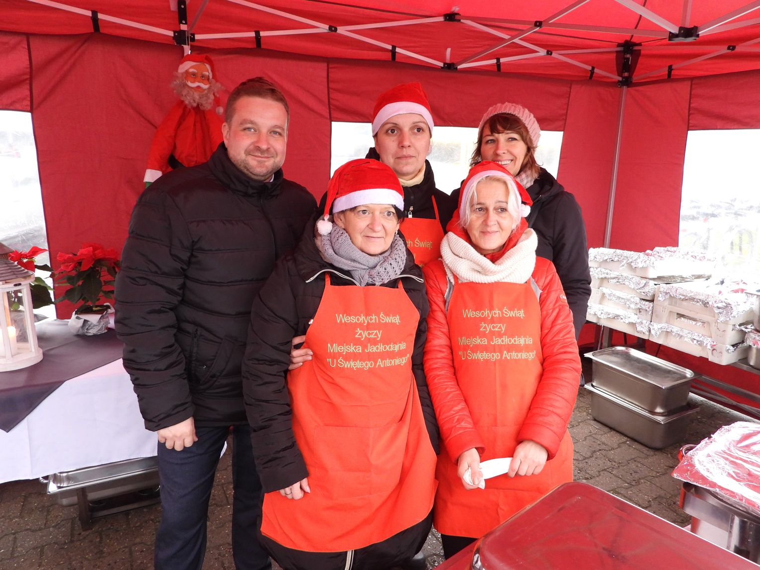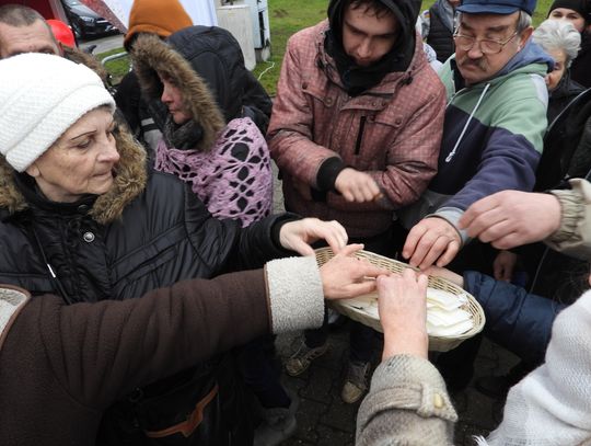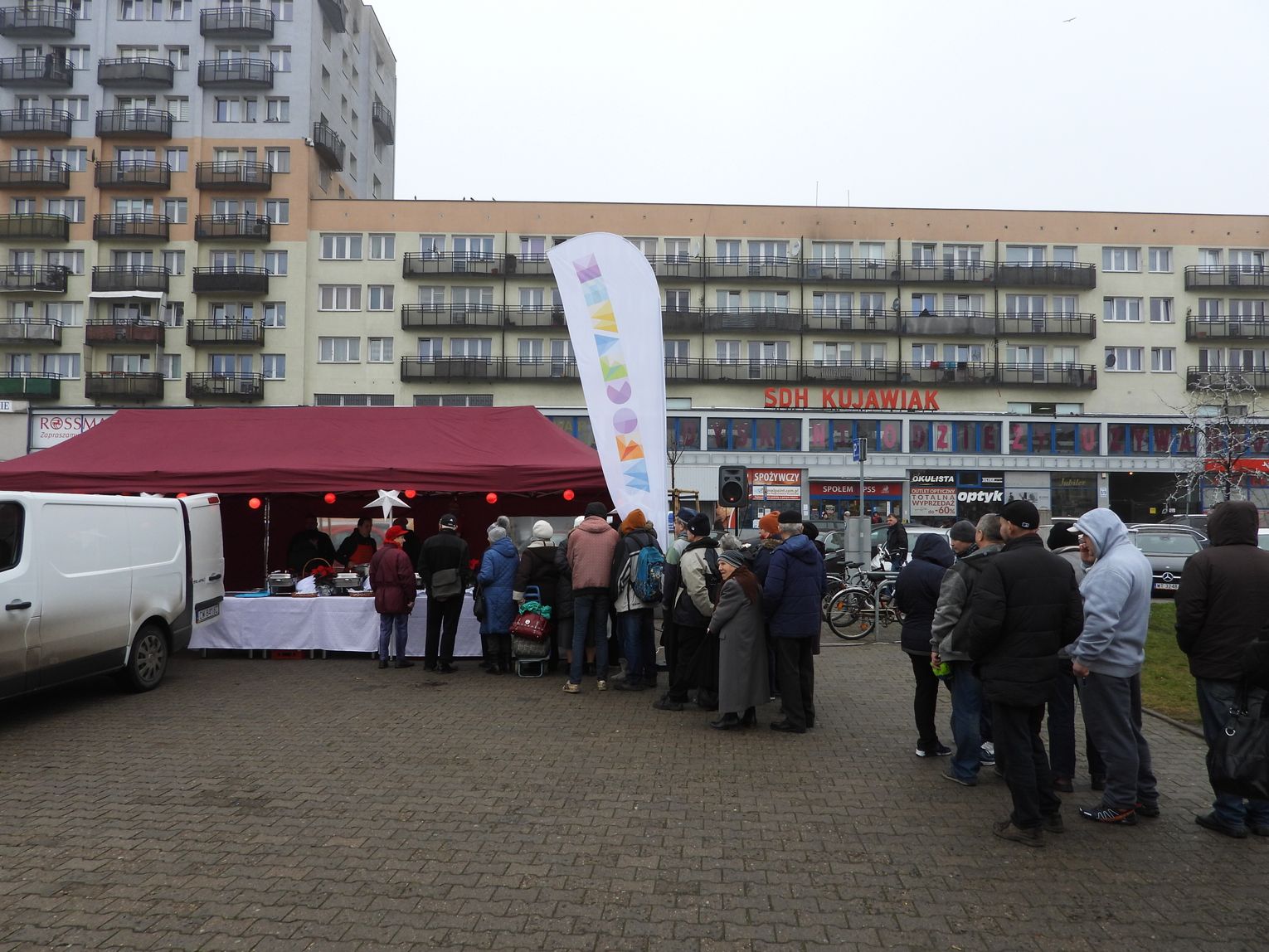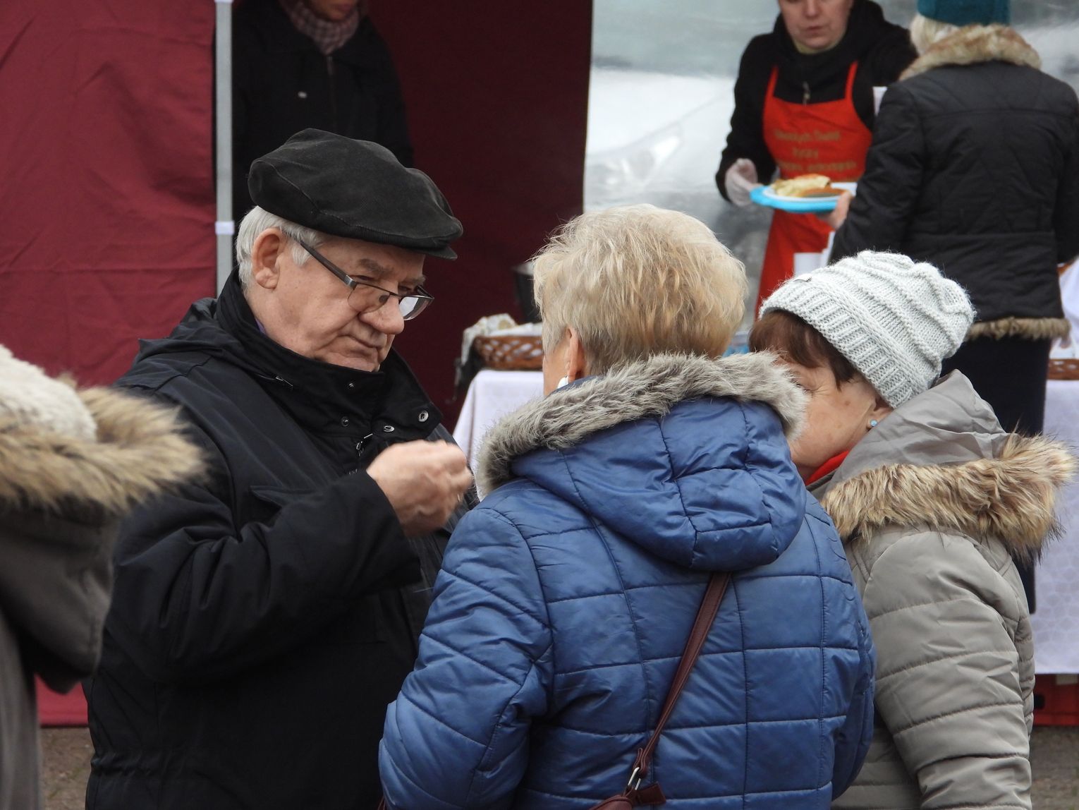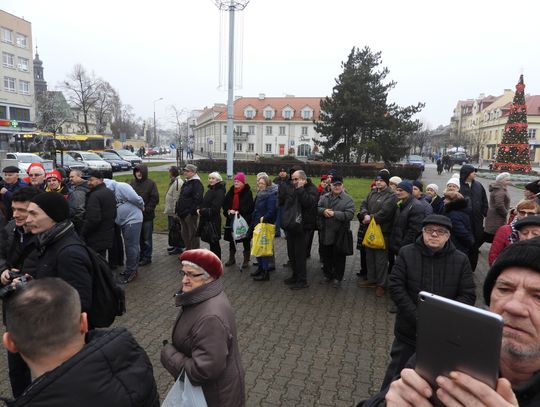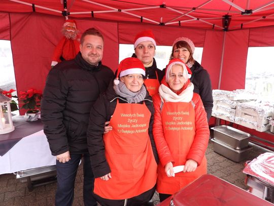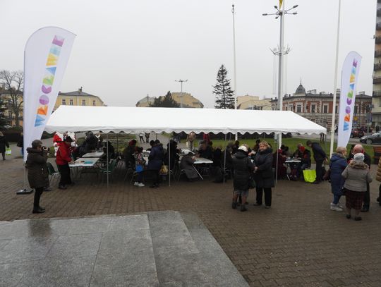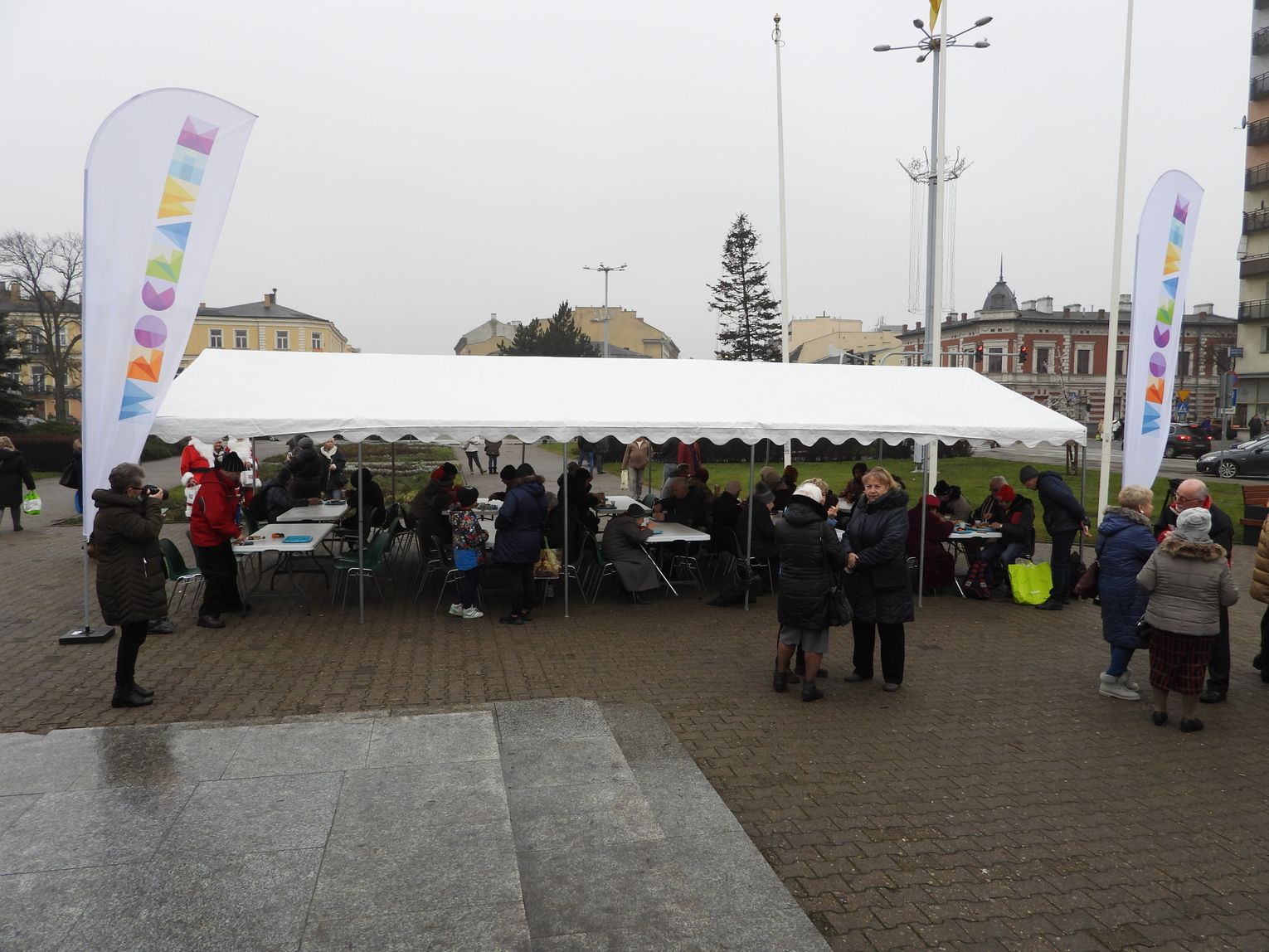 Jadłodajnia miejska przygotowała potrawy, które tradycyjnie znajdujemy na świątecznych stołach, czyli barszcz czerwony, pierogi z kapustą i grzybami, paszteciki z pieczarkami, sałatkę śledziową, zapiekaną rybę oraz makowiec, sernik i mandarynki. Do poczęstunku ustawiła się długa kolejka chętnych.