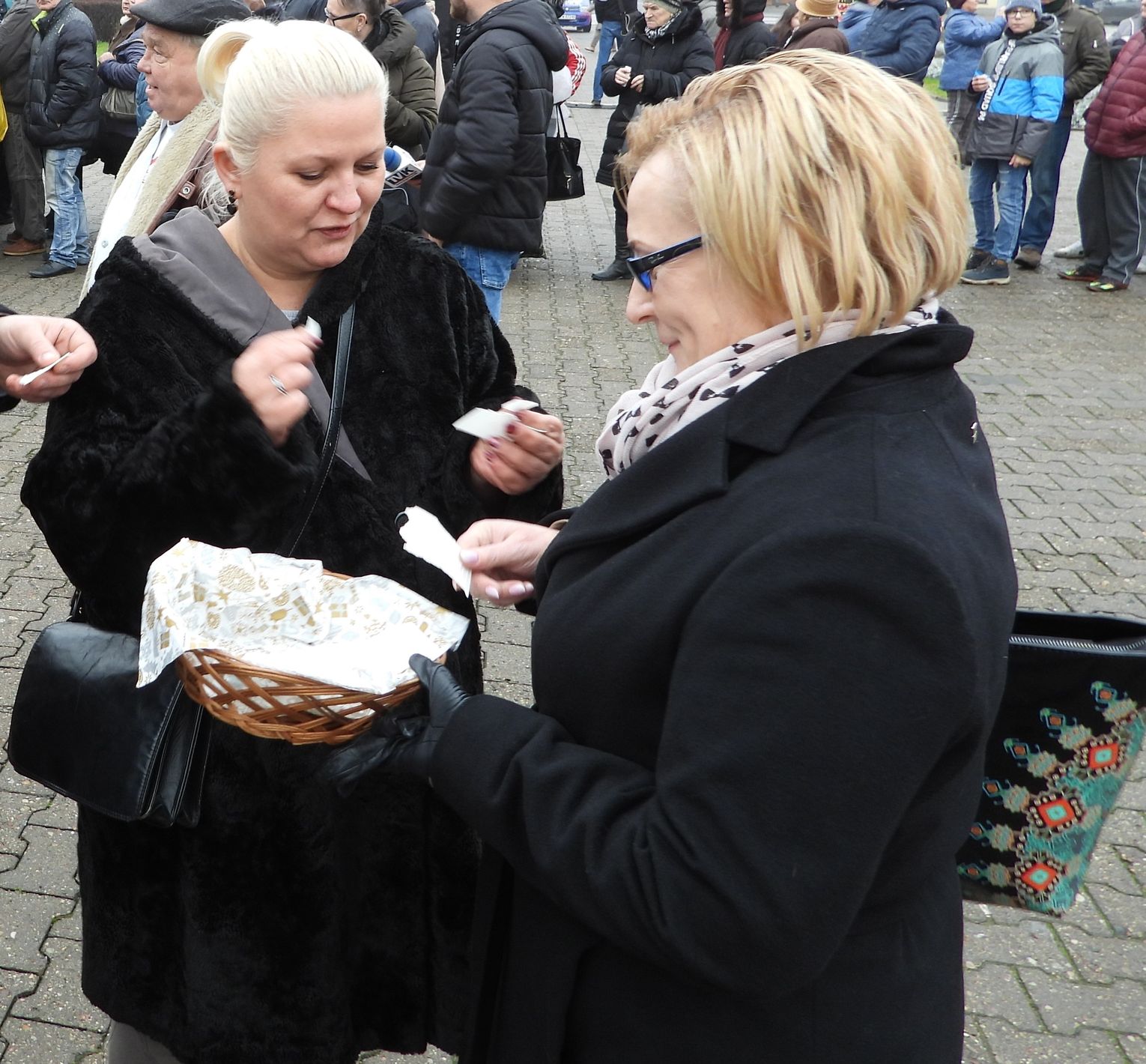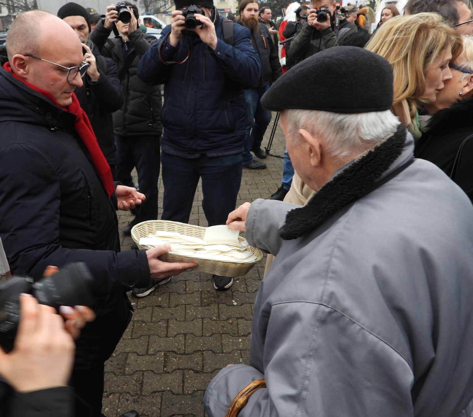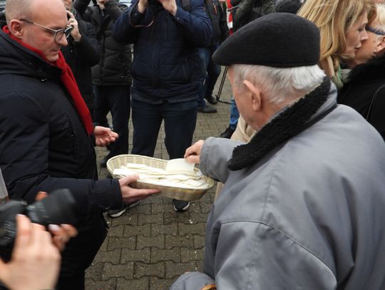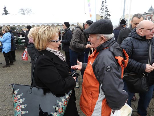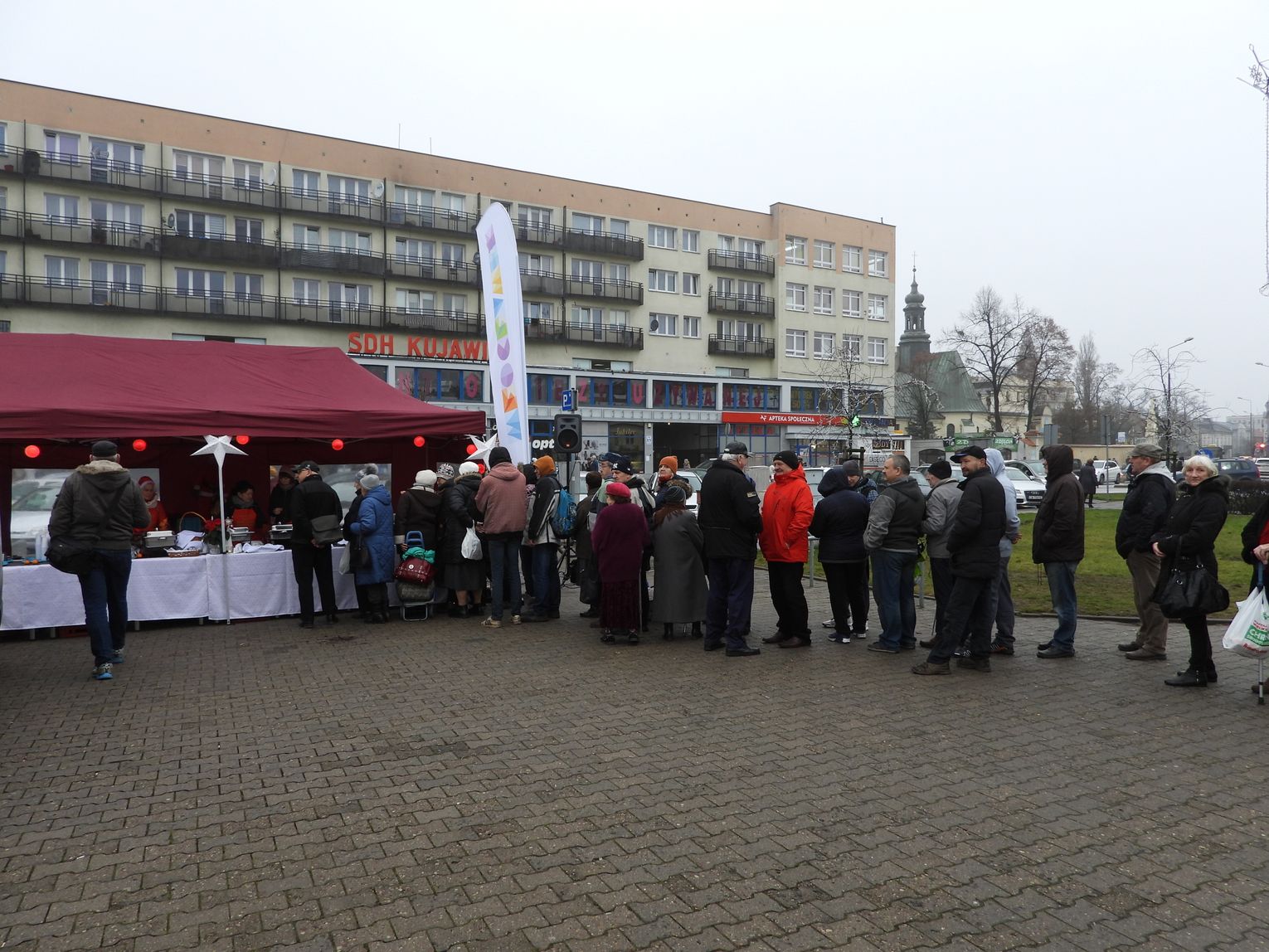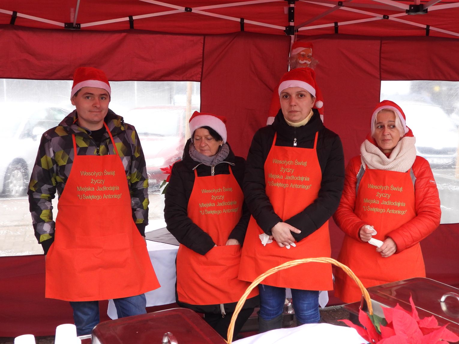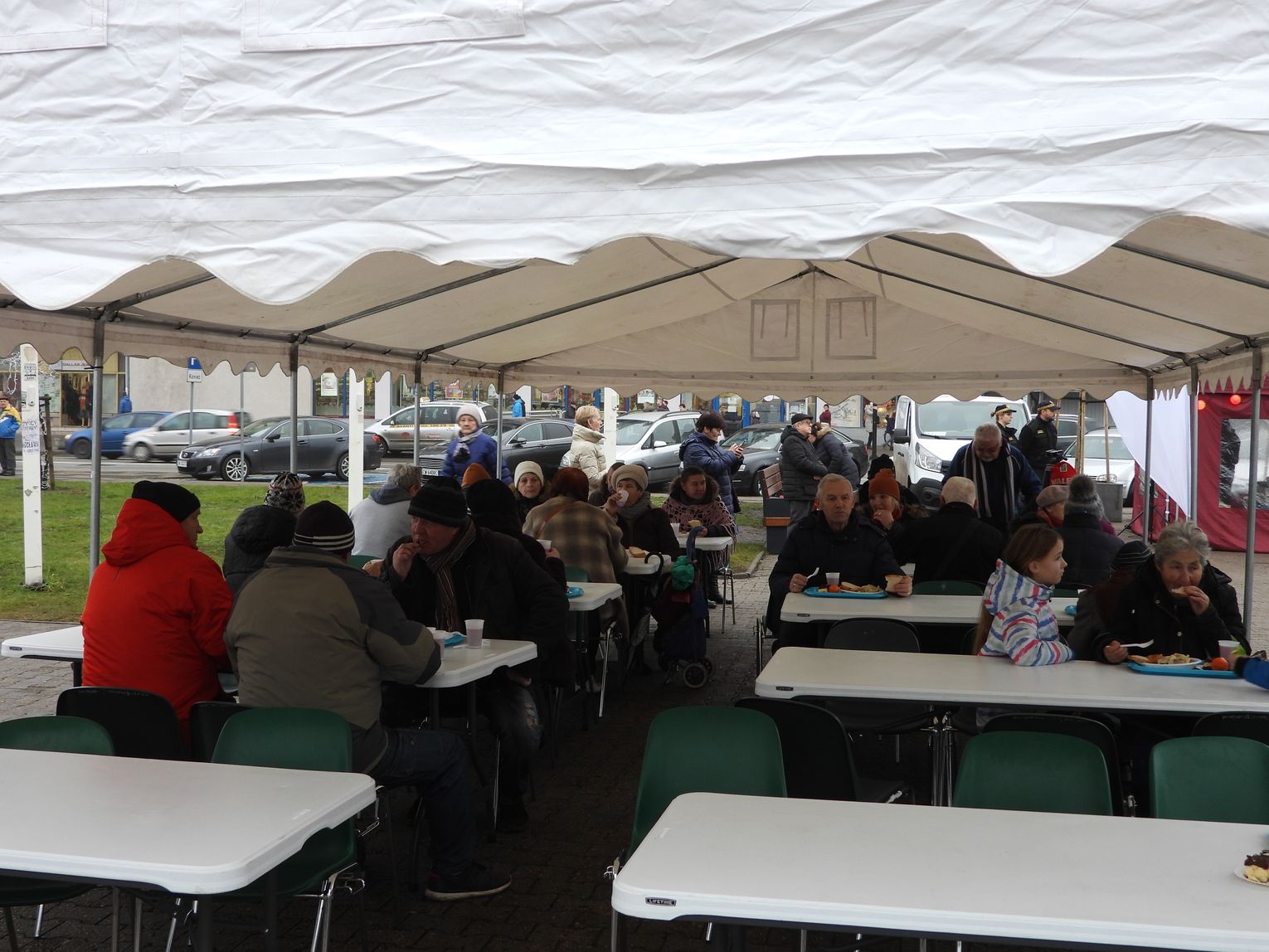 Jadłodajnia miejska przygotowała potrawy, które tradycyjnie znajdujemy na świątecznych stołach, czyli barszcz czerwony, pierogi z kapustą i grzybami, paszteciki z pieczarkami, sałatkę śledziową, zapiekaną rybę oraz makowiec, sernik i mandarynki. Do poczęstunku ustawiła się długa kolejka chętnych.