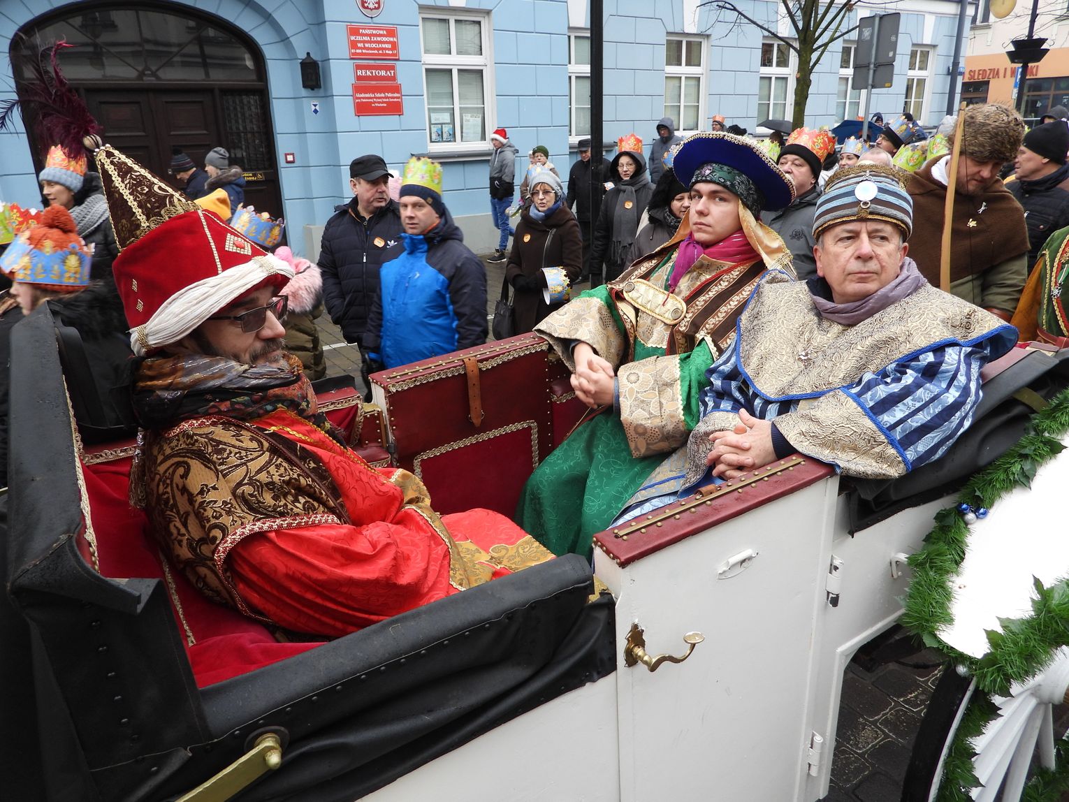 Szóstego stycznia w kościele katolickim obchodzone jest święto Objawienia Pańskiego zwane również świętem Trzech Króli z okazji przybycia przed oblicze nowo narodzonego Jezusa trzech mędrców, Kacpra, Melchiora i Baltazara. Złożyli oni w darze Jezusowi złoto, kadzidło i mirrę. Z tej okazji w wielu miastach Polski organizowane są "Orszaki Trzech Króli", w których biorą udział mieszkańcy. Również we Włocławku od kilku lat organizowany jest taki orszak. O godz.. 11.00 u mimo niezbyt sprzyjającej pogody na placu Wolności spotkali się wierni by "podążyć za gwiazdą" wraz z trzema królami do katedry. Na miejscu uczestnikom rozdawano korony z papieru i śpiewniki. Wymarsz do Bazyli Katedralnej rozpoczął się o godz. 11.30. O godz. 12.00 została odprawiona msza pod przewodnictwem biskupa.