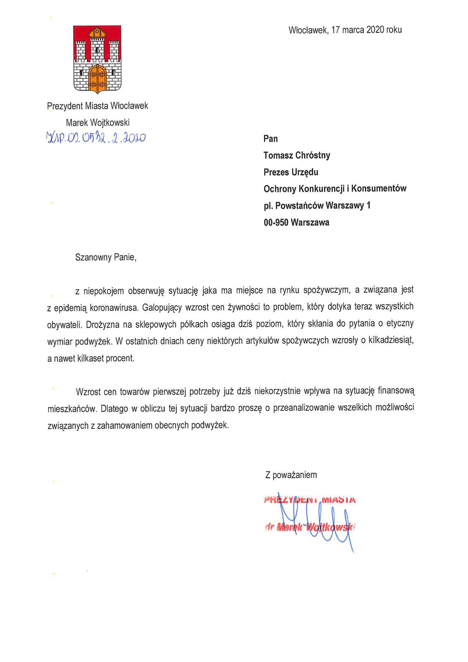 Prezydent Włocławka interweniuje w sprawie cen żywności