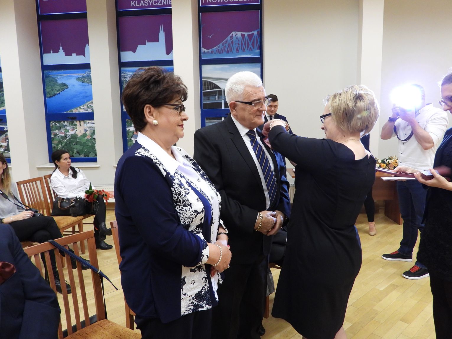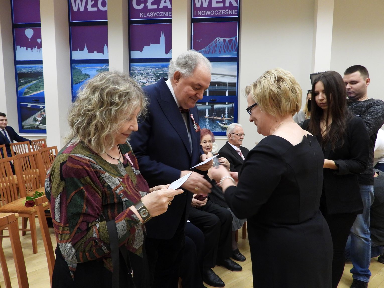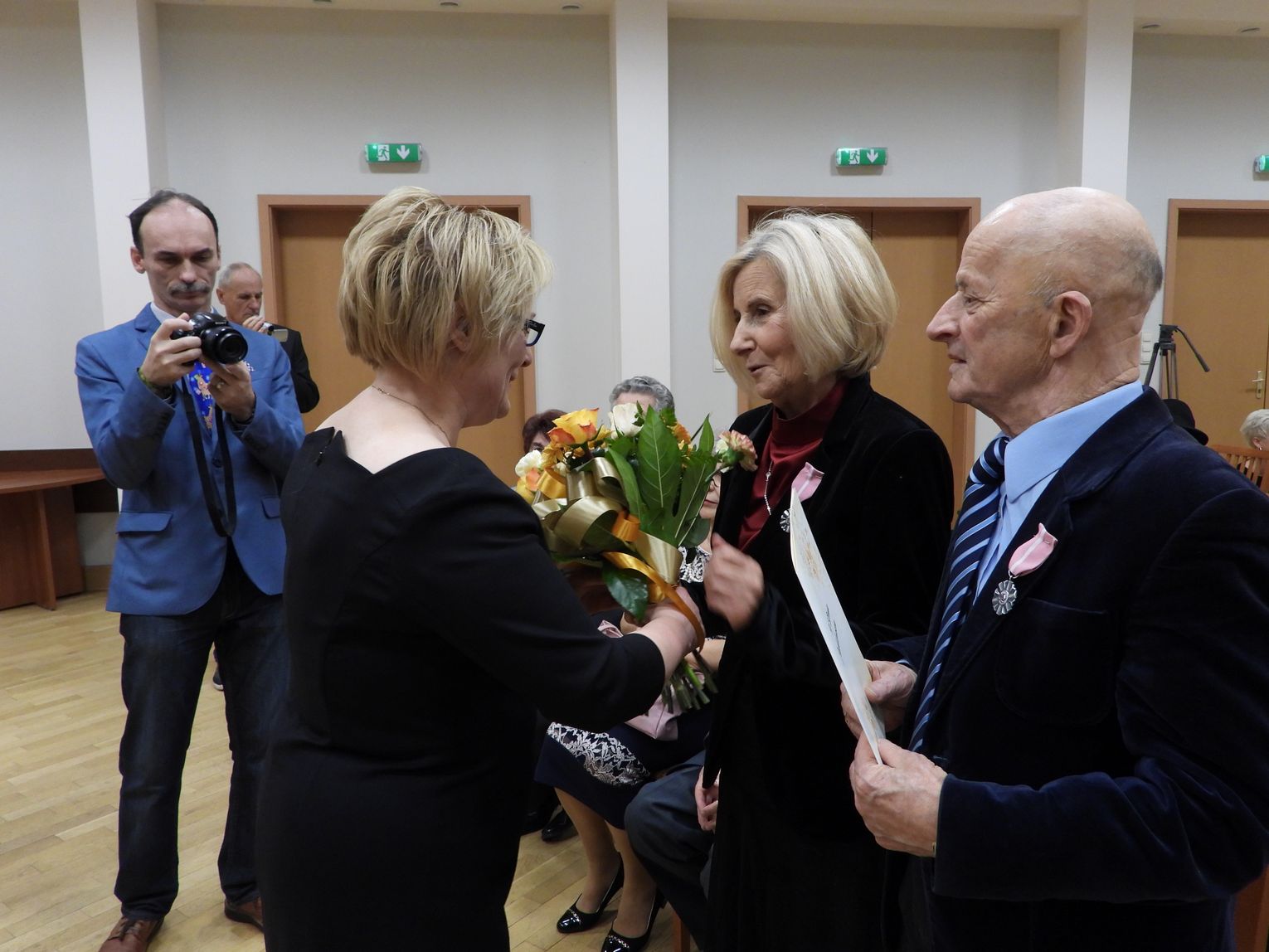 Dziś w godzinach popołudniowych w sali włocławskiego ratusza miało miejsce uroczyste wręczenie medali i dyplomów parom obchodzącym 50-cio i 60-cio lecie pożycia małżeńskiego. Galaę jubileuszową poprowadził kierownik Urzędu Stanu Cywilnego - Jarosław Sierakowski. Na dzisiejszą uroczystość zostało zaproszonych dziewięć par, dwie pary obchodzące 60-cio lecie pożycia i siedem par celebrujących 50-tą rocznice ślubu. Udekorowanych zostało dziś osiem par, ponieważ jedna para, która świętowała diamentowe gody została odznaczona już wcześniej, więc w dniu dzisiejszym otrzymali jedynie kwiaty oraz listy gratulacyjne od prezydenta. Na uroczystości pojawiła się również zastępca prezydenta Barbara Moraczewska, która w imieniu prezydenta miasta Włocławek, udekorowała dzisiejszych jubilatów medalami za długoletnie wspólne pożycie małżeńskie oraz wręczyła im legitymacje, bukiety kwiatów oraz listy gratulacyjne. Halina i Zenon Konopa - dzisiejsi jubilaci twierdzą, że aby razem wytrwać tyle lat, nie wystarczy samo słowo "kocham":