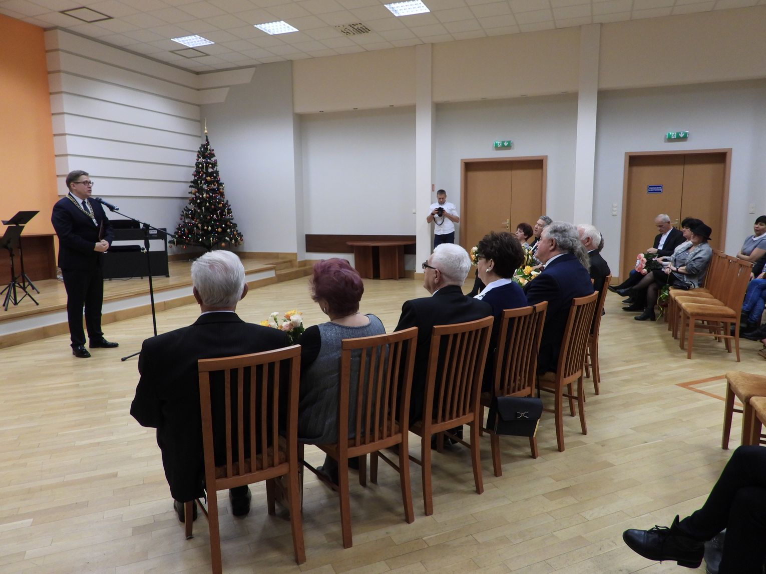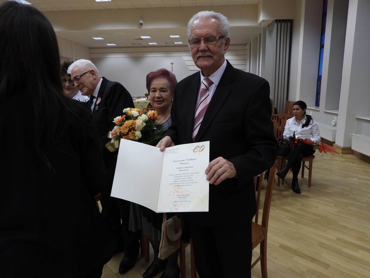 Pary obchodzące dziś jubileusz 50-cio lecia zawarcia związku małżeńskiego to Państwo: Natalia i Jan Zdanowscy, Halina i Zbigniew Woźniak, Elżbieta i Gustaw Wojciechowscy, Stanisława i Zygmunt Koper, Halina i Zenon Konopa, Zofia i Zdzisław Jakubowscy, Barbara i Jerzy Drzewieccy. Natomiast 60-cio lecie świętowali Państwo: Barbara i Wojciech Błaszczyk, Wanda i Stanisław Adamiak, Krystyna i Zdzisław Arent.