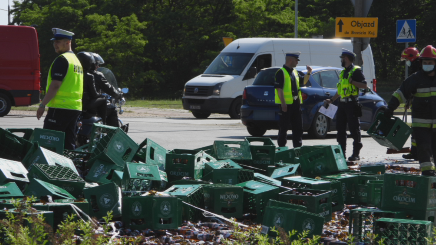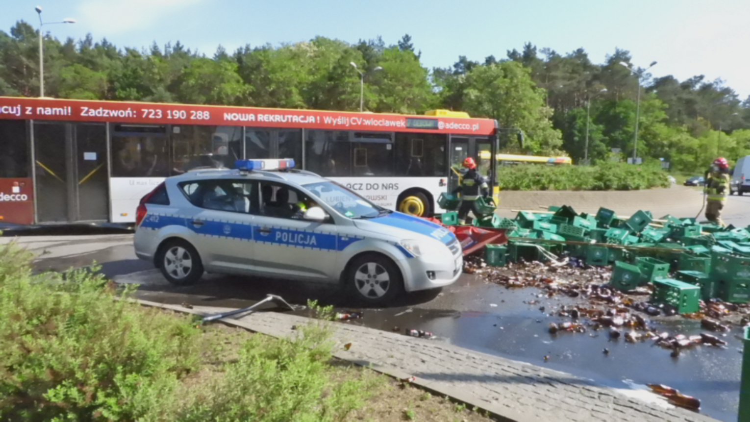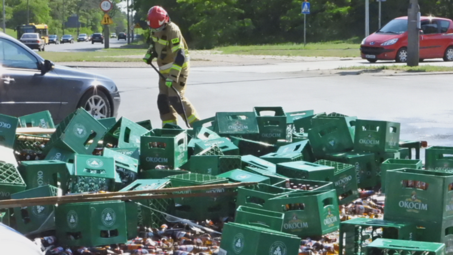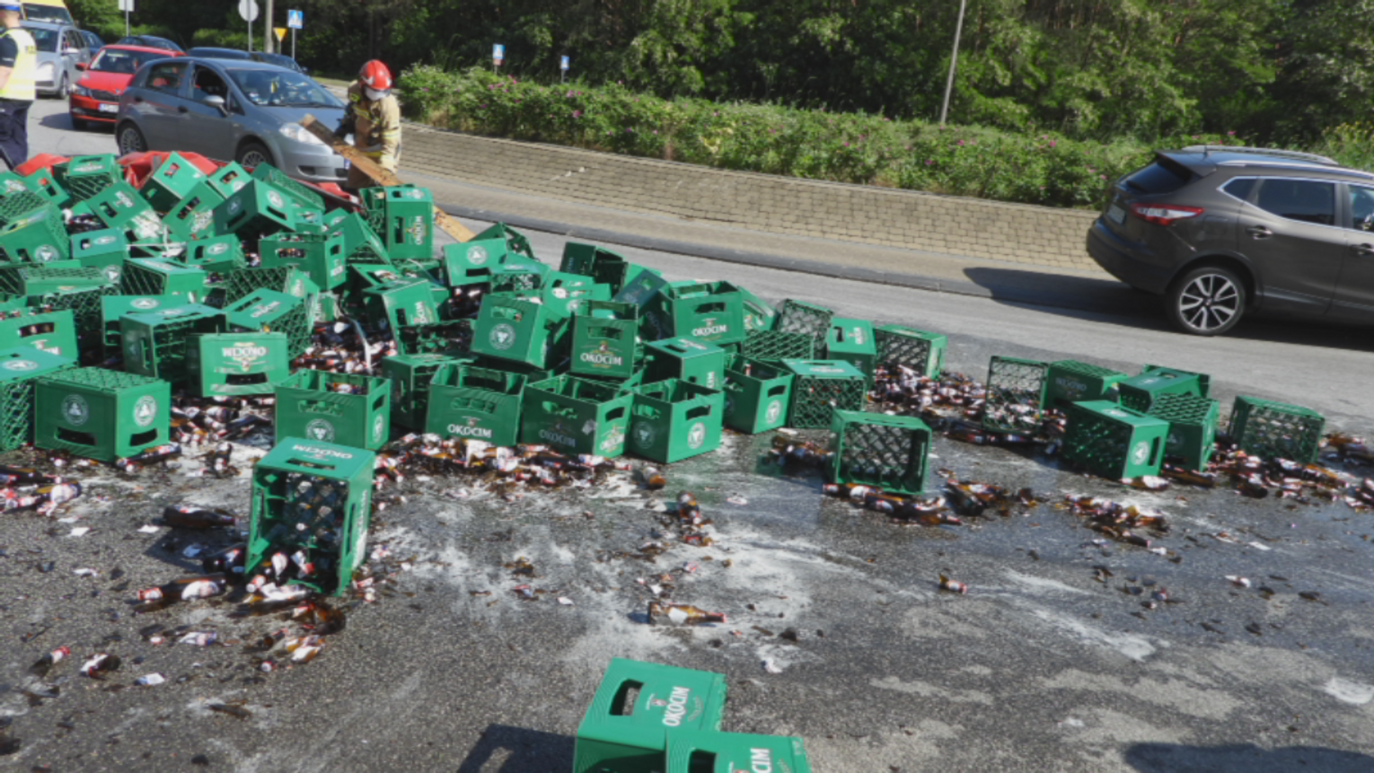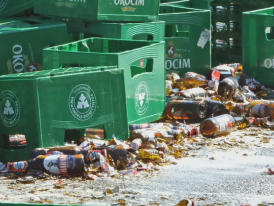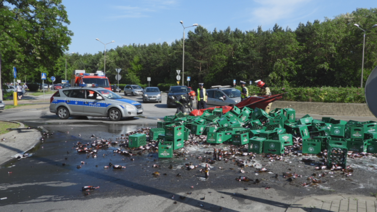 Dzisiaj około godziny 16:00 z przejeżdżającej przez rondo Falbanka ciężarówki wypadły skrzynki, w których znajdowały się butelki z piwem. Na miejsce została wezwana Straż Pożarna i Policja. Na trasach dojazdowych do ronda tworzą się korki.