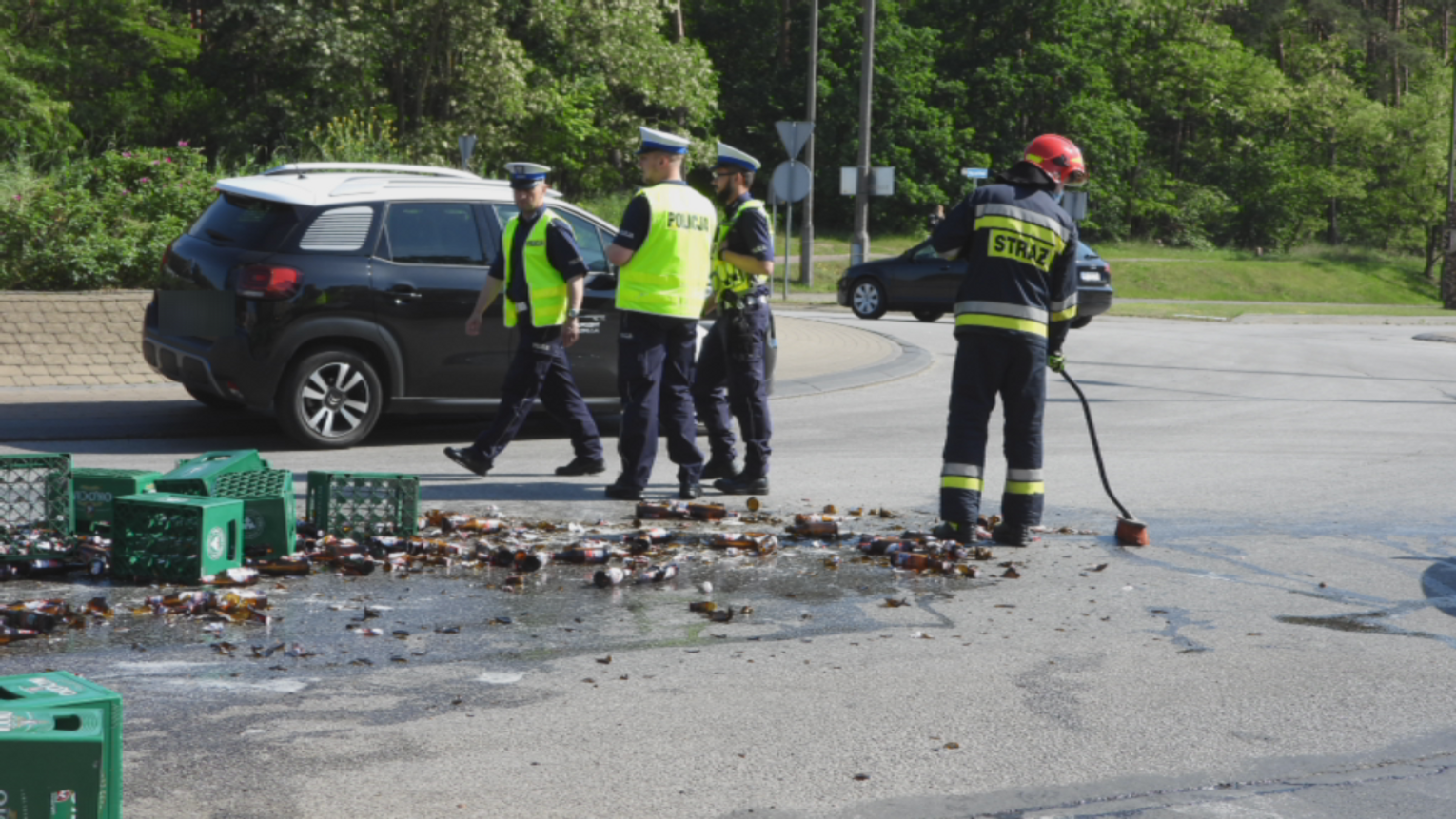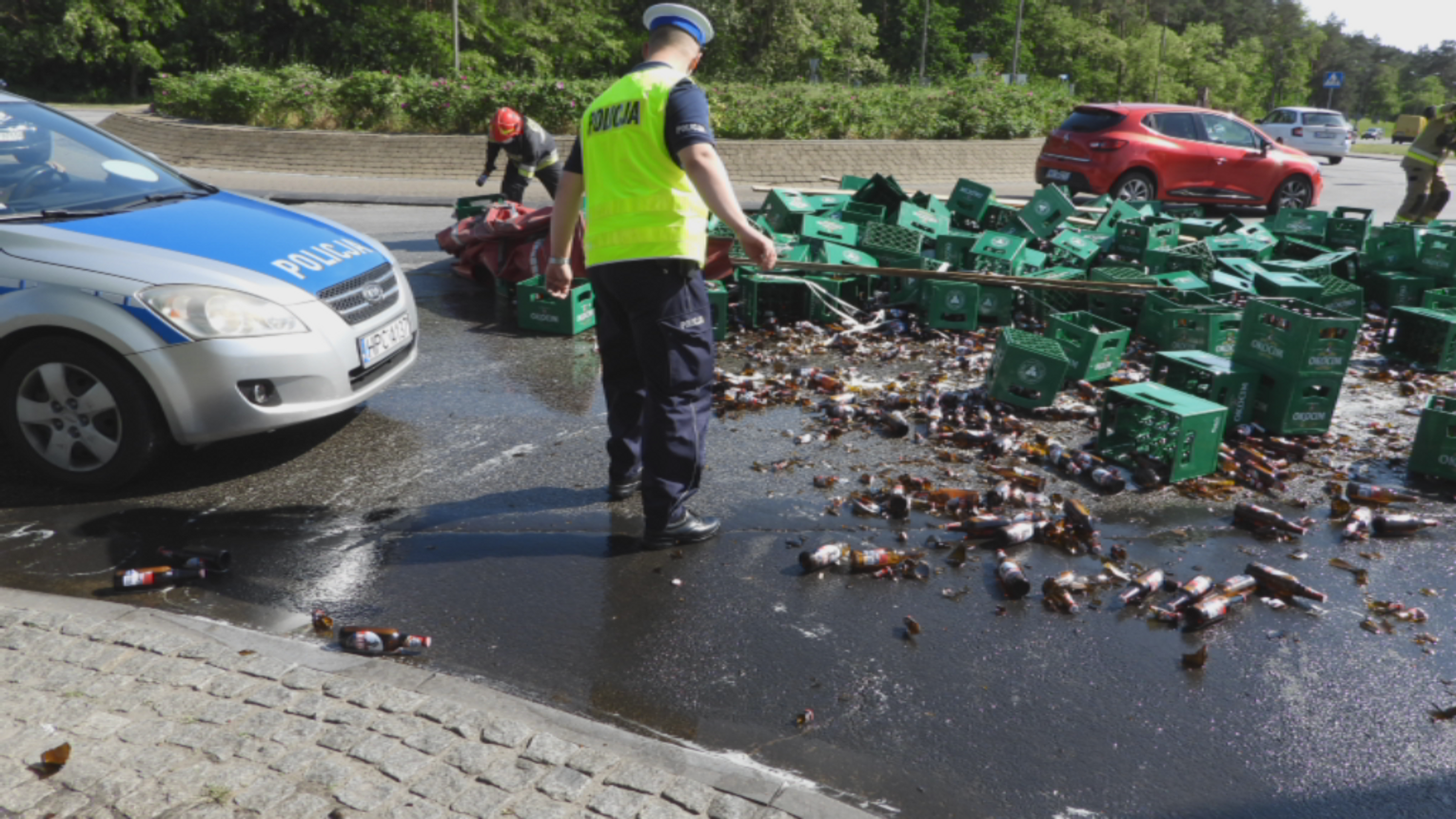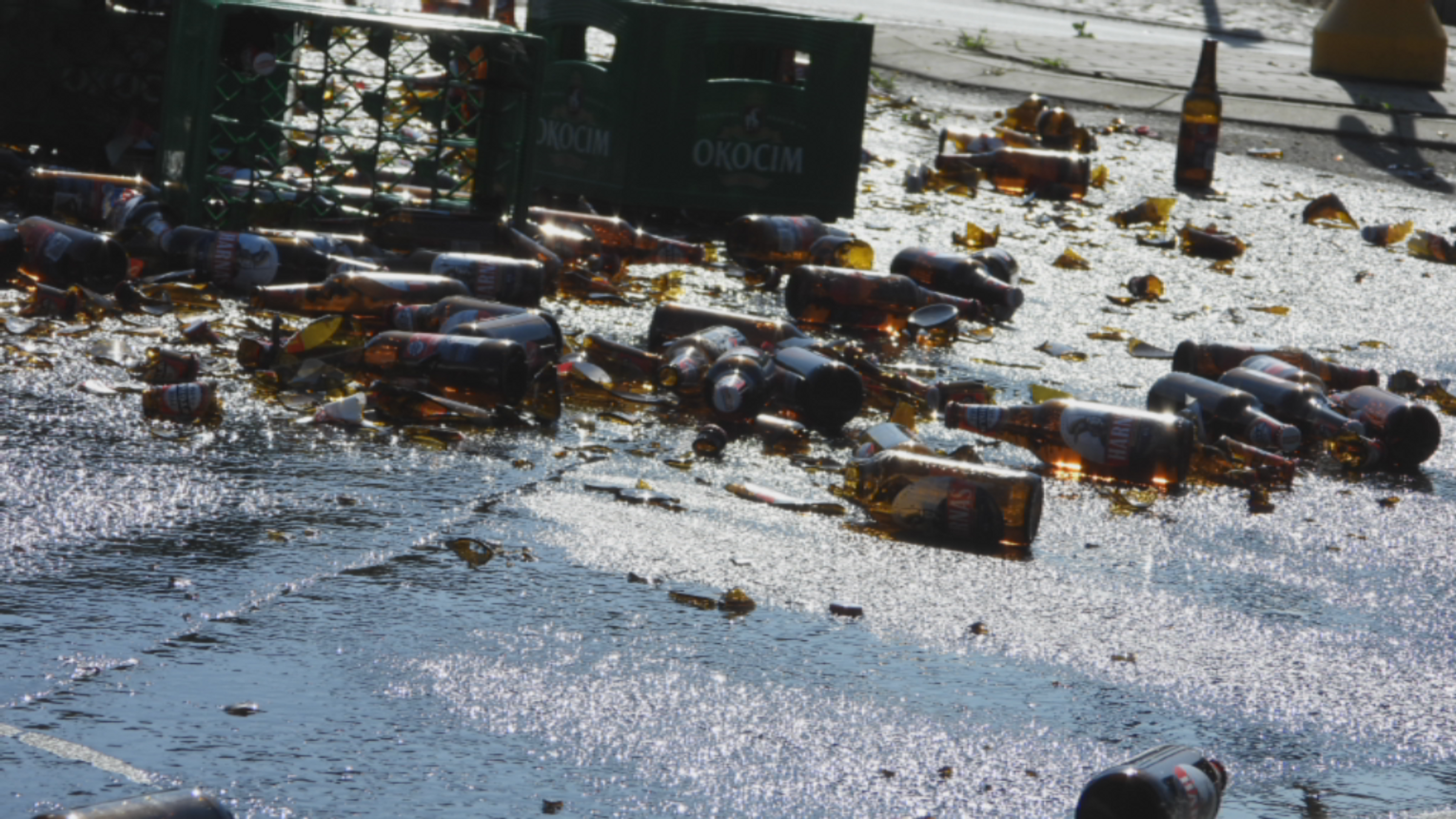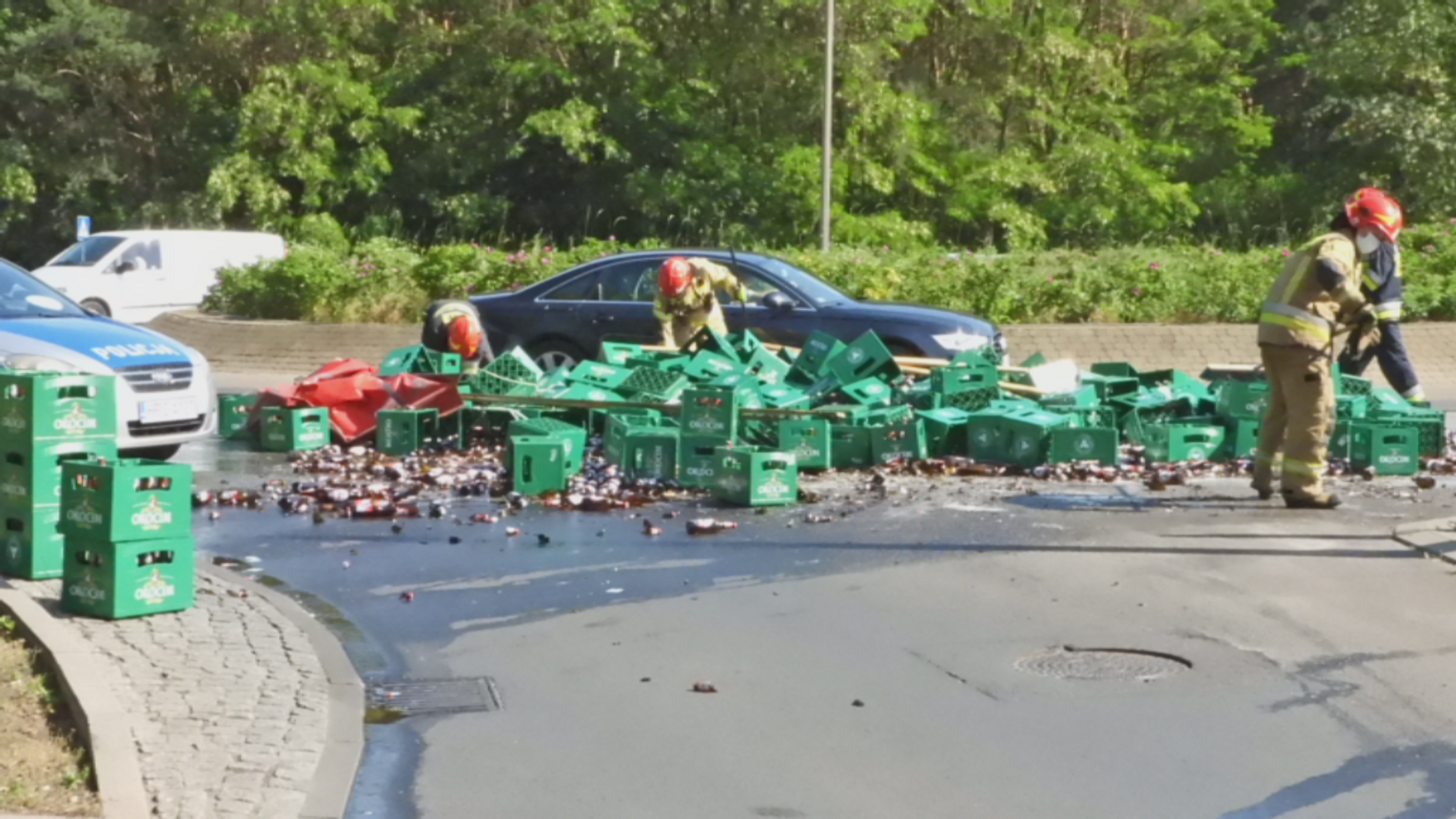 Piwo zalało rondo Falbanka. Tworzą się korki...
