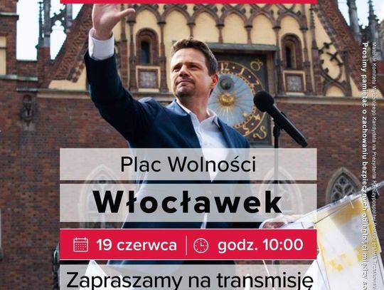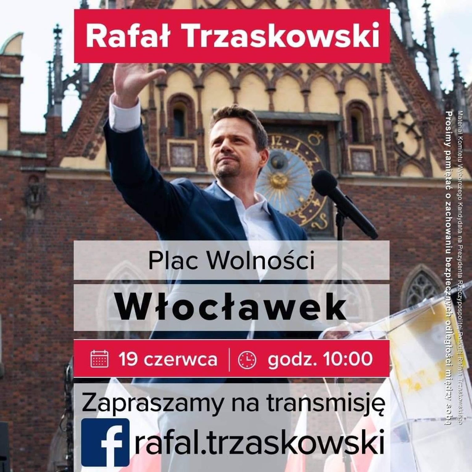 W piątek o godzinie 10:00 nasze miasto odwiedzi kandydat na Prezydenta Rzeczypospolitej Rafał Trzaskowski. Mieszkańcy Włocławka będą mogli spotkać kandydata Koalicji Obywatelskiej na Placu Wolności obok Pomnika Żołnierza Polskiego.