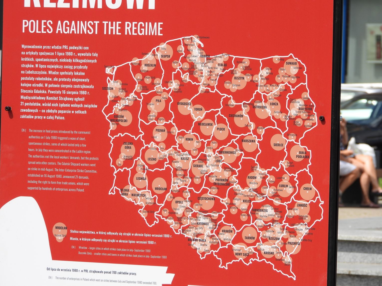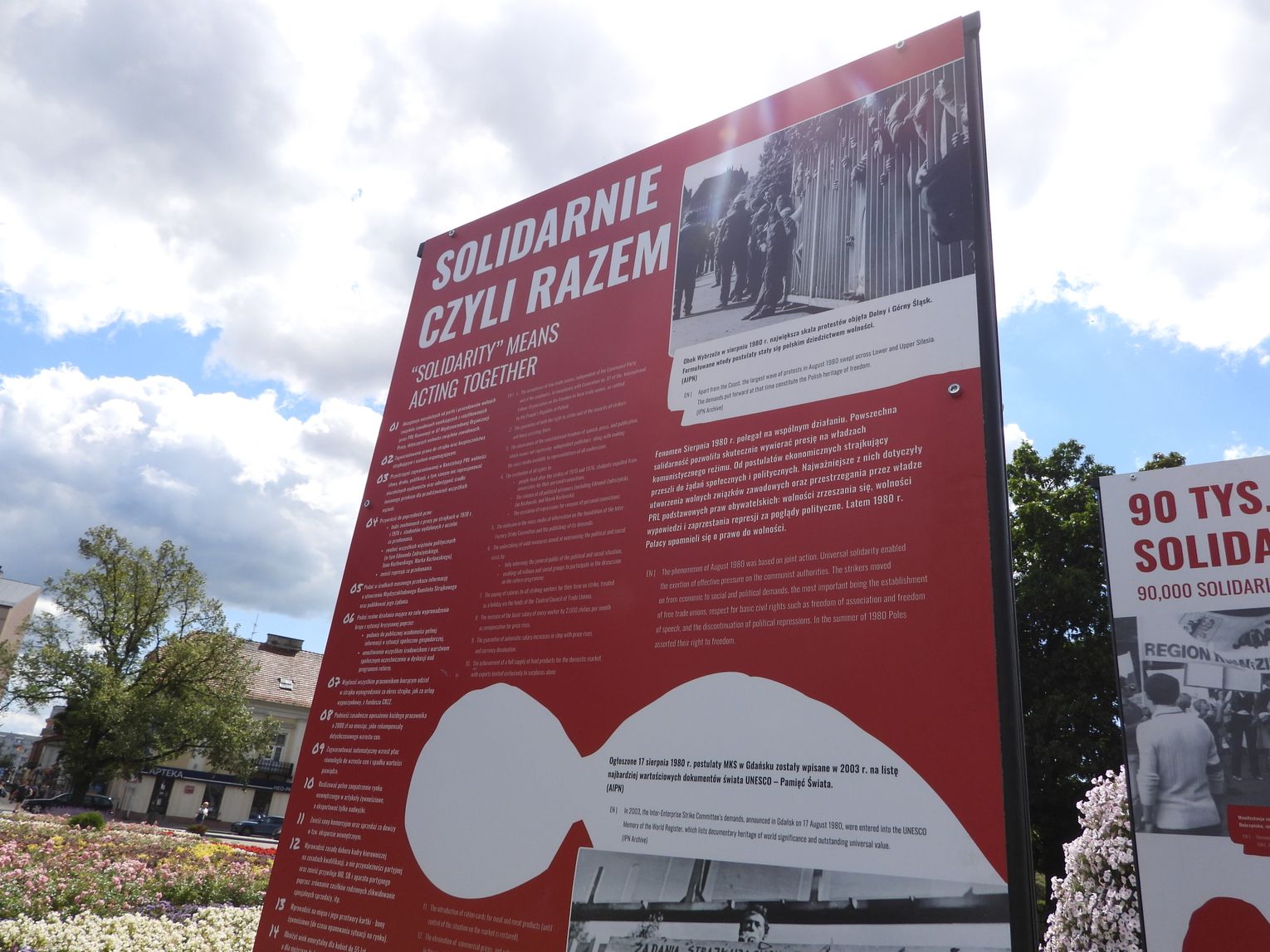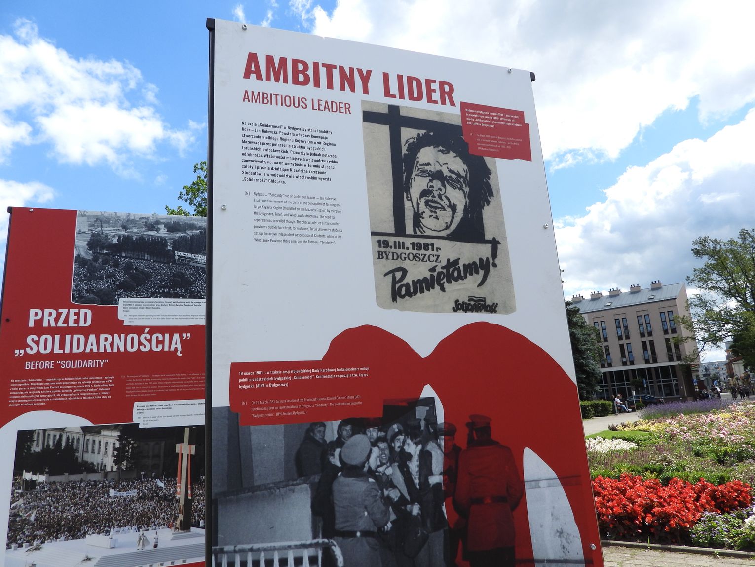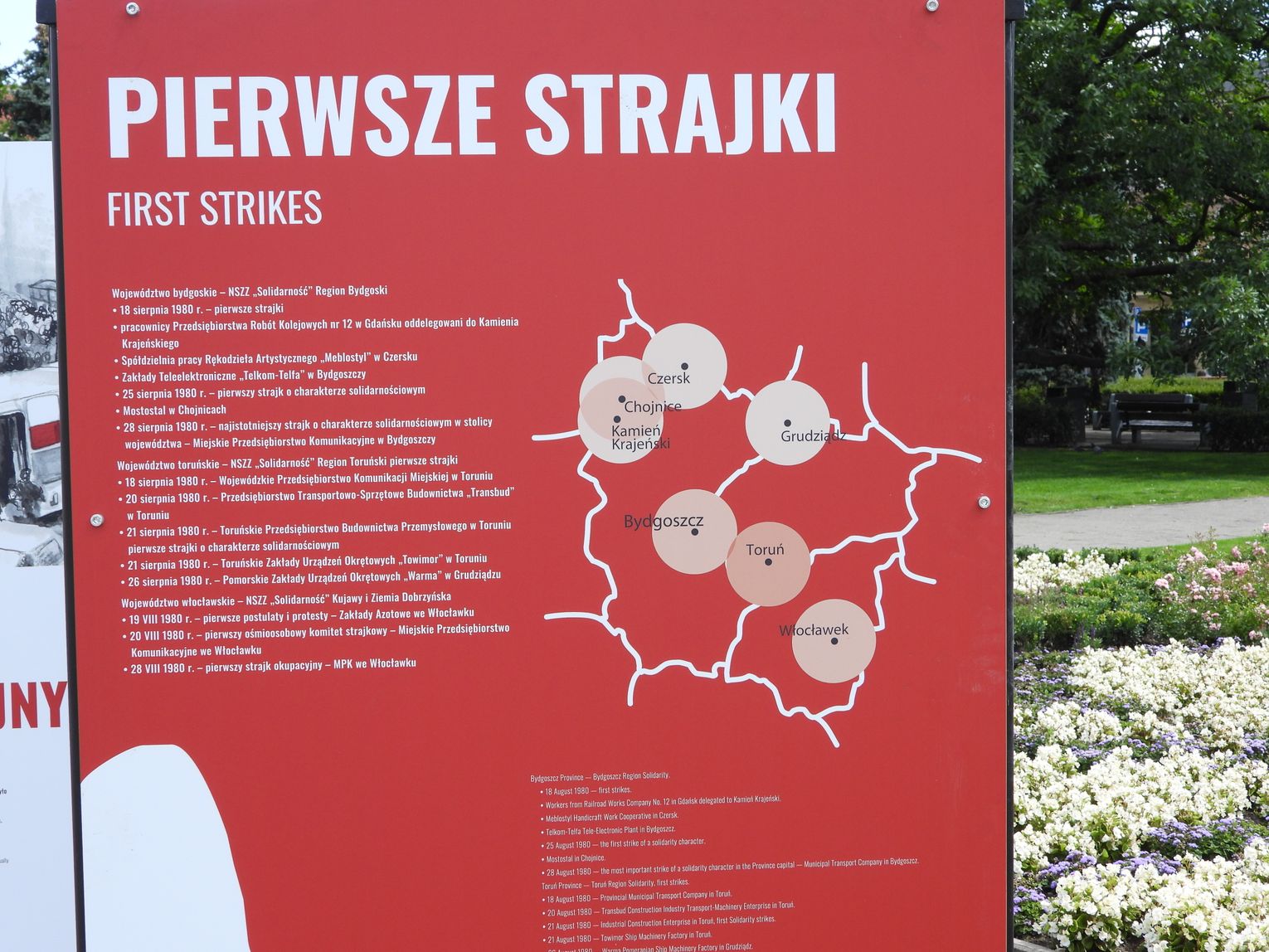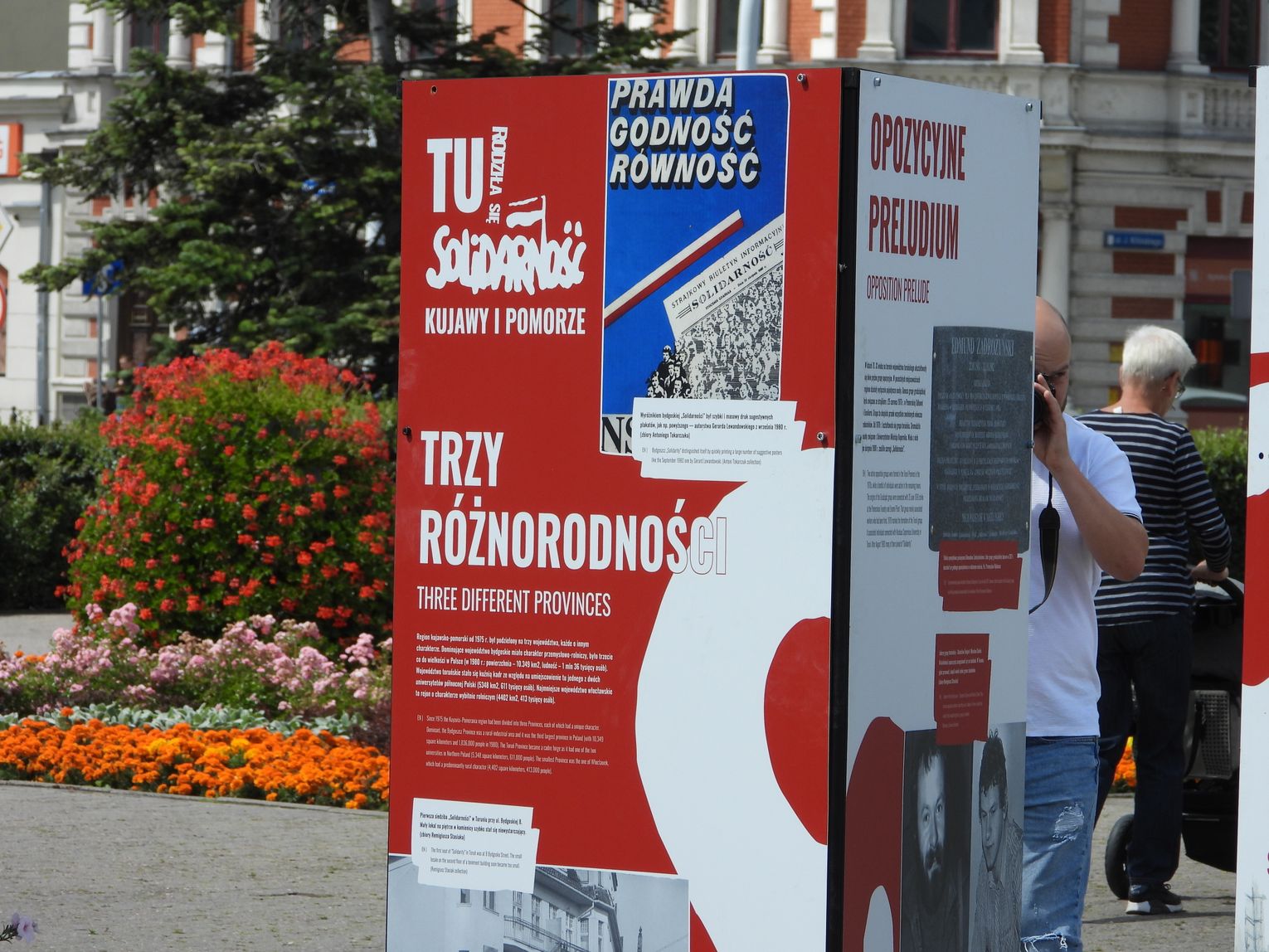 "Wystawa składa się z 3 podstawowych części. 1 cześć dotyczy strajków lipcowych i sierpniowych z 1980 r., które wybuchły na wybrzeżu, które były poprzedzone tzw. Lubelskim Lipcem. Tam możemy przypomnieć chociażby postulaty wywieszone na bramie stoczni. Kolejne 6 plansz, czyli 2 kolejne słupy, są poświęcone regionowi kujawsko-pomorskiemu. Ostatni słup jest poświęcony lokalnym wydarzeniom związanym z sierpniem." - informował dr Przemysław Wójtowicz