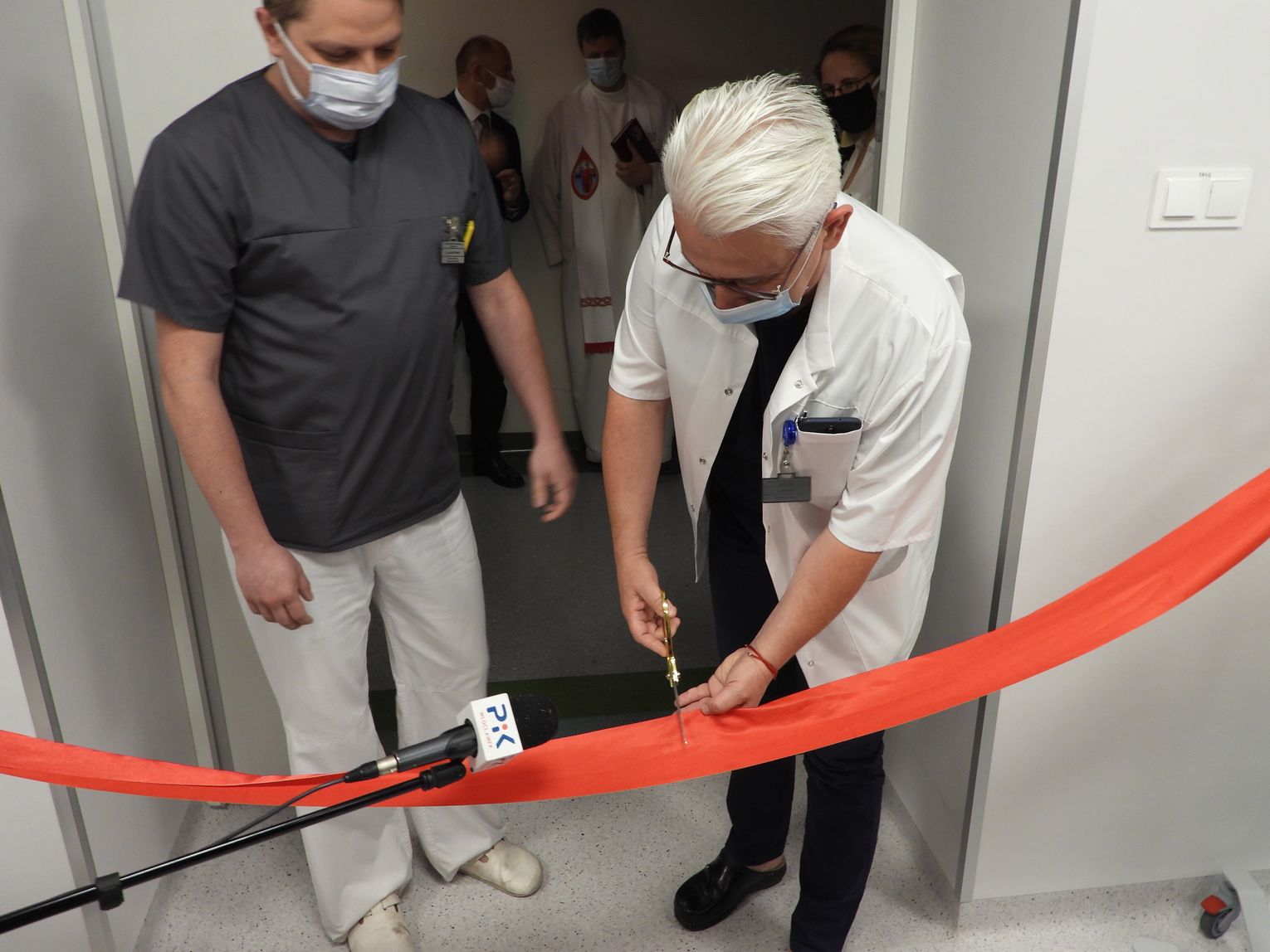 "Jest to nowoczesny tomograf firmy GE wyposażony w zasadzie we wszytko, co może taki tomograf posiadać. Mamy na nim możliwości nie tylko diagnostyki, ale też wprowadzania niewielkich interwencji, tak więc jak pacjent zostanie zdiagnozowany tzw. pierwsza pomoc może być przeprowadzana w tym miejscu. Oprócz całego systemu tomograficznego posiadamy konsole techników oraz 3 stanowiska opisowe dla lekarzy, tzw. stacje lekarskie." - informował lek. med. Marcin Walewicz Kierownik Zakładu Diagnostyki Obrazowej