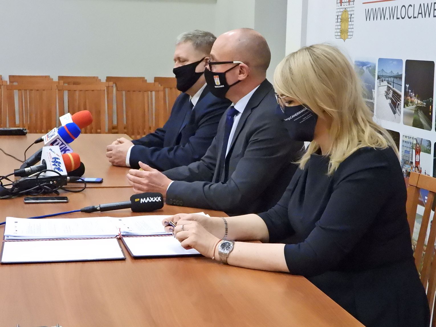 Dziś w Urzędzie Miasta o godzinie 9:00 odbyła się konferencja prasowa z udziałem Członków Zarządu Województwa Agaty Jędrzejewskiej i Sławomira Kopyścia oraz Prezydenta Włocławka Marka Wojtkowskiego. Powodem spotkania podpisanie dwóch umów. Pierwsza dotyczyła dofinansowania projektu pn.: "Wzmocnienie i wykorzystanie potencjału endogenicznego Włocławka poprzez turystyczne i rekreacyjne zagospodarowanie Zalewu Włocławskiego", a druga zadania inwestycyjnego pn.: "Ośrodek wsparcia osób w kryzysie". Jako pierwszy głos zabrał gospodarz spotkania Marek Wojtkowski.