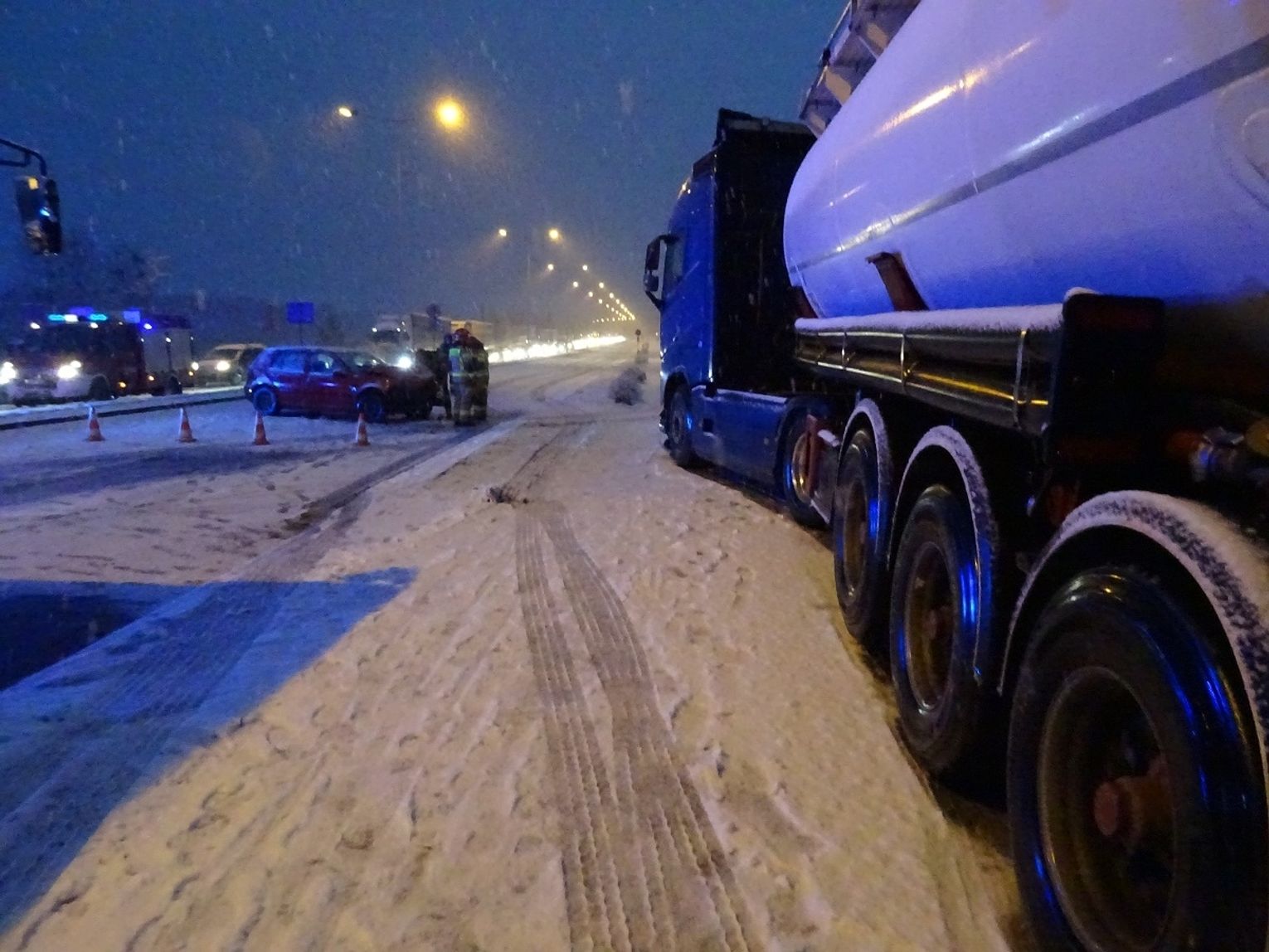 Dziś przed godziną 7:00 na ulicy Toruńskiej doszło do groźnie wyglądającego zdarzenia drogowego. Z relacji zgłaszających wynikało, że pojazd marki vw zjechał na przeciwległy pas ruchu przejeżdżając przez pas oddzielający jezdnie i uderzył w prawidłowo jadący ciągnik siodłowy volvo z naczepą typu cysterna. Po dotarciu mundurowi zabezpieczyli teren i ustalili wstępne okoliczności zdarzenia drogowego.