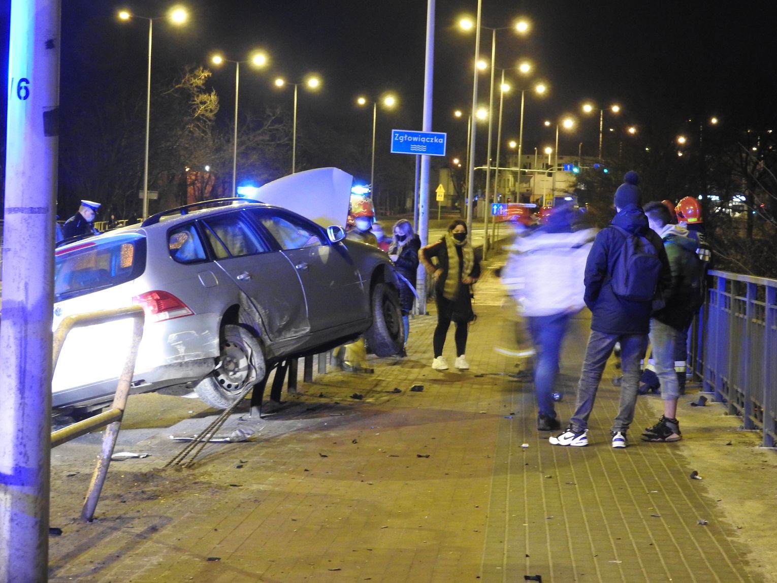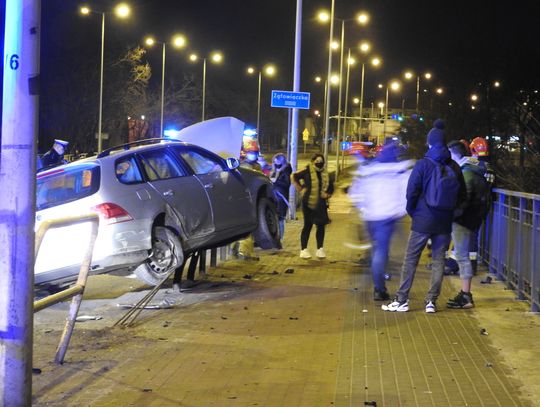 Dziś tj. (07.03) godzinie 19.00 otrzymaliśmy informacje od Czytelników Portalu Włocławek o wypadku przy ul. Okrzei. Na miejscu zastaliśmy dwie jednostki Straży Pożarnej oraz radiowóz policyjny. Osobowy Volkswagen Golf na zagranicznych rejestracjach najechał na barierkę ochronną oddzielającą chodnik od ulicy nad rzeką Zgłowiączką i zawisł na metalowej konstrukcji. Wcześniej uderzył w osobowe BMW. Na miejscu służby prowadzą akcję.