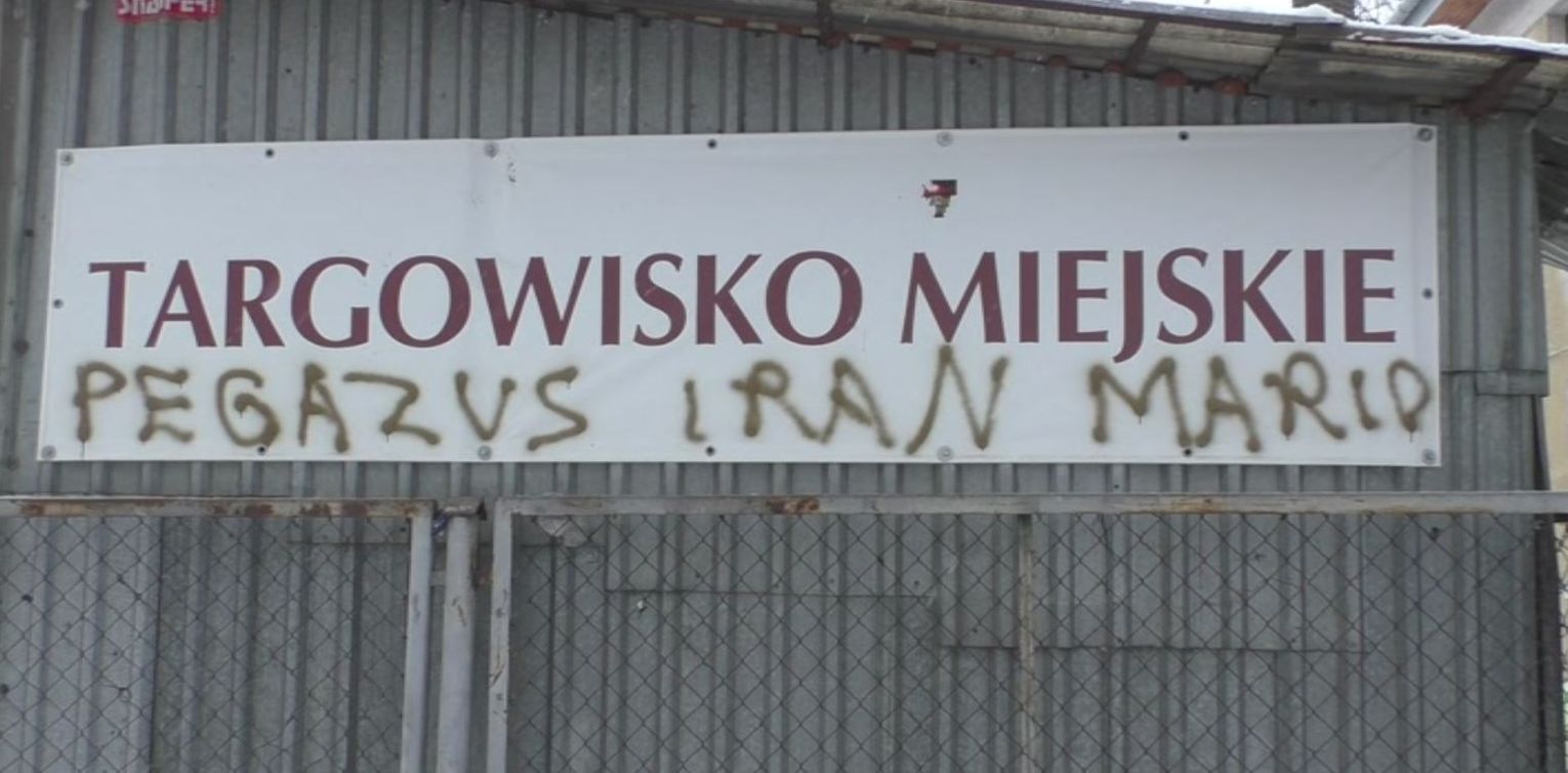 Wracając jednak na nasze włocławskie podwórko - Portal Włocławek został poinformowany o napisach, jakie pojawiły się w okolicach miejskiego targowiska przy Zielonym Rynku. Jeden z nich widnieje na szyldzie targowiska miejskiego i brzmi "Pegazus Iran" (jak powszechnie wiadomo, to irańskie linie lotnicze). Służby na temat napisów nic nie wiedzą. Straż Miejska nie odnotowała żadnego zgłoszenia dotyczącego napisów, pytamy więc w lokalnych sklepikach. Sprzedawca informuje
