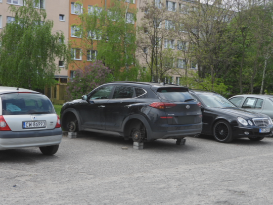 W nocy na parkingu przy ulicy Polnej nieznani sprawcy odkręcili koła od 3 pojazdów: Hyundaia, Hondy i Toyoty. Pojazdy został postawione na kostce brukowej. Warto dodać, że w pobliżu parkingu kładziony jest nowy chodnik, więc istnieje prawdopodobieństwo, że stamtąd kostka pochodzi. Sprawa rano została zgłoszona policji, która prowadzi czynności wyjaśniające. W rozmowie z naszym dziennikarzem mieszkanka bloku w pobliżu parkingu stwierdziła, że od dłuższego czasu nie działa na nim oświetlenie.