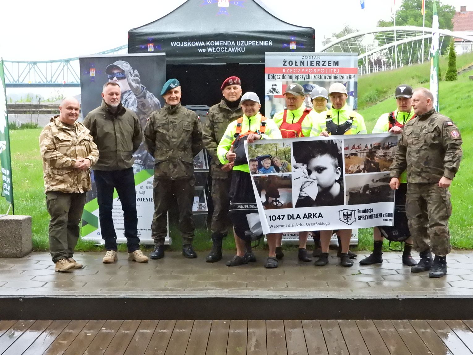 Dziś po godzinie 12:00 do przystani przy ulicy Piwnej przypłynęło 5 kajakarzy-żołnierzy. Biorą oni udział w akcji "1047 dla Arka". Przedsięwzięcie ma zwrócić uwagę na zorganizowanie pomocy dla Arka Urbańskiego, 5-letniego syna Daniela Urbańskiego, weterana, który służył w Iraku i Libanie. W drugiej dobie życia Arek przeszedł poważną operację serca TGA. Niestety w trakcie operacji nastąpił wylew, o którym rodzice dowiedzieli się po dwóch tygodniach. W ciągu tych dwóch tygodni mózg Arka został poważnie uszkodzony. Rodzice Arka codziennie walczą ze skutkami wylewu. Przez wylew, Arek jest opóźniony psycho-ruchowo oraz choruje na padaczkę. Żeby ratować życie, lekarze założyli chłopcu zastawkę komorowo-otrzewnową. Stale wymaga intensywnej opieki i rehabilitacji. Jest to już 3 tego typu akcja charytatywna. Jej inicjatorem jest Damian "Ligo". Jak powiedział jeden z uczestników spływu, warunki na Wiśle w pobliżu Włocławka są dość ciężkie.