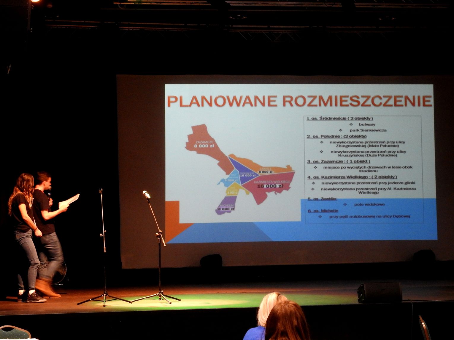 "Do udziału w turnieju zgłosiło się 8 zespołów, ostatecznie dotarło 6. Zwycięskim został projekt parkletów miejskich i generalnie zazielenienie przestrzeni zaniedbanej w mieście zaproponowany przez grupę "Reklamki" z Zespołu Szkół Technicznych. Zyskał on uznanie zarówno jurorów i uczestników, którzy mogli za pomocą telefonów głosować na ich zdaniem najciekawsze propozycje."- podsumował prezes WIR Kacper Marciniak