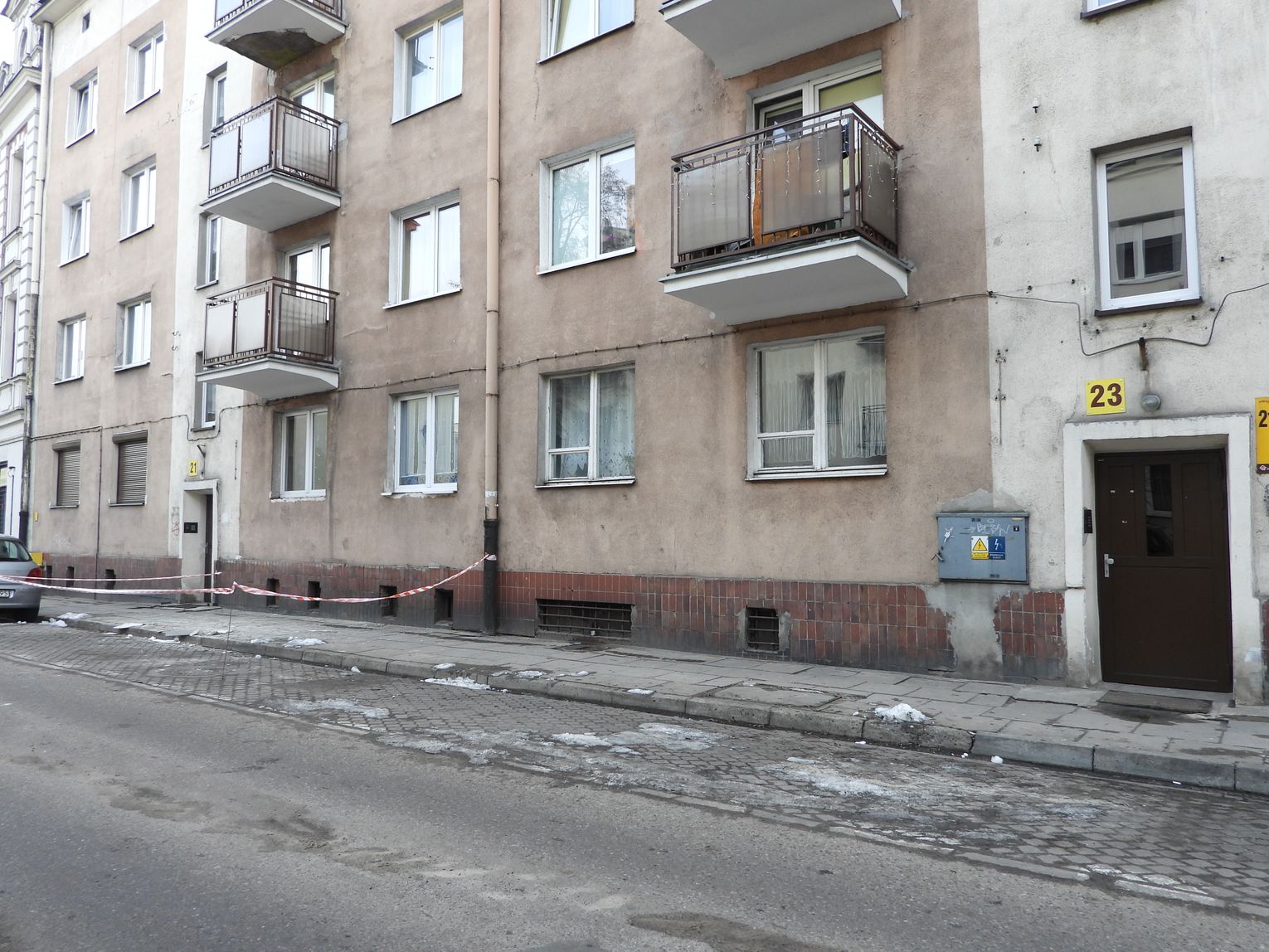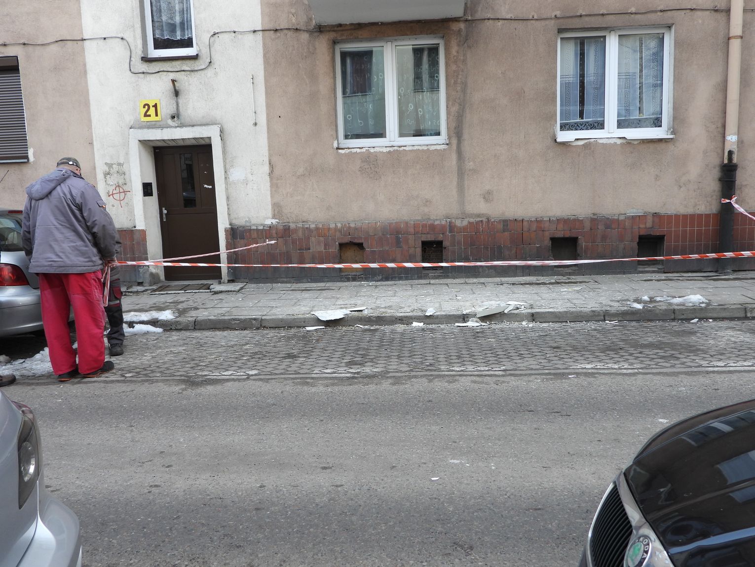 " W ciągu kwadransa moje służby były na miejscu. Ściągnęliśmy brygadę remontową. Za pomocą podnośnika skuliśmy resztę tej elewacji balkonu i usunęliśmy ewentualną możliwość spadnięcia pozostałej części. Poszkodowany mieszkaniec naszego budynku uzyskał informacje o numerze polisy i ubezpieczenia. We własnym zakresie ma skontaktować się z ubezpieczycielem celem oszacowania szkód i wypłacenia odszkodowania. Prawdopodobną przyczyną było zawilgocenie."
