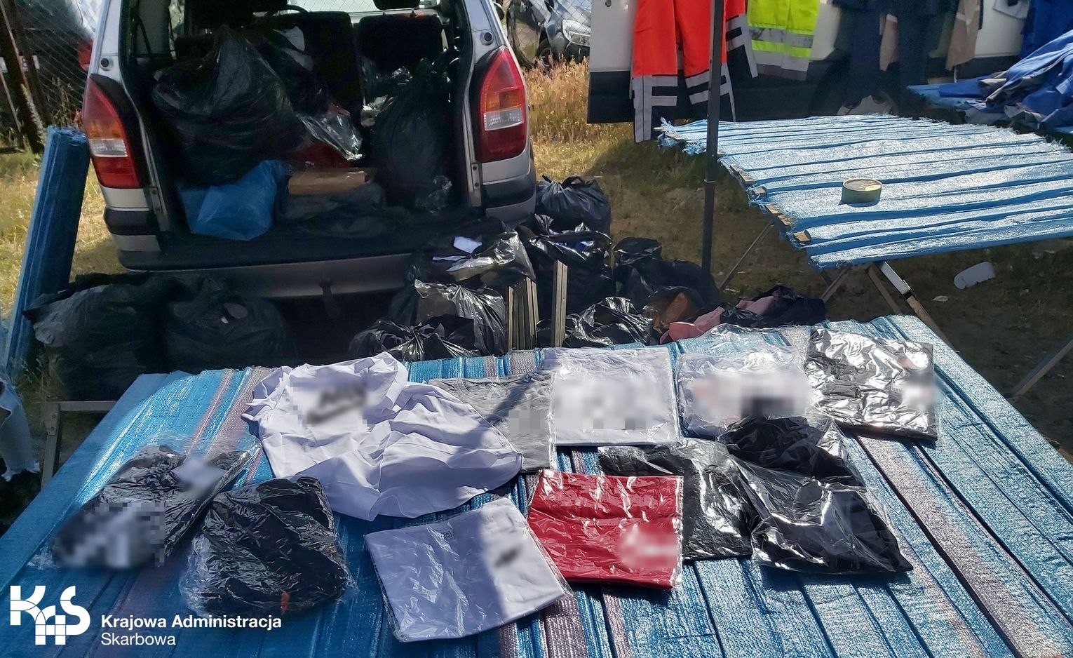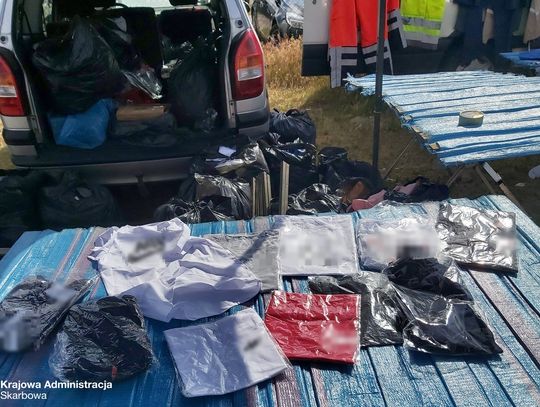 W trakcie kontroli przeprowadzonej na targowisku miejskim we Włocławku, funkcjonariusze Służby Celno-Skarbowej zatrzymali na jednym ze stoisk handlowych znaczne ilości podrabianej odzieży, którą sprzedawała przedsiębiorcza mieszkanka Płocka. Były to m.in. bluzy, koszulki, spodnie dresowe i czapki. Mundurowi zabezpieczyli łącznie 490 sztuk odzieży oraz 150 par skarpet przeznaczonych do sprzedaży i oznaczonych podrobionymi znakami towarowymi znanych światowych marek. Użyte oznaczenia naruszały prawa do używania zastrzeżonych znaków towarowych firm produkujących odzież. Wartość rynkowa zakwestionowanych rzeczy szacowana jest na kwotę przekraczającą 72 tys. złotych. Zgodnie z ustawą prawo własności przemysłowej, kobiecie za posiadanie i wprowadzanie do obrotu towarów z zarejestrowanym znakiem towarowym, którego nie miała prawa używać, grozi kara nawet do 2 lat pozbawienia wolności oraz przepadek zabezpieczonego mienia. Działania Krajowej Administracji Skarbowej w zakresie wykrywania handlu nielegalnymi towarami i omijania obowiązków podatkowo-ewidencyjnych prowadzą nie tylko do zwalczania szarej strefy, ale eliminują również nieuczciwą konkurencję wśród kupców. Nieuczciwi handlowcy, sprzedając towary z nieznanych źródeł, gorsze jakościowo, a często nawet niebezpieczne dla zdrowia, naruszają interesy legalnie działających przedsiębiorców, którzy dbają o swoją markę i dobro klientów.
