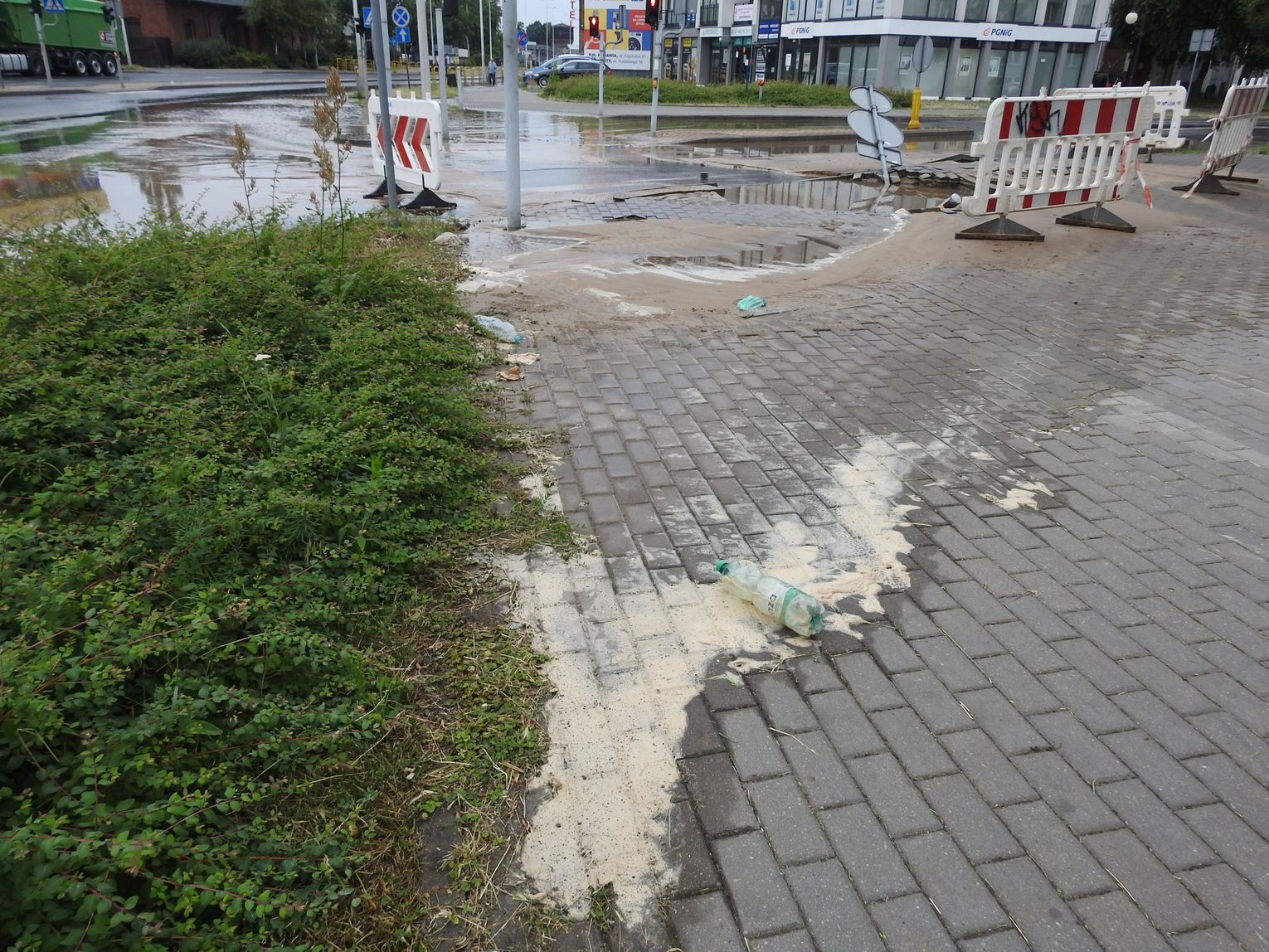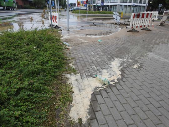 "Trwa usuwanie przyczyn awarii. Przyczyną tej sytuacji było rozszczelnienie zgrzewu doczołowego. Rurociąg jest wciąż na gwarancji, więc koszty naprawy pokrywa Wykonawca i do końca dnia ma usunąć awarię." - komunikuje MPWiK