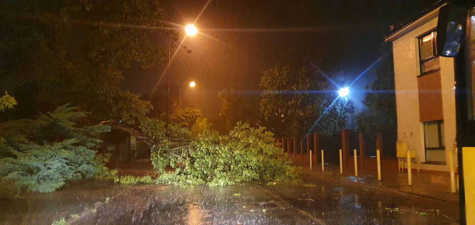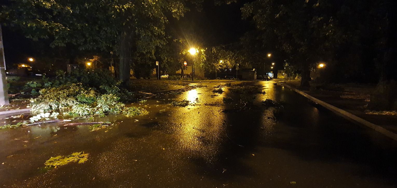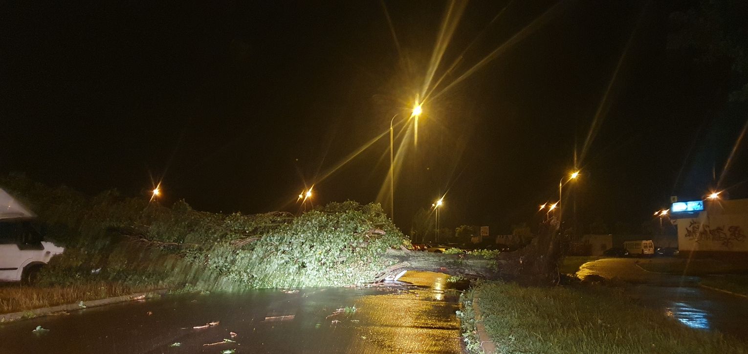 "O godzinie 7:00 mieliśmy wszystkich zdarzeń, związanych z przejściem tej gwałtownej burzy, 308. O 9:00, bo te interwencje są realizowane cały czas, 370, a teraz [10:50] jest ich 408. Głównie działania obejmowały usuwanie różnego rodzaju wiatrołomów - połamanych drzew, połamanych konarów, przewróconych drzew na jezdnie, chodniki, samochody, na dachy, oparte o ściany budynków. Cały czas strażacy usuwają skutki tej nawałnicy. Oczywiście miały też miejsce działania polegające na wypompowywaniu wody z garaży, piwnic. Ucierpiały niektóre sklepy wielkopowierzchniowe, konkretnie rampy załadunkowe. Mieliśmy też zgłoszenia o drzewach pochylonych, opartych o linie energetyczne. Strażacy, kiedy był wyłączony prąd, pomagali osobom zasilać aparaty tlenowe." - informuje bryg. Dariusz Krysiński, dowódca Jednostki Ratowniczo-Gaśniczej nr 1