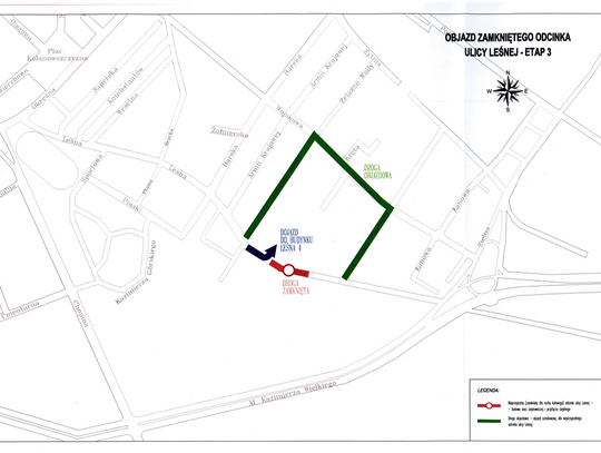 - etap III – w dniach od 25 lutego do 01 marca 2019 roku - od połowy wjazdu w drogę wewnątrz osiedlową za budynkiem Leśna 6 do końca t.j. do wysokości nowo realizowanego budynku Leśna 2