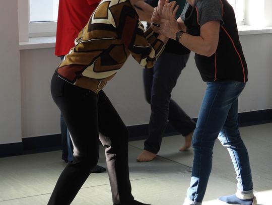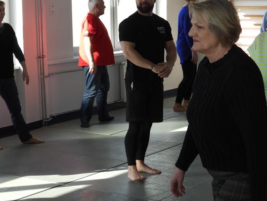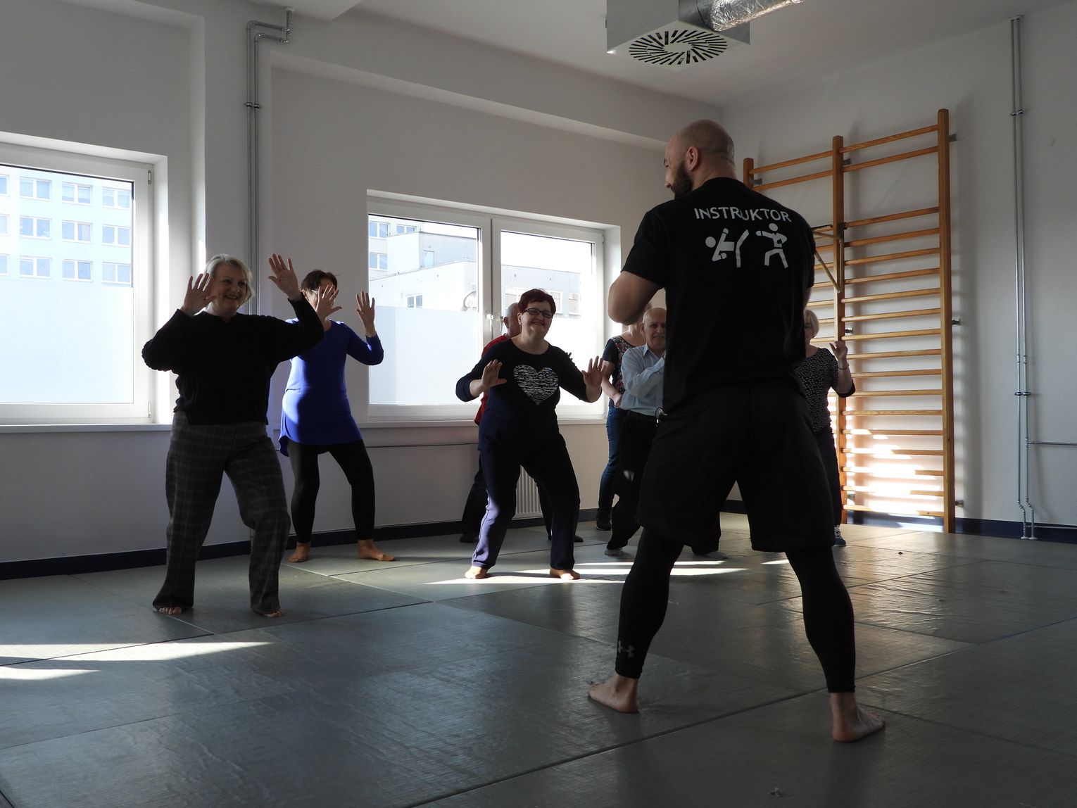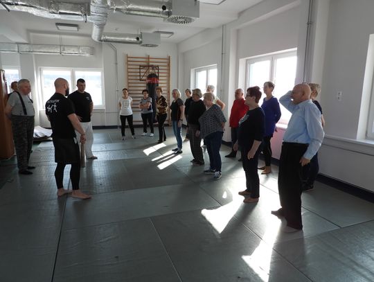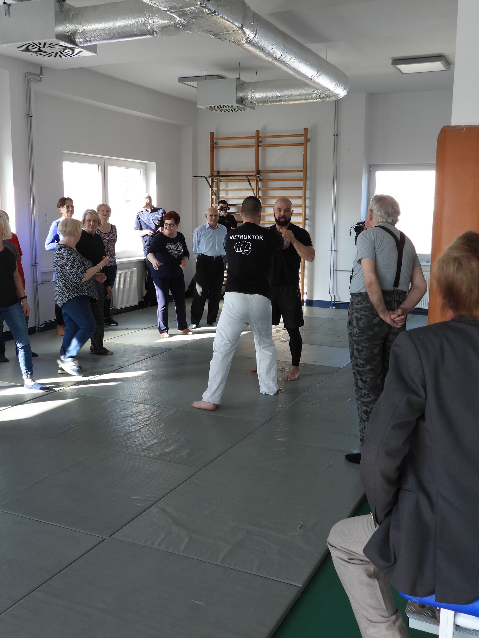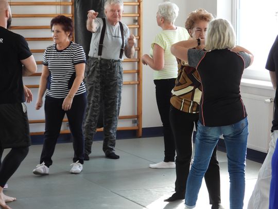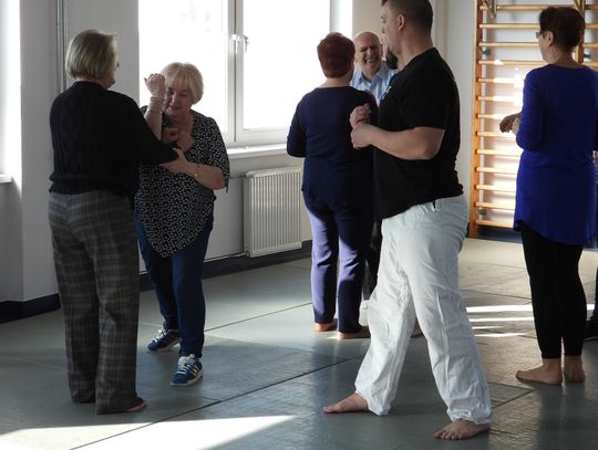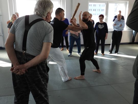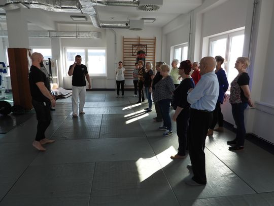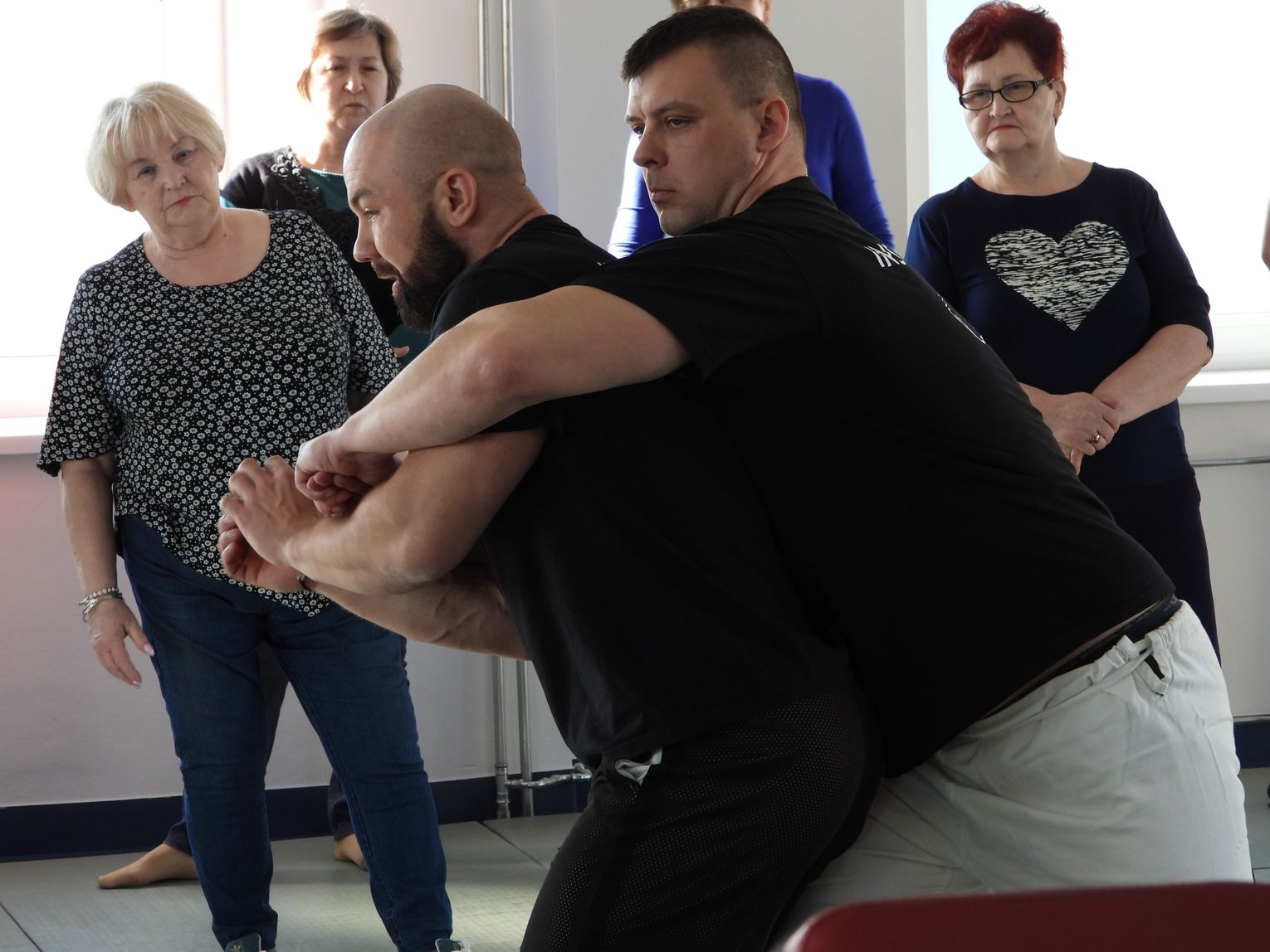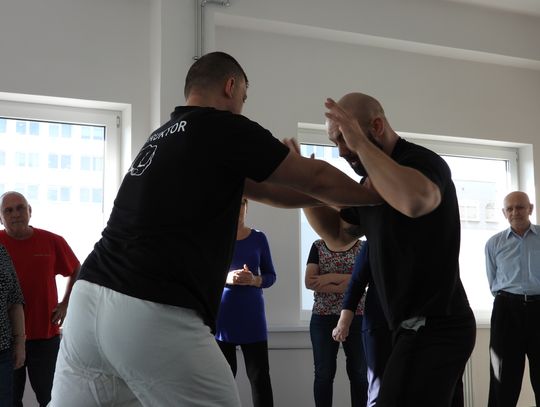 W kolejnej części spotkania seniorzy mogli zapoznać się z podstawowymi ruchami ułatwiającymi wydostanie się z uchwytu potencjalnego napastnika. Ćwiczenia prowadzili policjanci wydziału patrolowo-interwencyjnego. Rozdano także breloczki z numerami do włocławskich dzielnicowych oraz kamizelki odblaskowe. Seniorzy dowiedzieli się o zasadach funkcjonowania numerów alarmowych, przyjmowania zgłoszeń oraz otrzymali materiały informacyjne dotyczące tych zagadnień.