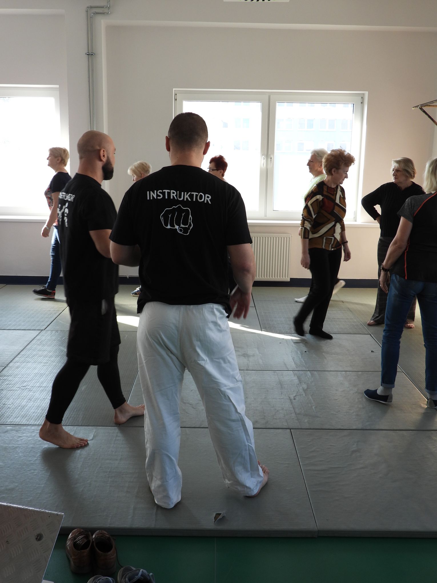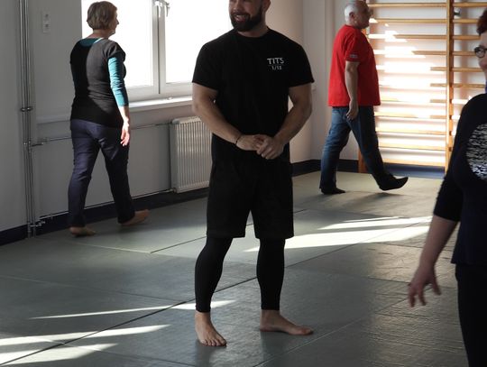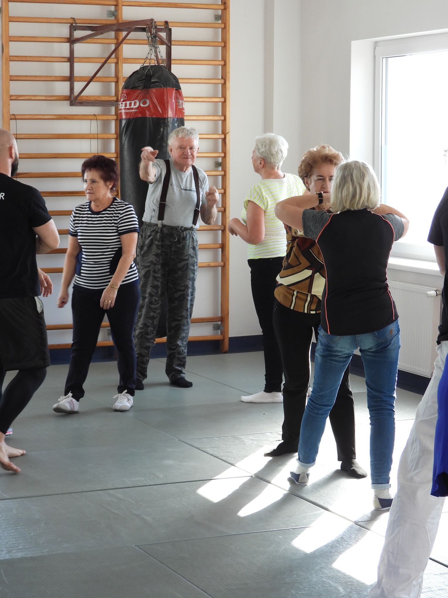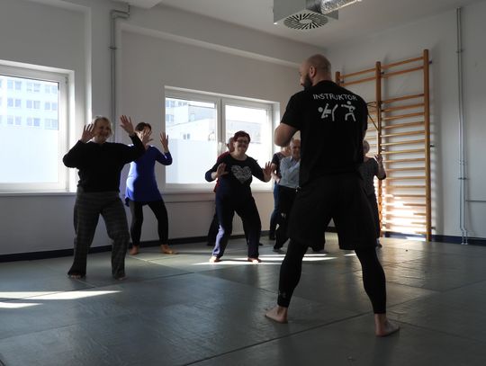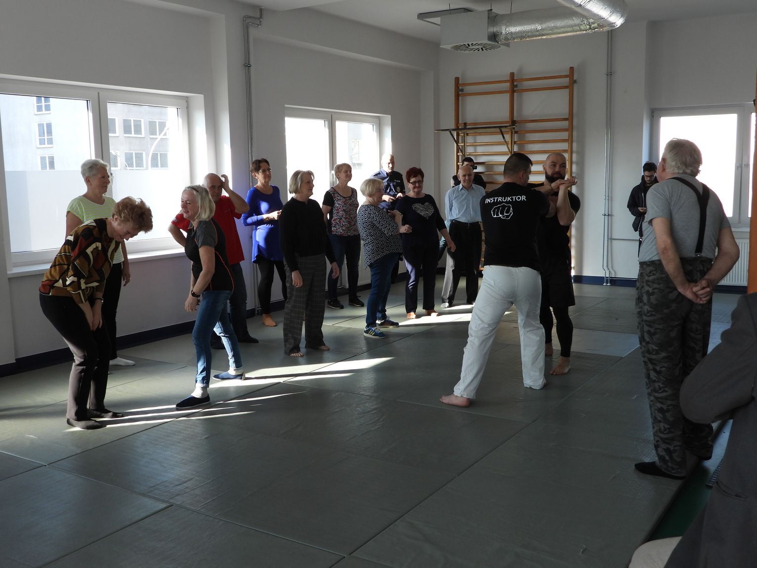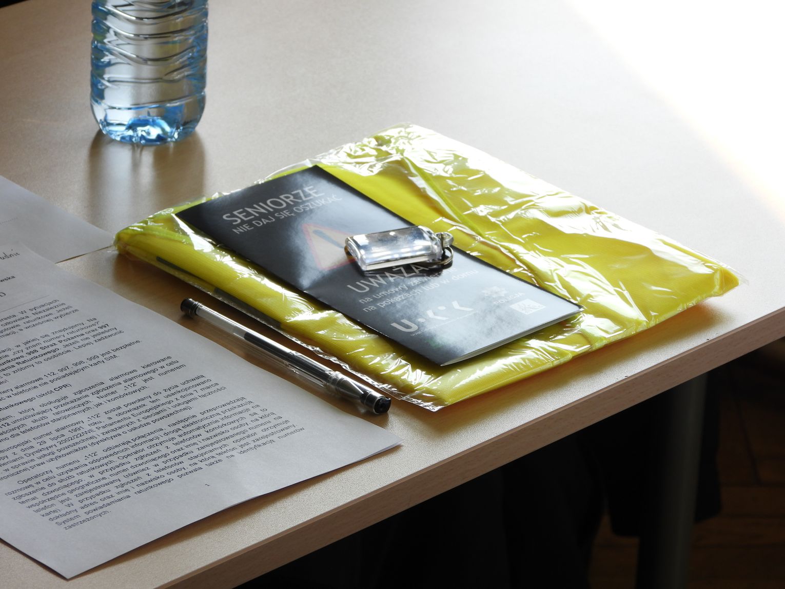W kolejnej części spotkania seniorzy mogli zapoznać się z podstawowymi ruchami ułatwiającymi wydostanie się z uchwytu potencjalnego napastnika. Ćwiczenia prowadzili policjanci wydziału patrolowo-interwencyjnego. Rozdano także breloczki z numerami do włocławskich dzielnicowych oraz kamizelki odblaskowe. Seniorzy dowiedzieli się o zasadach funkcjonowania numerów alarmowych, przyjmowania zgłoszeń oraz otrzymali materiały informacyjne dotyczące tych zagadnień.
