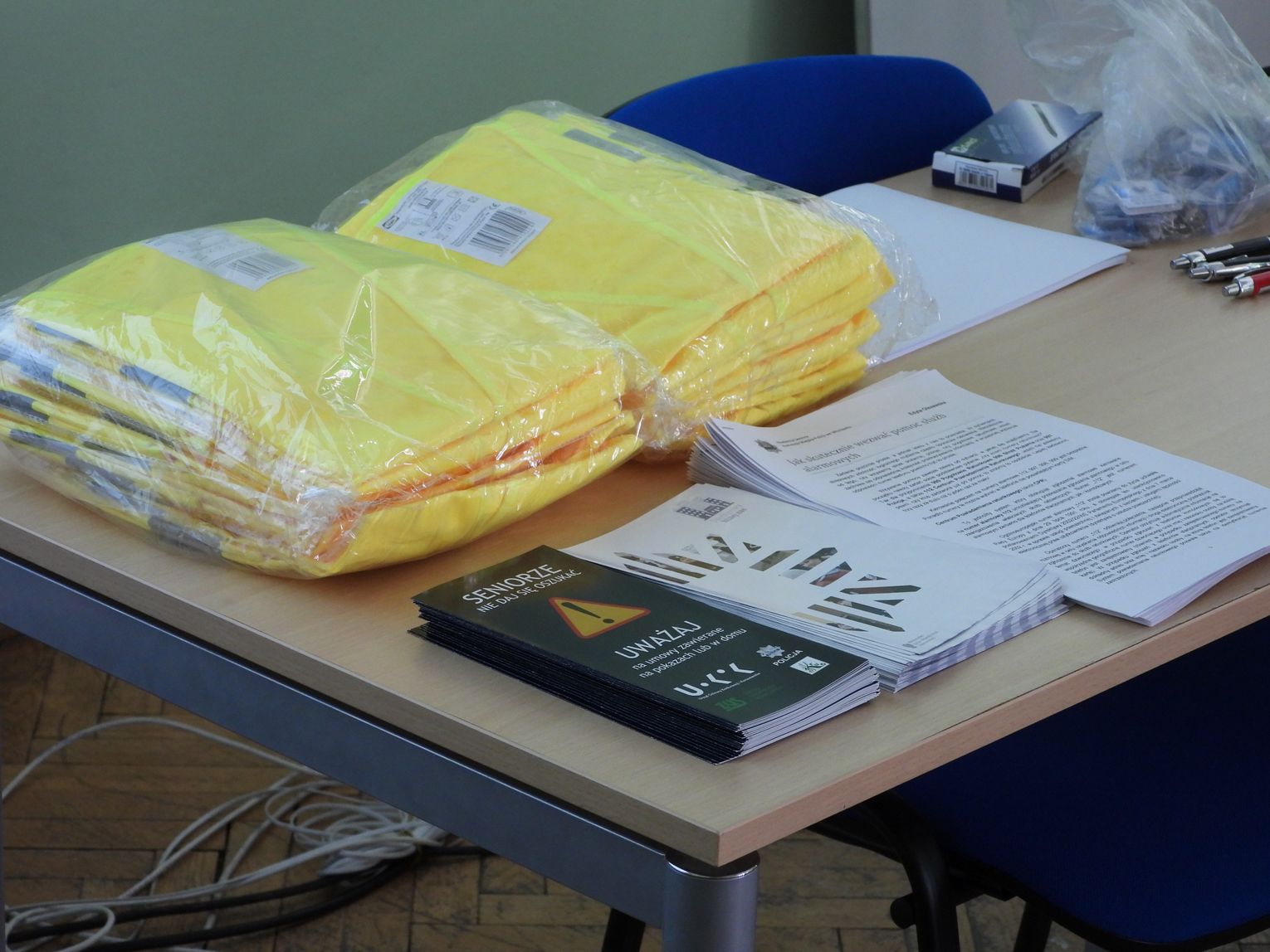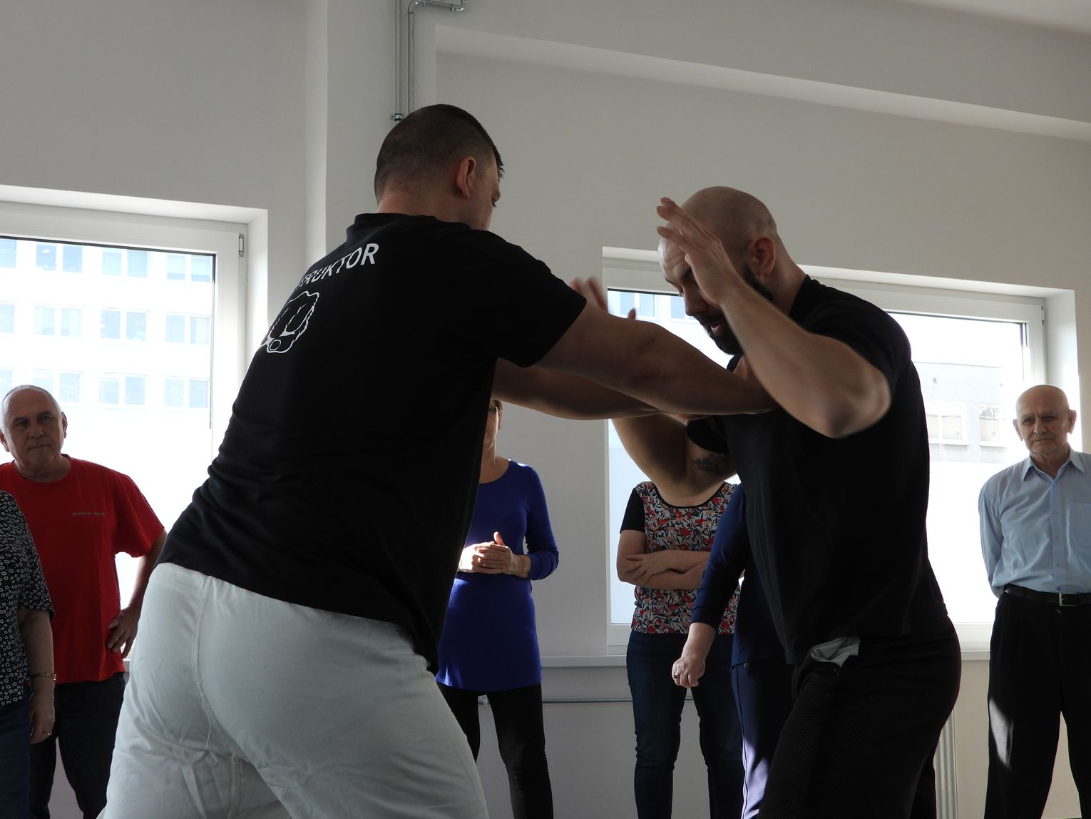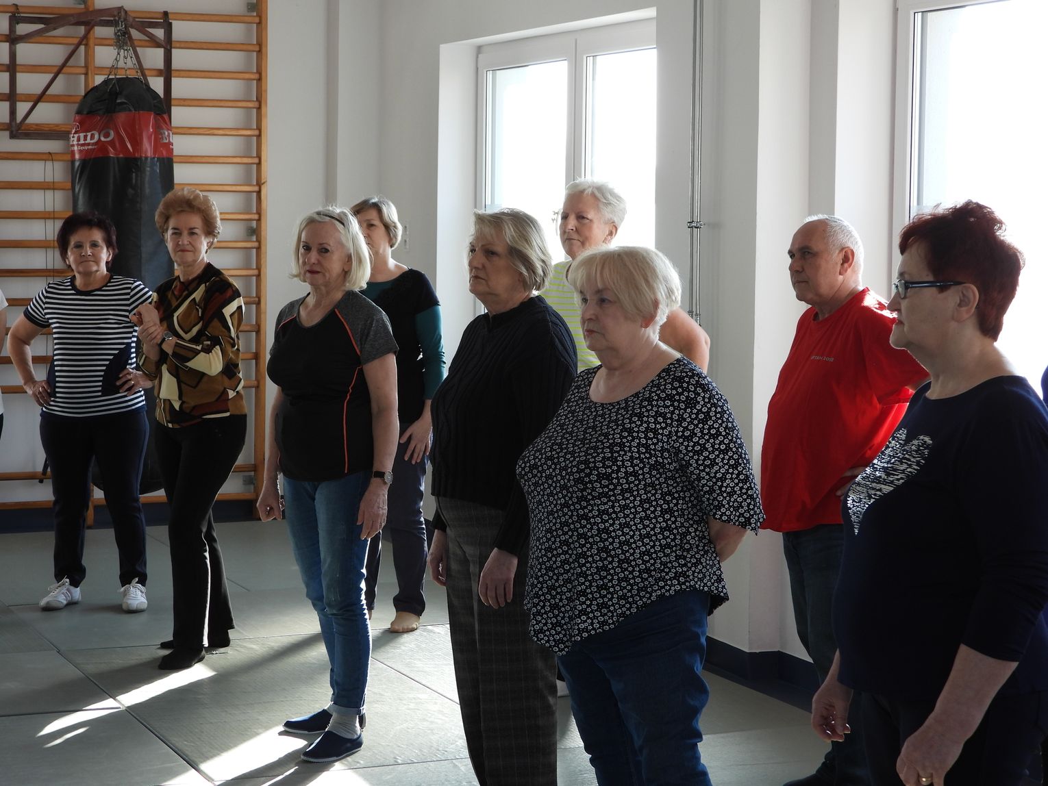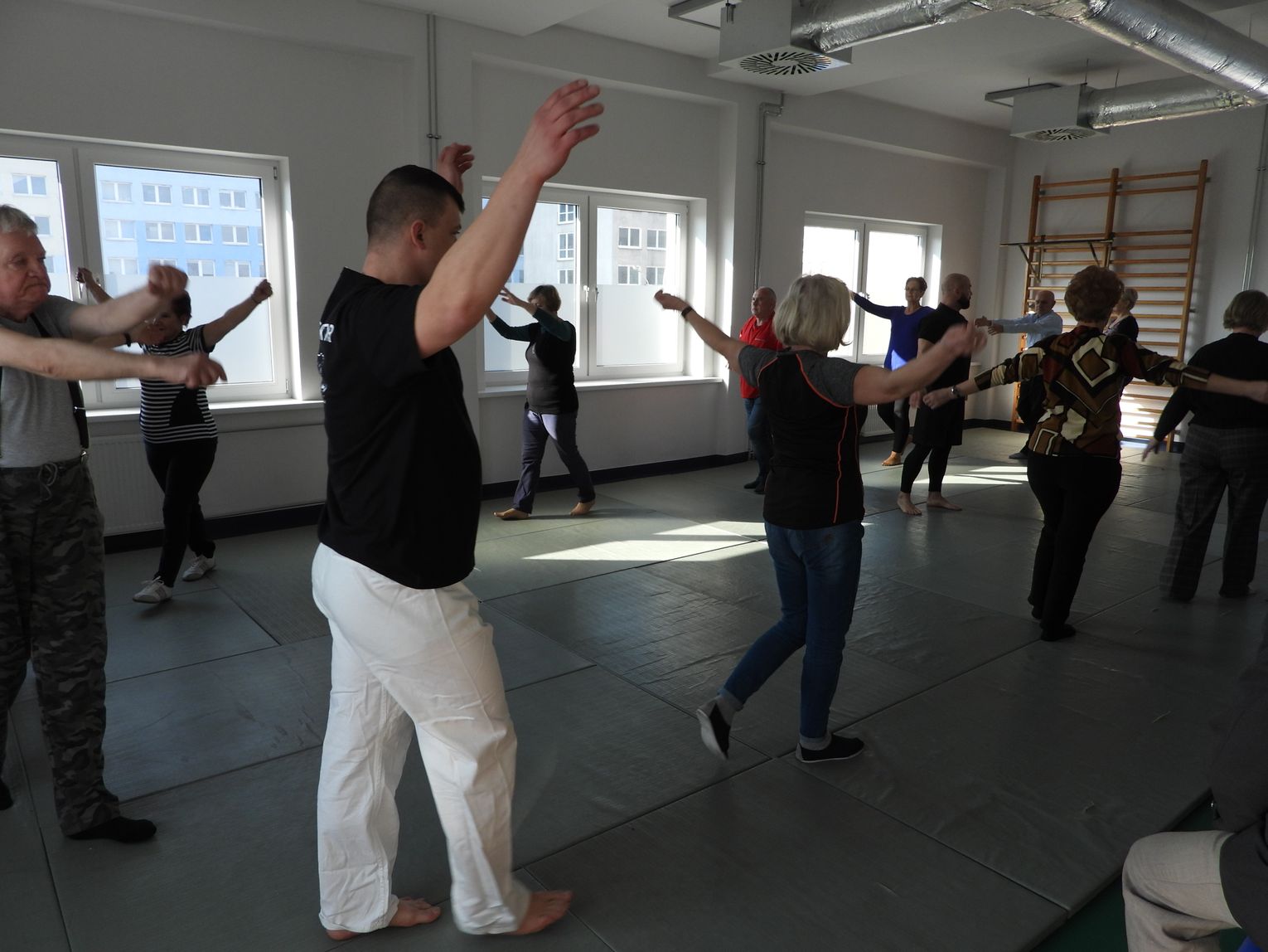 W kolejnej części spotkania seniorzy mogli zapoznać się z podstawowymi ruchami ułatwiającymi wydostanie się z uchwytu potencjalnego napastnika. Ćwiczenia prowadzili policjanci wydziału patrolowo-interwencyjnego. Rozdano także breloczki z numerami do włocławskich dzielnicowych oraz kamizelki odblaskowe. Seniorzy dowiedzieli się o zasadach funkcjonowania numerów alarmowych, przyjmowania zgłoszeń oraz otrzymali materiały informacyjne dotyczące tych zagadnień.
