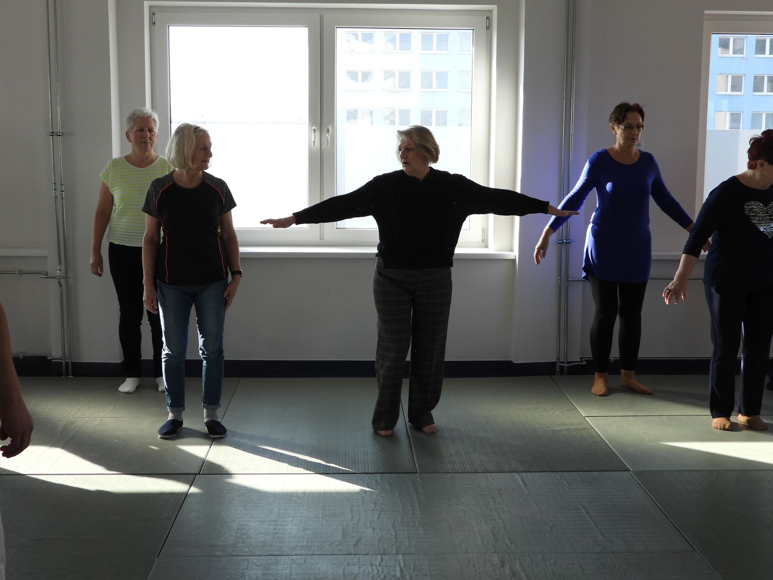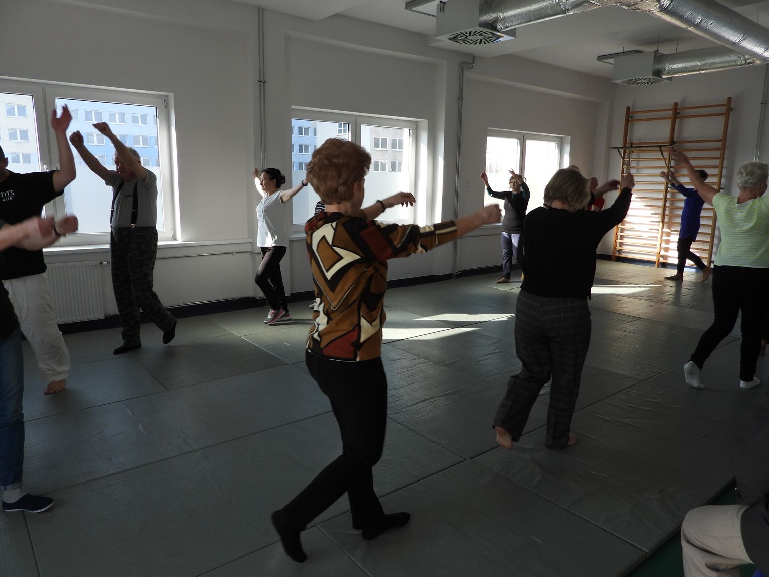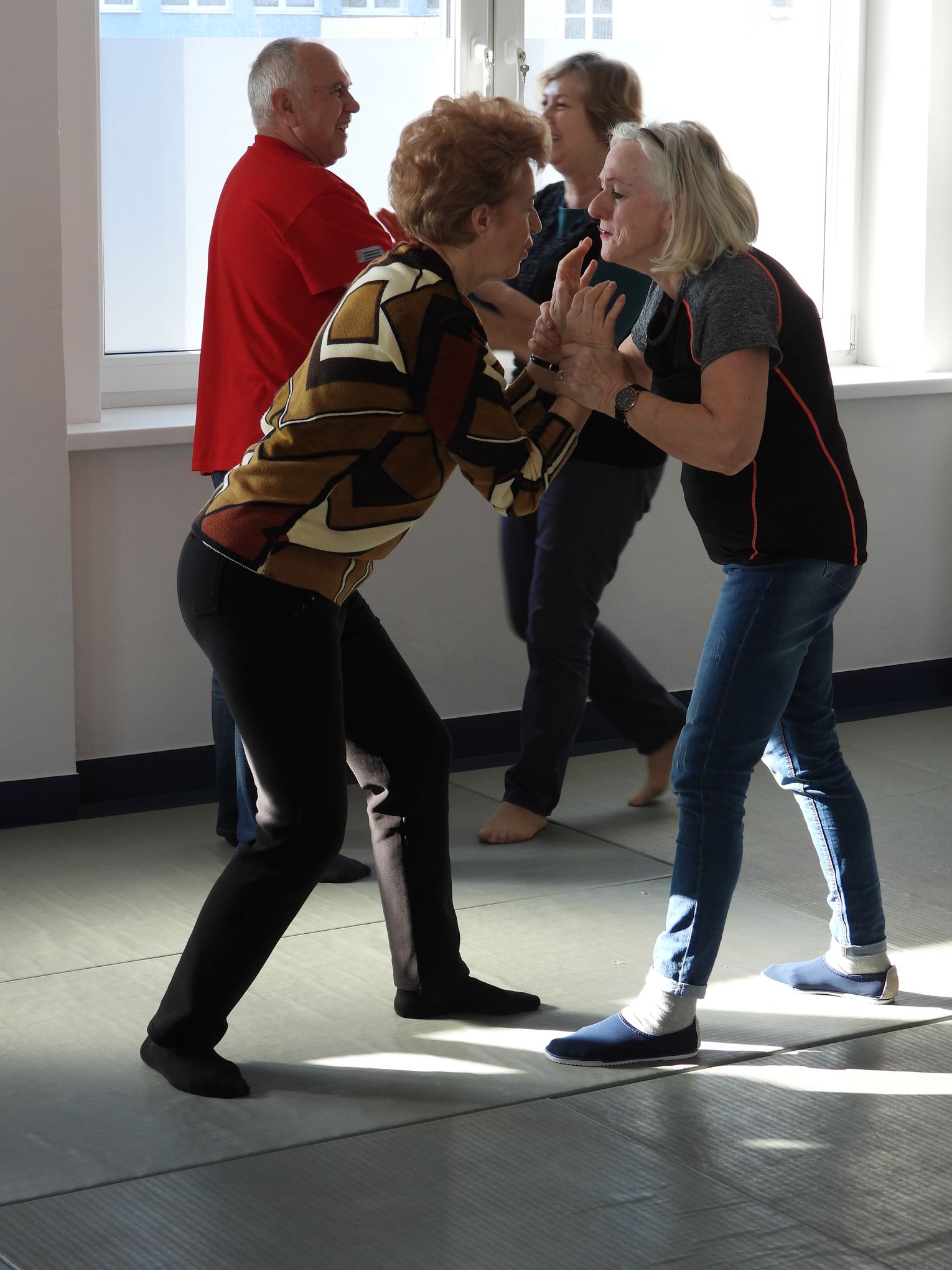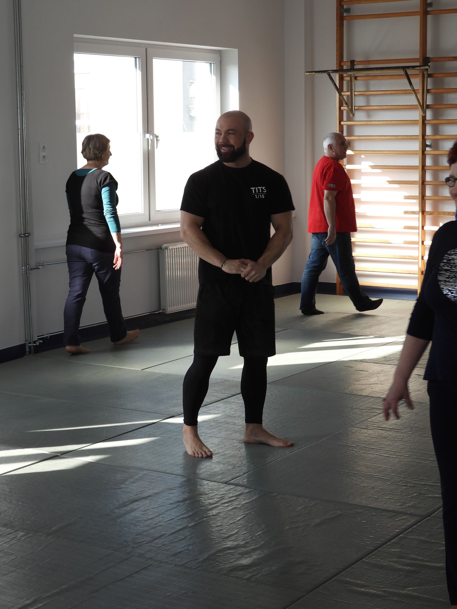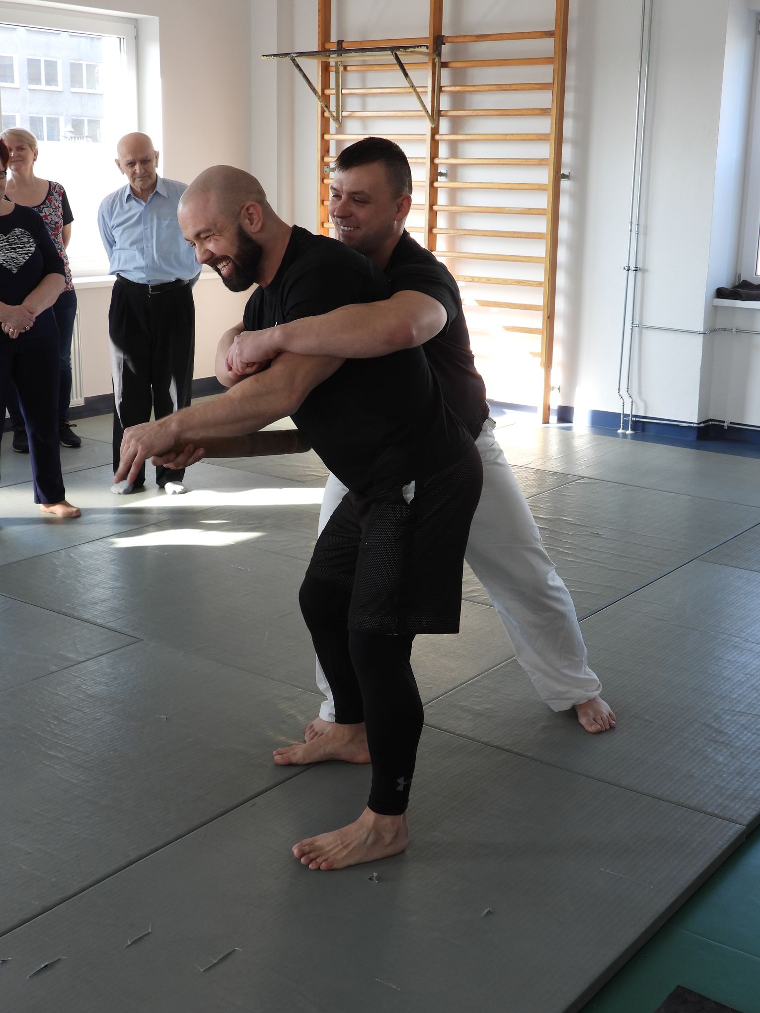 W kolejnej części spotkania seniorzy mogli zapoznać się z podstawowymi ruchami ułatwiającymi wydostanie się z uchwytu potencjalnego napastnika. Ćwiczenia prowadzili policjanci wydziału patrolowo-interwencyjnego. Rozdano także breloczki z numerami do włocławskich dzielnicowych oraz kamizelki odblaskowe. Seniorzy dowiedzieli się o zasadach funkcjonowania numerów alarmowych, przyjmowania zgłoszeń oraz otrzymali materiały informacyjne dotyczące tych zagadnień.