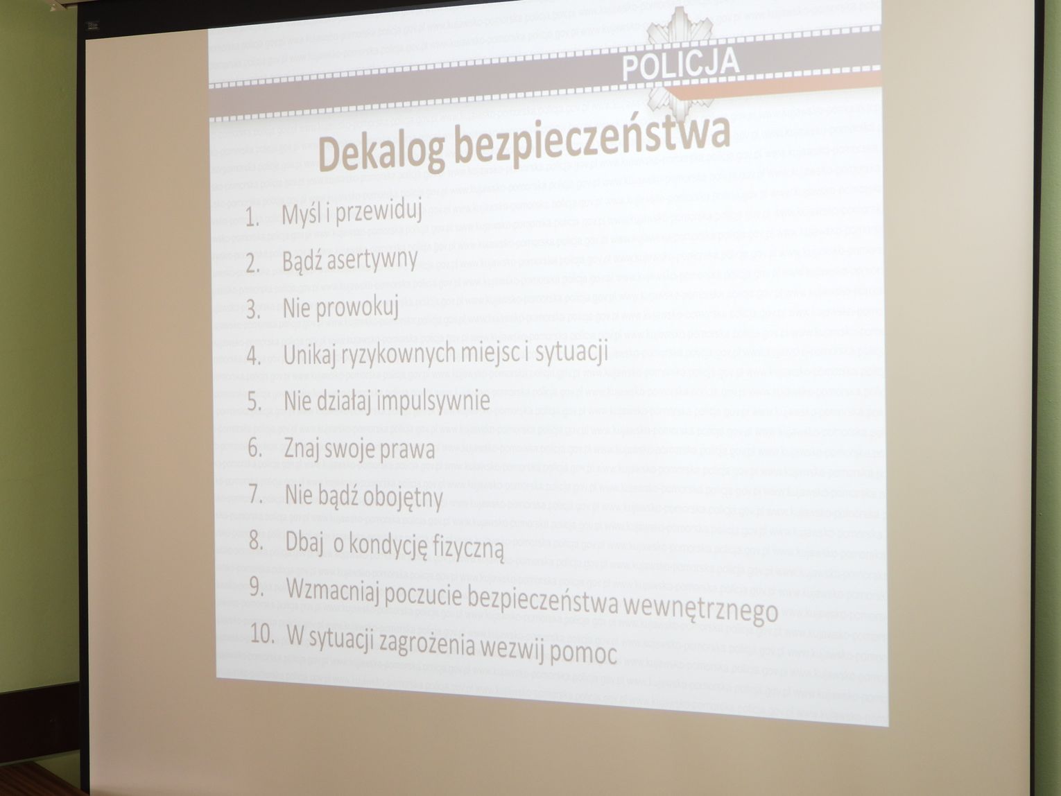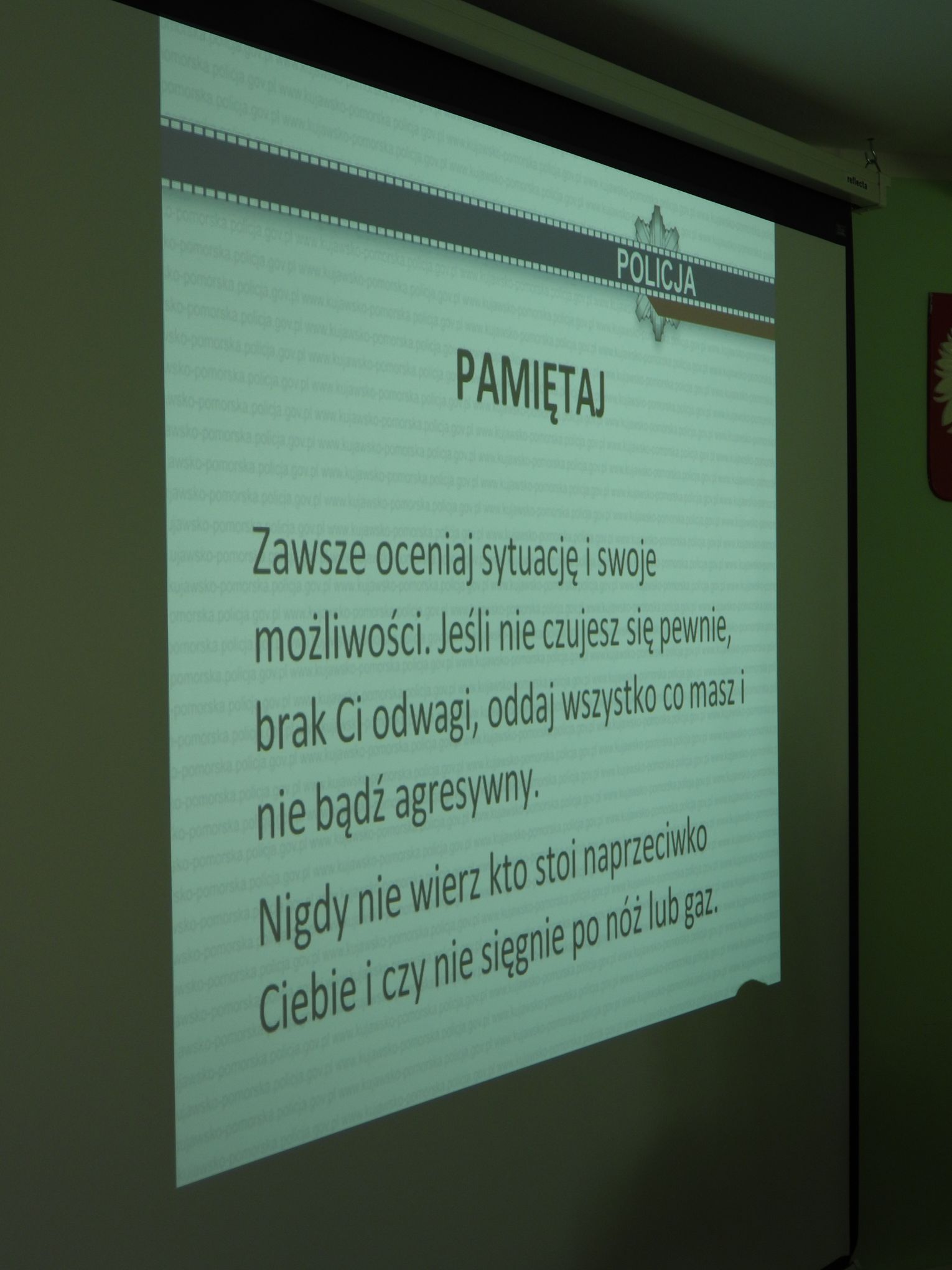 "Złodzieje podają się za przedstawicieli przeróżnych instytucji wchodzą do mieszkań osób starszych. Tam we własnym domu, który powinien być bezpieczny stają się ofiarami. Najważniejsze jest poczucie własnej decyzyjności. Jak wiemy co zrobić jesteśmy pewniejsi siebie"- mówiła Edyta Olszewska z Wydziału Prewencji KMP we Włocławku