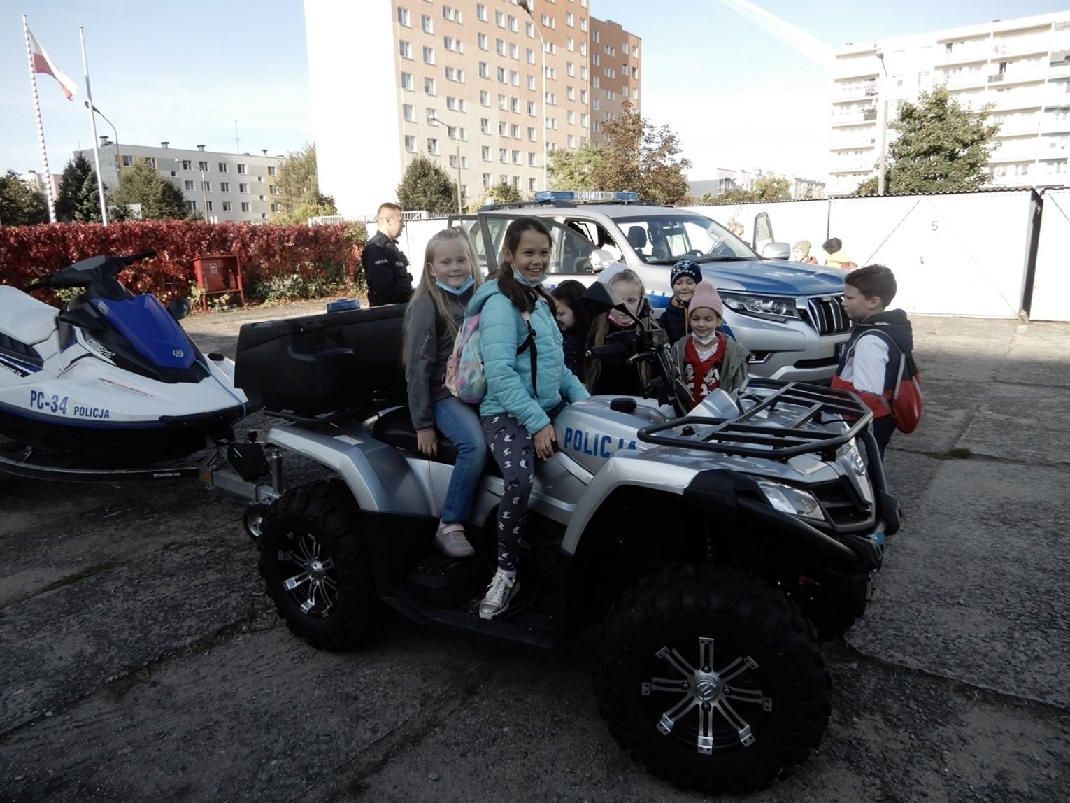 Rozmów o bezpieczeństwie nigdy za dużo, dlatego policjanci odbywają serię spotykań z dziećmi i młodzieżą, aby przekazać im dawkę przydatnej wiedzy. Tego typu wizyty są również dobrą okazją do przybliżenia zawodu policjanta i opowiedzenia o specyfice policyjnej służby. Wczoraj (28.09.21) policjantka z zespołu profilaktyki i dzielnicowy odwiedzili dzieci z Przedszkola Publicznego nr 25 we Włocławku. Mundurowi spotkali się ze wszystkimi grupami wiekowymi przedszkolaków, aby opowiedzieć im o bezpieczeństwie na drodze. Wykorzystując elementy ruchu drogowego, uczyli dzieci jak bezpiecznie przechodzić przez jezdnię. Nie zabrakło też informacji o właściwym zachowaniu się, gdy zaczepi je nieznajoma osoba. Z kolei dzisiaj (29.09.21) w murach włocławskiej komendy gościli uczniowie klasy drugiej Szkoły Podstawowej nr 20 we Włocławku, którzy dowiedzieli się na czym polega służba w poszczególnych wydziałach. Najpierw dzieciaki obejrzały z bliska sprzęt wykorzystywany przez policjantów ogniwa wodnego, w tym terenowy radiowóz, quad i łódź służbową. Następnym punktem wycieczki była rozmowa z przewodnikami psów policyjnych, którzy zaprezentowali swoich czworonożnych podopiecznych i wyjaśnili do jakich zadań wykorzystywane są w policji psy służbowe. Przypomnieli też jak należy się zachować podczas kontaktu z agresywnym zwierzęciem. Nie mogło również zabraknąć dawki wiedzy kryminalnej. Policjantka przybliżyła więc gościom na czym polega praca technika kryminalistyki i pokazała w jaki sposób zabezpiecza się ślady linii papilarnych. Z pewnością to nie ostatnie tego typu spotkania, bo sądząc po reakcjach przedszkolaków i uczniów, przypadły im do gustu.