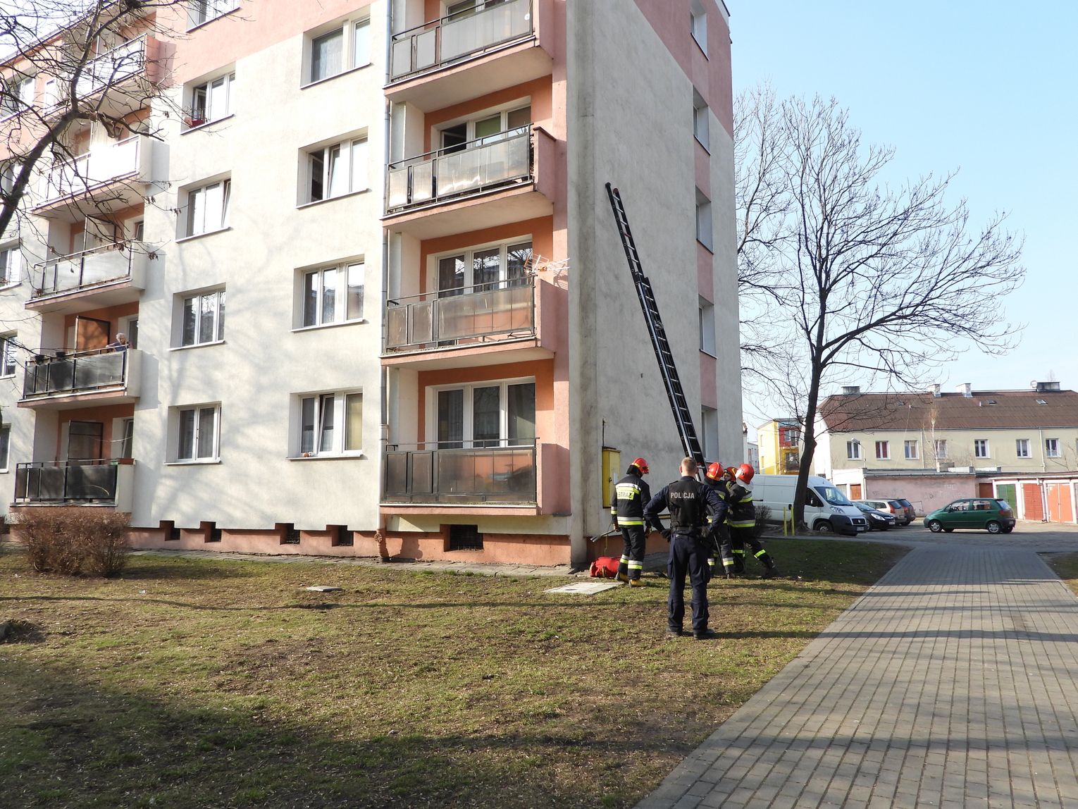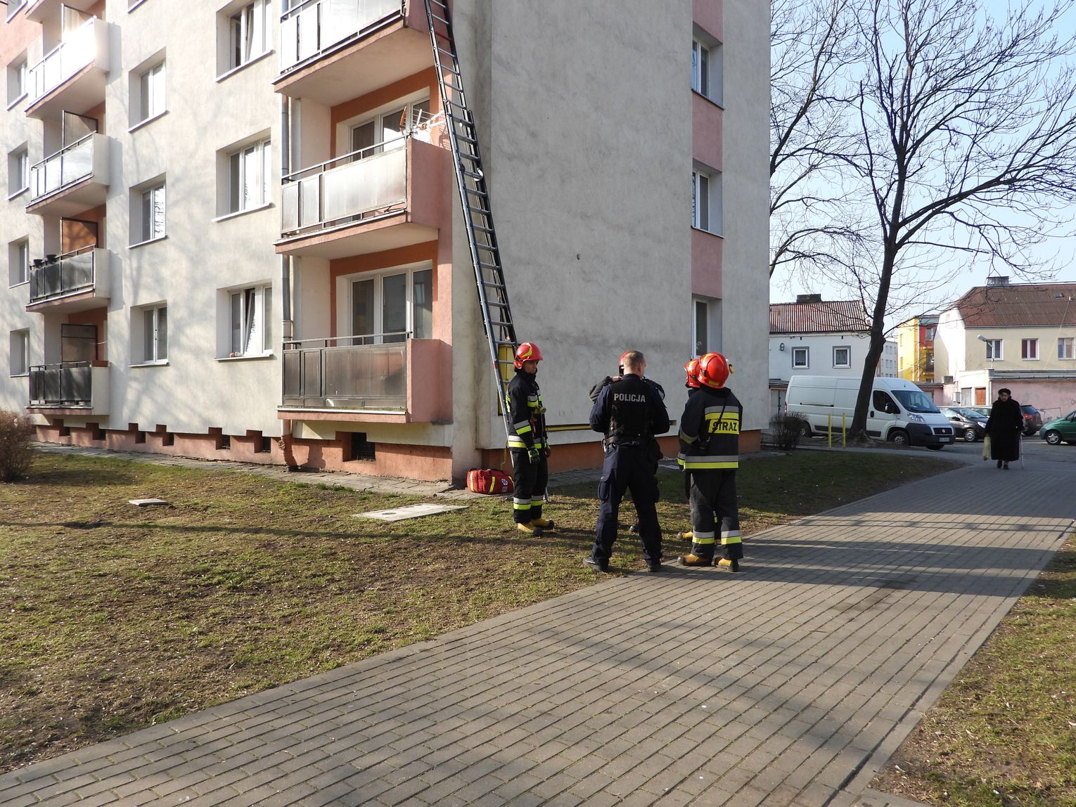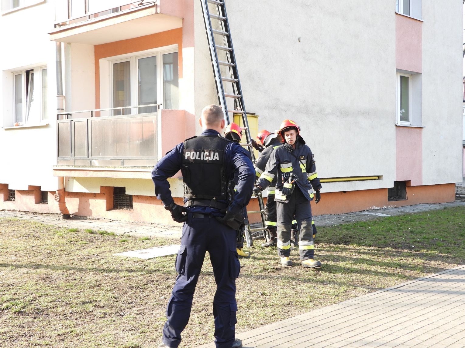 "Działaliśmy jednym zastępem na prośbę policji. Strażacy przy pomocy drabiny weszli na II piętro. Wykorzystali otwarte drzwi balkonowe i umożliwili tym samym policji wejście do tego mieszkania bez większych strat. Po wejściu okazało się że w środku był pijany mężczyzna."- poinformował bryg. Dariusz Krysiński z KMPSP we Włocławku
