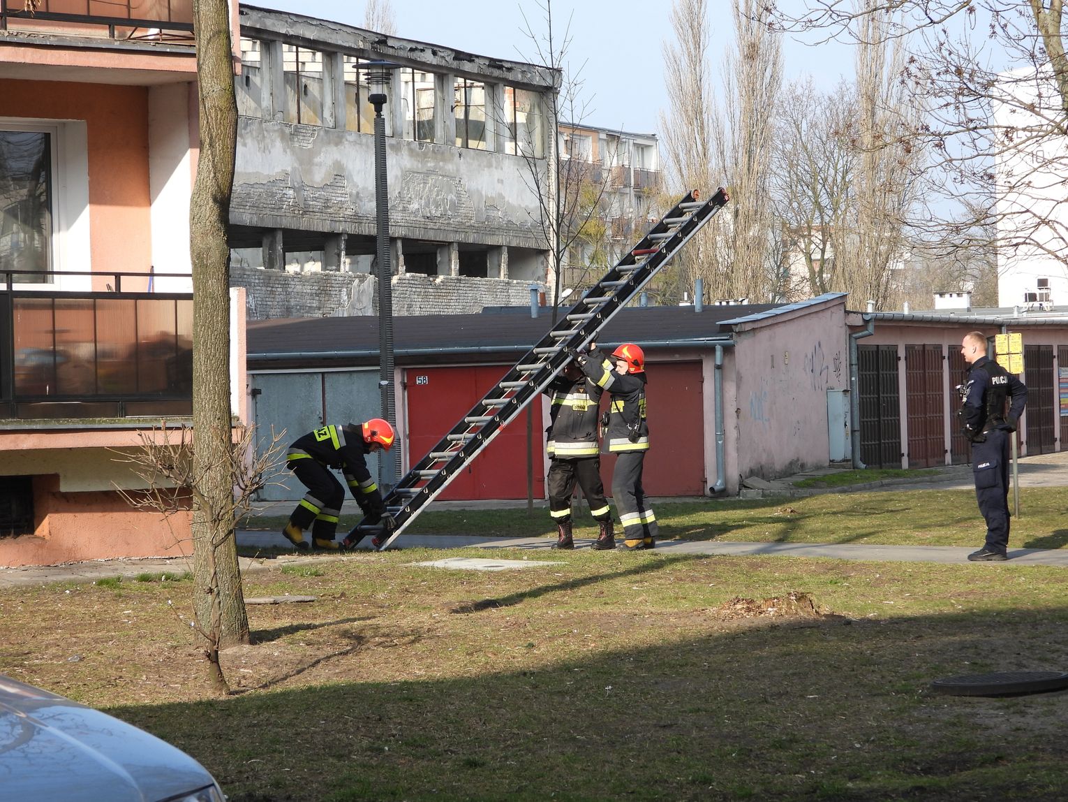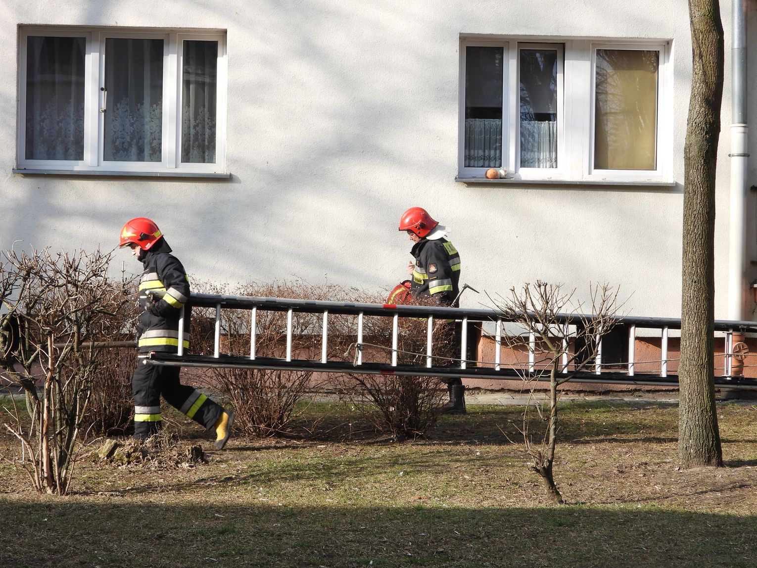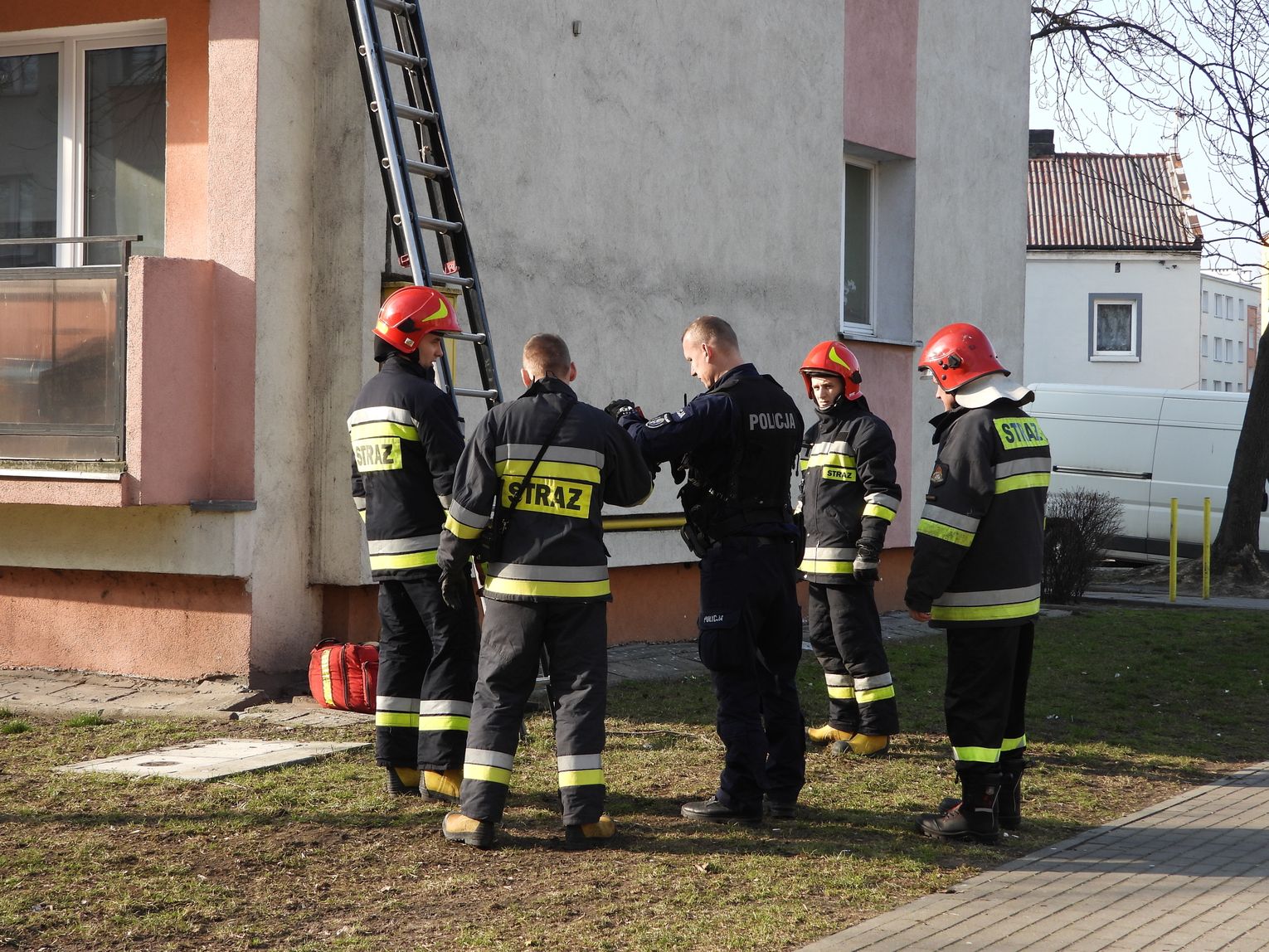 "Działaliśmy jednym zastępem na prośbę policji. Strażacy przy pomocy drabiny weszli na II piętro. Wykorzystali otwarte drzwi balkonowe i umożliwili tym samym policji wejście do tego mieszkania bez większych strat. Po wejściu okazało się że w środku był pijany mężczyzna."- poinformował bryg. Dariusz Krysiński z KMPSP we Włocławku