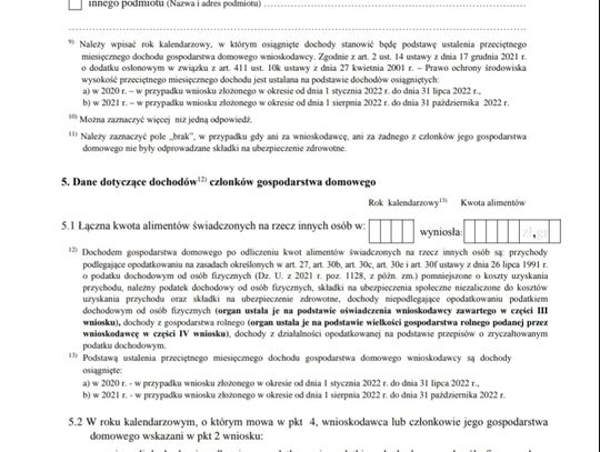 Jednoosobowe gospodarstwo domowe otrzyma 400/500 zł* przy założeniu że jej dochód nie przekroczy 2100 złotych,