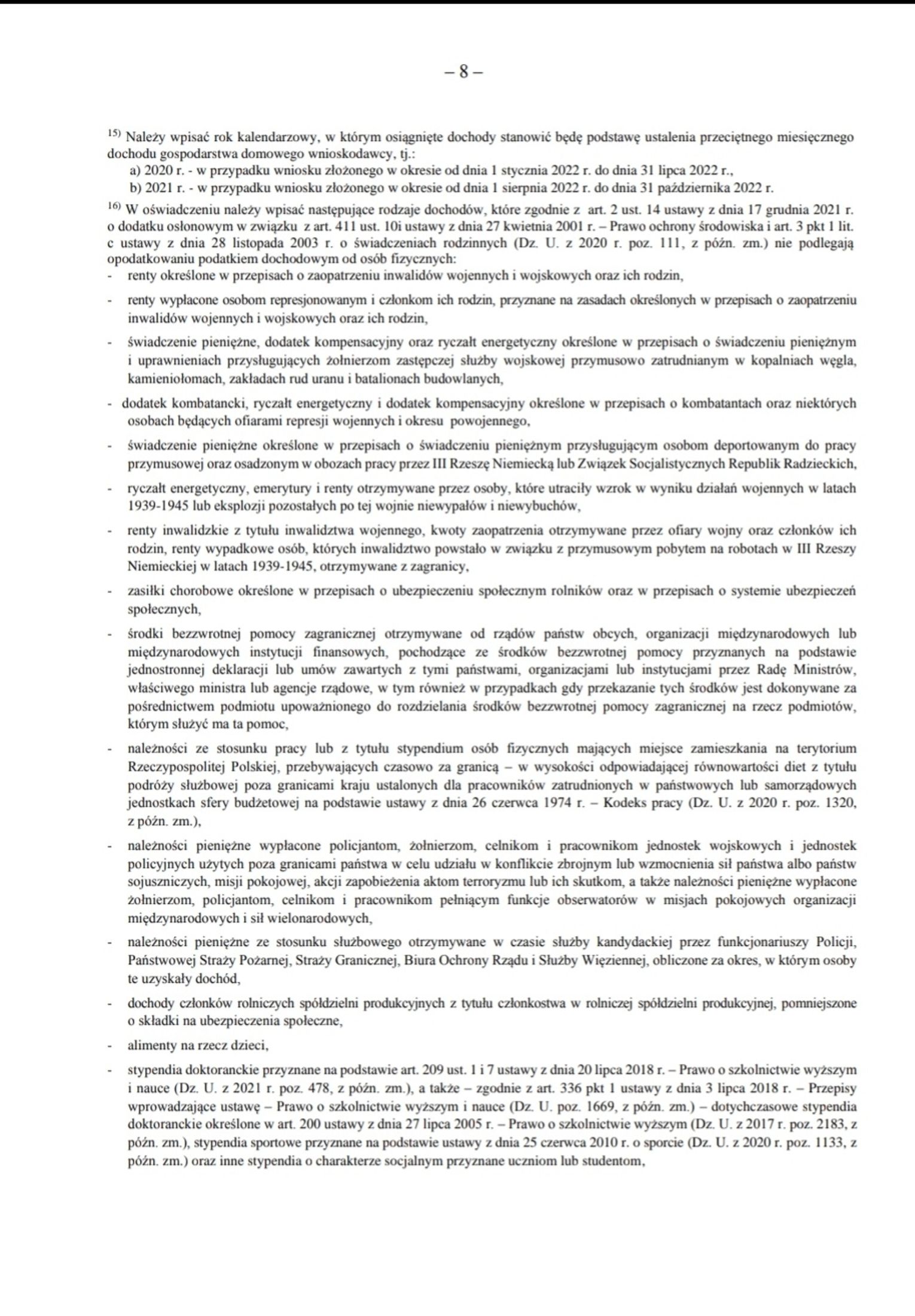 Dodatek osłonowy będzie przysługiwał za okres od dnia 1 stycznia 2022 r. do dnia 31 grudnia 2022 r. a jego wysokość będzie zależała od liczby osób wchodzących w skład gospodarstwa domowego oraz źródła ogrzewania gospodarstwa domowego.