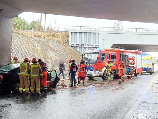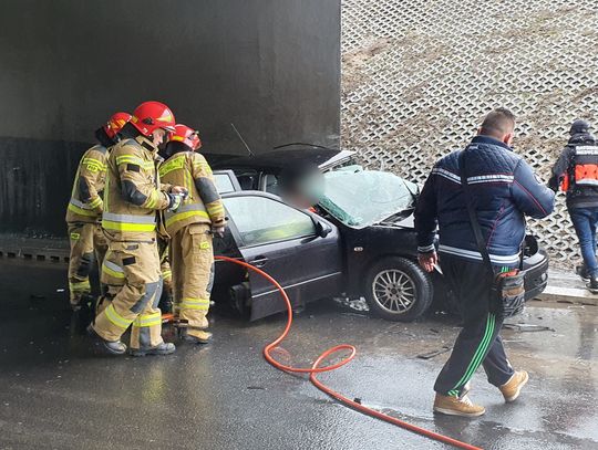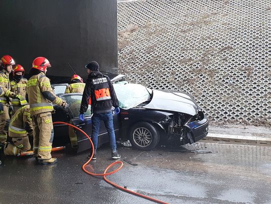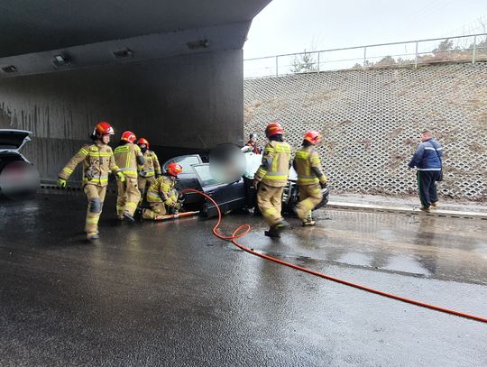 Po godz 11.00 na al. Królowej Jadwigi doszło do wypadku drogowego. Mężczyzna kierujący osobowym Seatem Toledo uderzył w ścianę wiaduktu. Poszkodowany był przytomny, uderzenie zaklinowało jednak nogi kierowcy. Osoby postronne usiłowały go wydostać, jednak uderzenie zbyt silnie zgniotło auto. Niezbędna okazała się pomoc strażaków którzy wyjęli mężczyznę z pojazdu przecinając karoserię auta. Aktualizacja 31.01. g. 11.44: