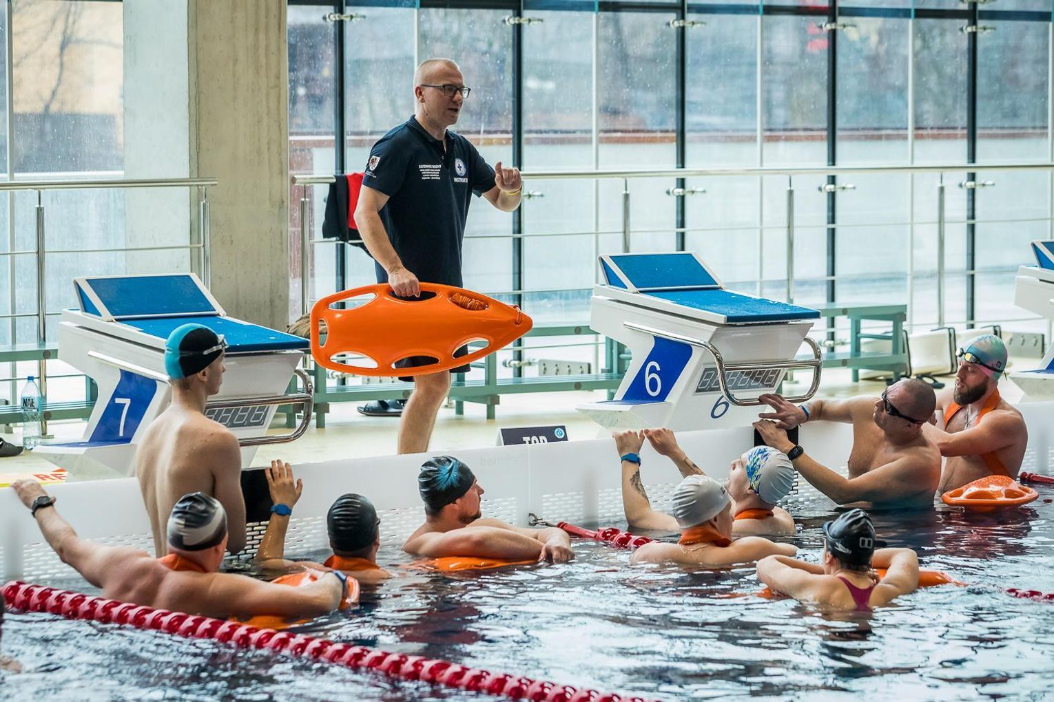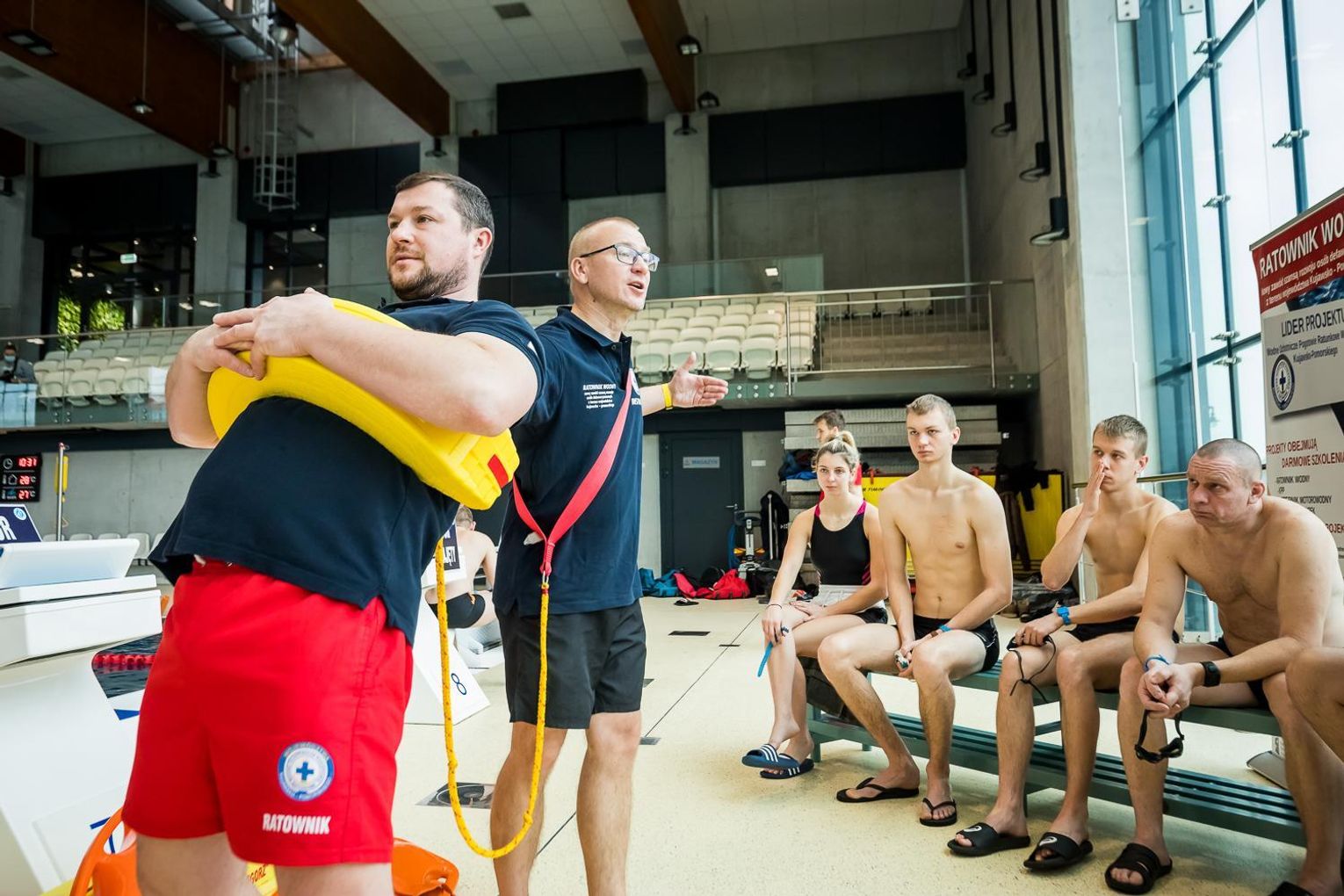 - ratownika wodnego, który trwa 63 godziny (20 godzin zajęć teoretycznych, 23 godziny praktyki na wodach otwartych i 20 godzin ćwiczeń na basenie)