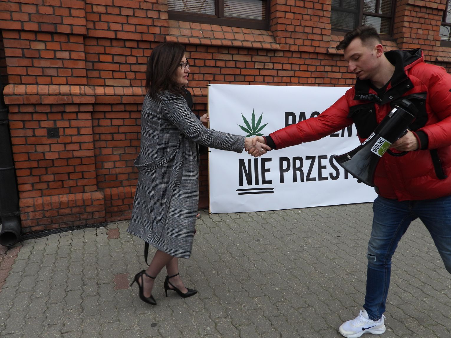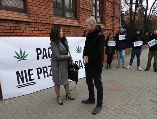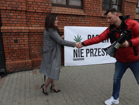 "Witamy na konferencji w sprawie pacjenta, który leczył się marihuaną i za to został ukarany. Dzisiaj jesteśmy na rozprawie pana Kamila, dziś byłego już policjanta, dlatego, że Sad, po tym jak został skazany, zakazał mu wykonywania zawodu. Jesteśmy tu z grupą aktywistów i aktywistek z ruchu "Wolne Konopie". Zależy nam, aby pokazać jak absurdalne jest prawo w Polsce. Jak to jest, że osoby, które używają marihuany, substancji, która jest legalna, kiedy kupuje się ją w aptece na receptę, a ta sama substancja może zniszczyć komuś życie, tylko dlatego, że hodował ja na własne potrzeby? Tak jak pan Kamil, który ze względu na stres związany z pracą policjanta używał konopi jako środka leczniczego, ponieważ inne środki farmakologiczne nie były w stanie mu pomóc." - powiedziała Beata Maciejewska, wiceprzewodnicząca Lewicy, założycielka Parlamentarnego Zespołu ds. Legalizacji Marihuany