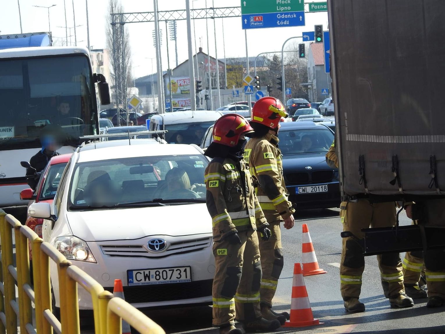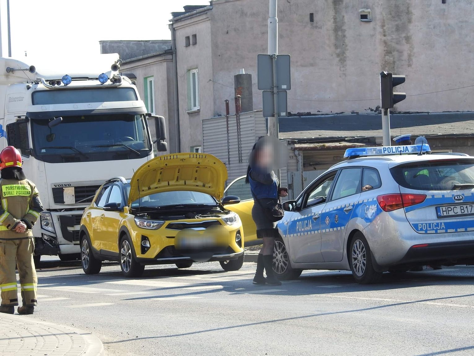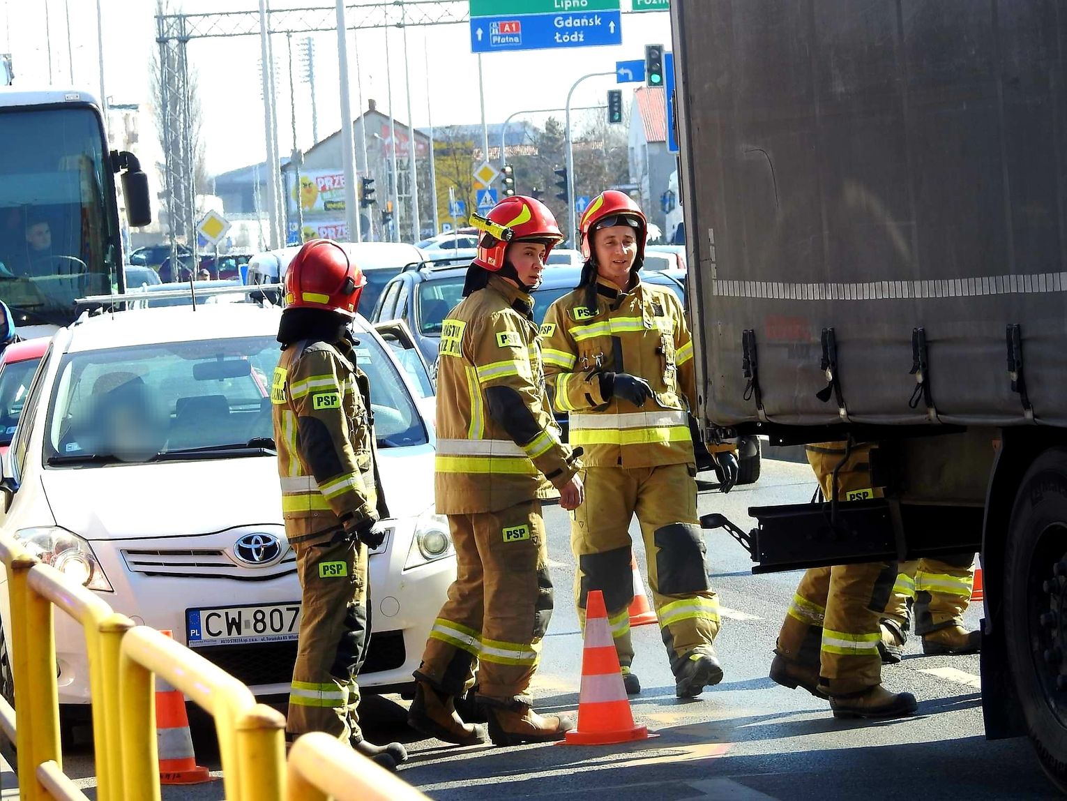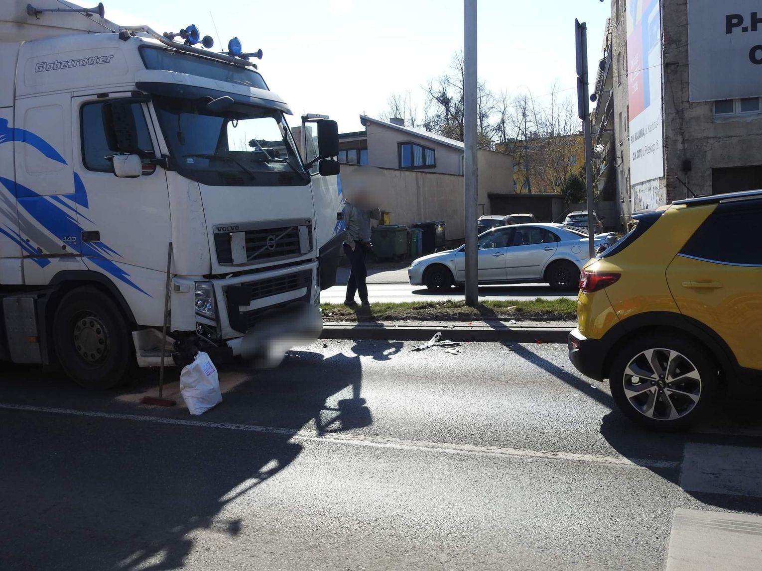 "Policjanci ustalili, że 43-letni kierujący ciężarowym Volvo nie dostosował prędkości do warunków ruchu i uderzył w tył pojazdu osobowego KIA. Zdarzenie zostało zakwalifikowane jako kolizja drogowa. Sprawca został ukarany mandatem." - powiedział st.sierż. Tomasz Tomaszewski z KMP we Włocławku