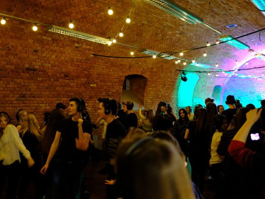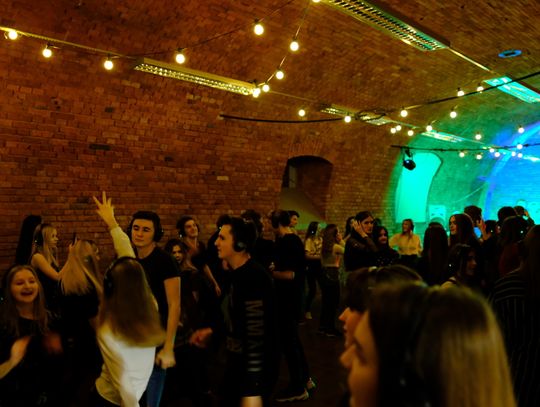 Zgodnie z zapowiedzią młodzież Liceum Ziem Kujawskich zorganizowała dziś w ramach olimpiady "Zwolnieni z Teorii" imprezę pod nazwą "Silent Disco"- skąd nazwa?