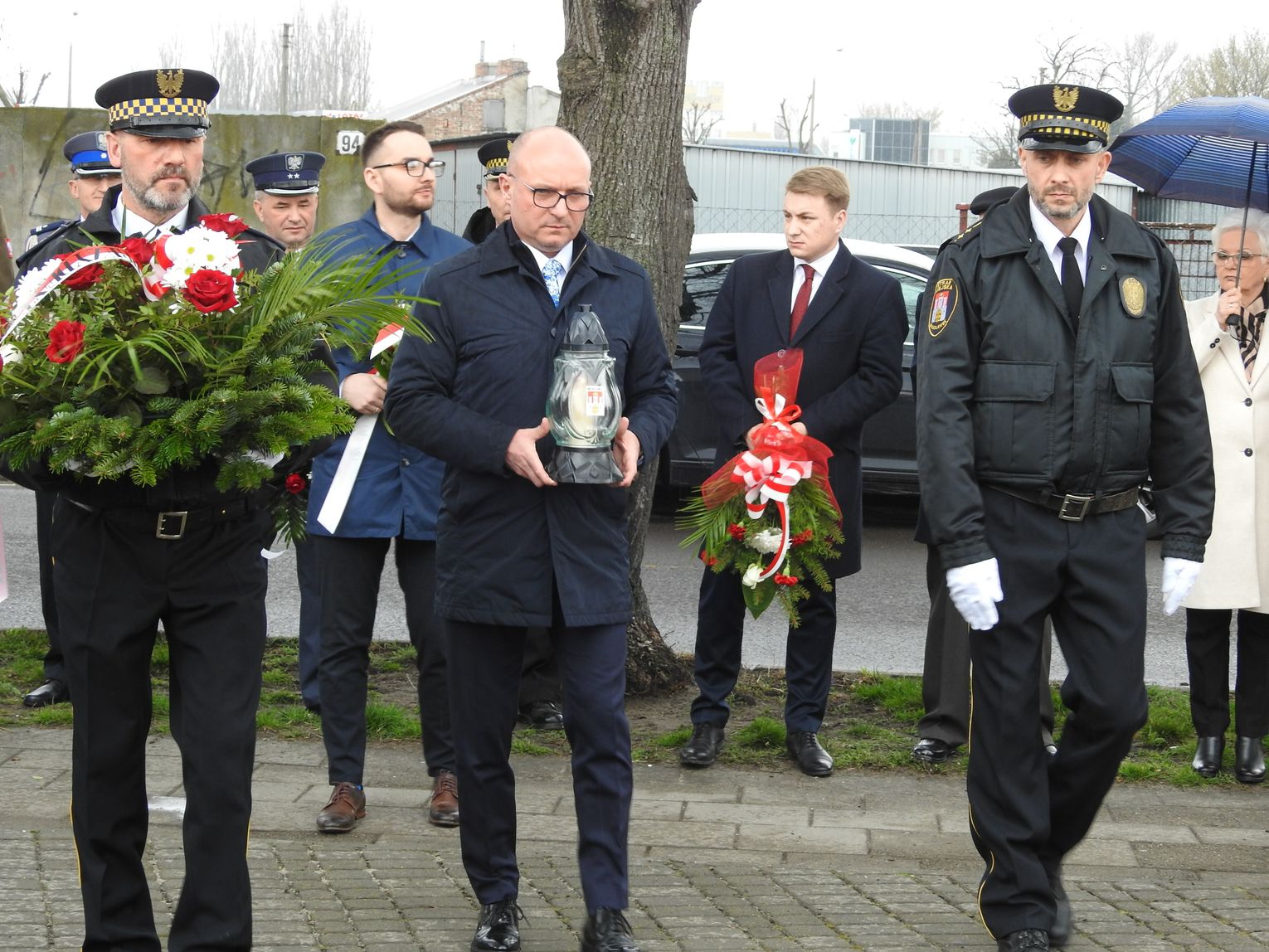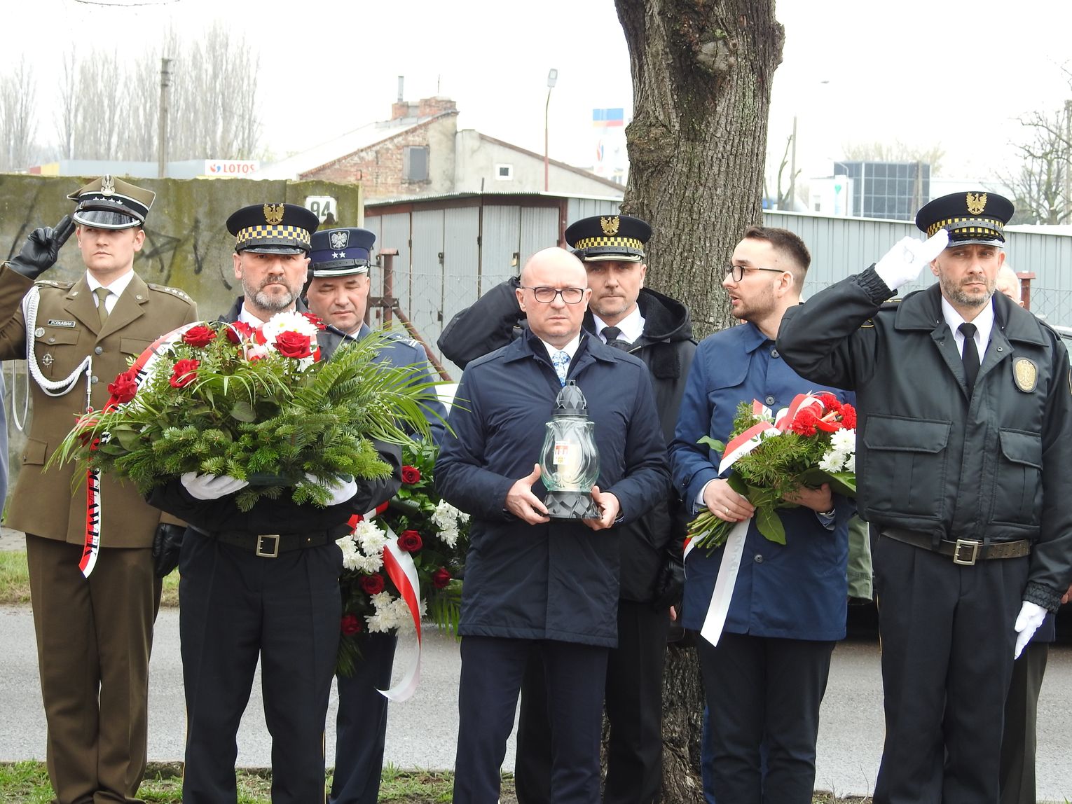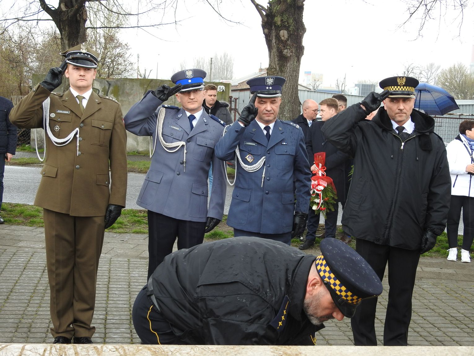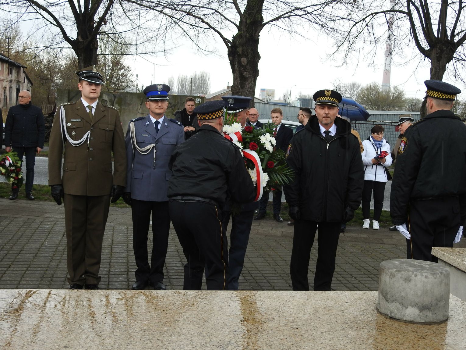 Po zakończeniu okolicznościowych przemówień przedstawiciele władz miasta, służb mundurowych i kombatantów złożyli pod pomnikiem wiązanki.