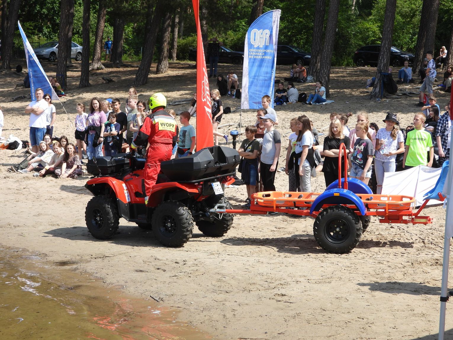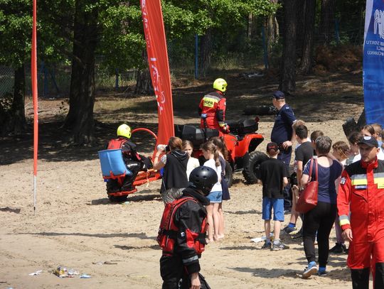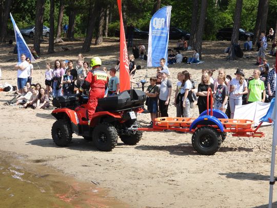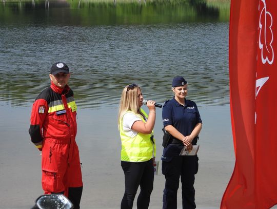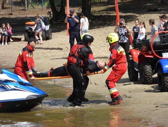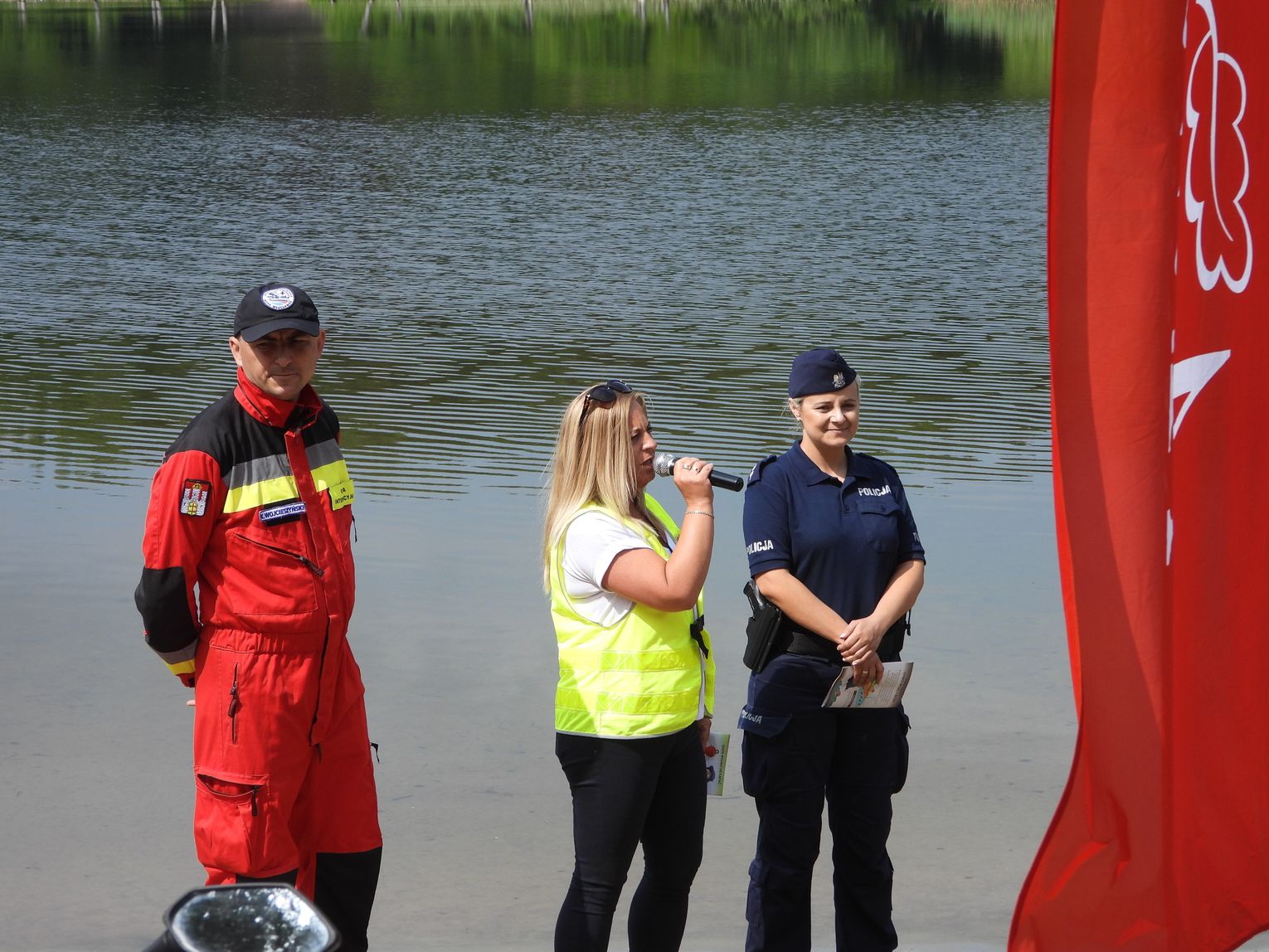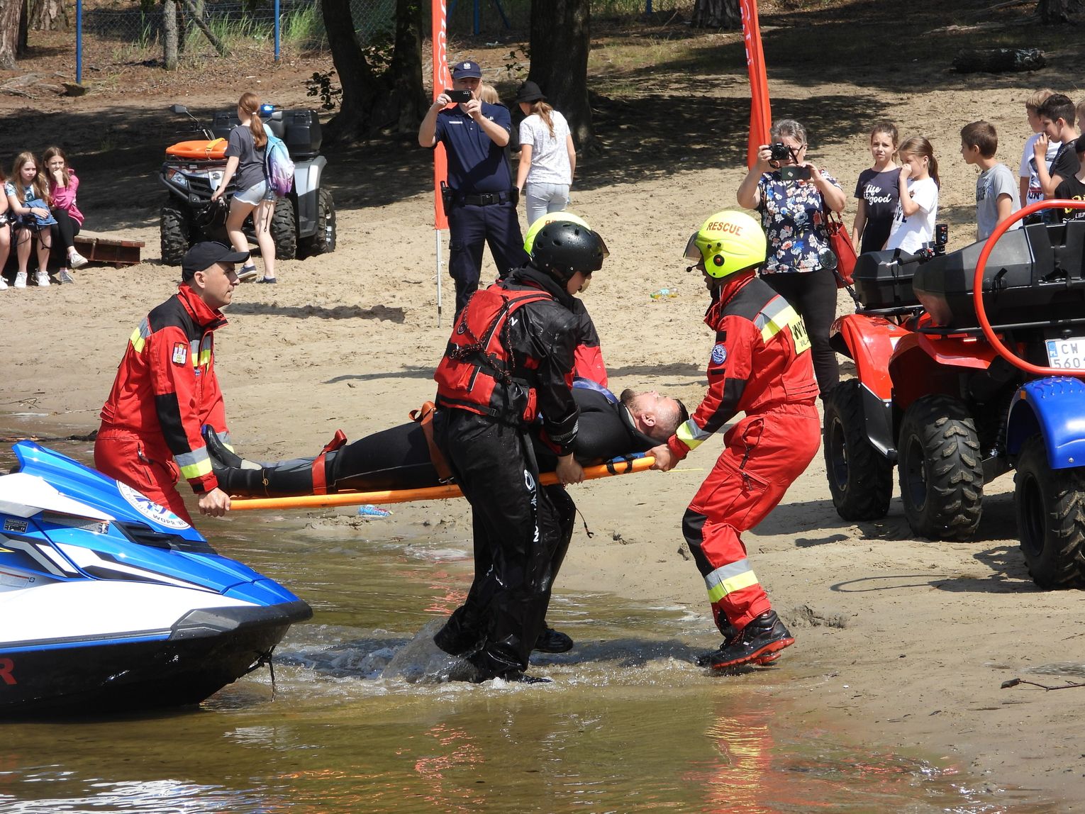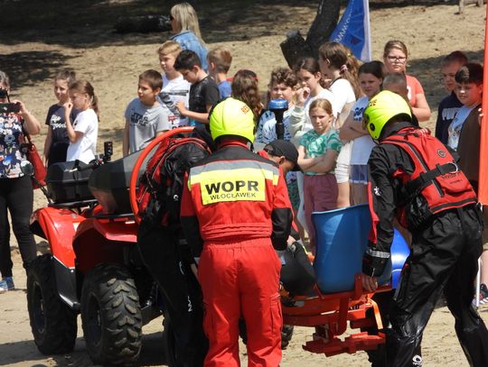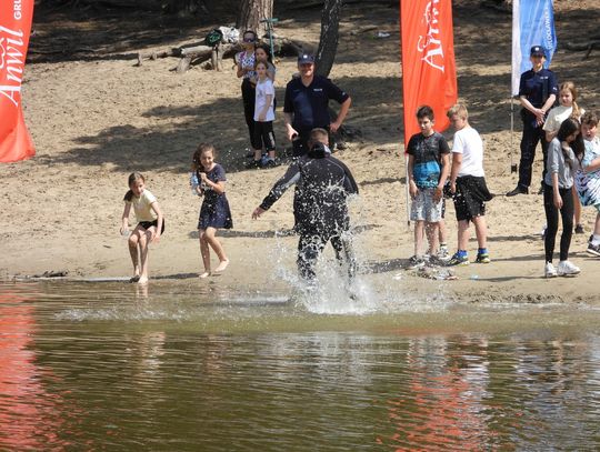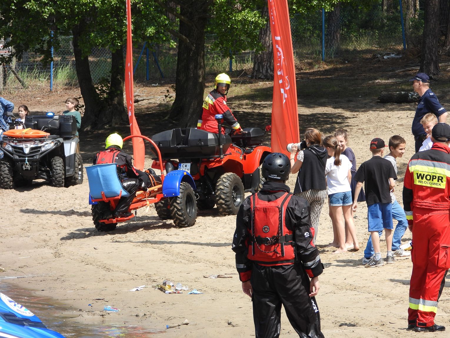 Uczniom najpierw przedstawiono wiedzę teoretyczną. Po kilkunastu minutach odbyły się pokazy praktyczne. WOPR przedstawił kilka sposobów podejmowania z wody topiących się ludzi. Największe zainteresowanie wzbudziło użycie skutera wodnego. Jeden z funkcjonariuszy wcielił się w rolę osoby nietrzeźwej. Biegał po plaży z pustą butelką, a jego rajd zakończył się skokiem do jeziora. Mężczyzna zaczął się topić, ale z pomocą przyszedł mu funkcjonariusz policji. Ostatecznie "nietrzeźwy" został uratowany, a na brzegu założono mu kajdanki.