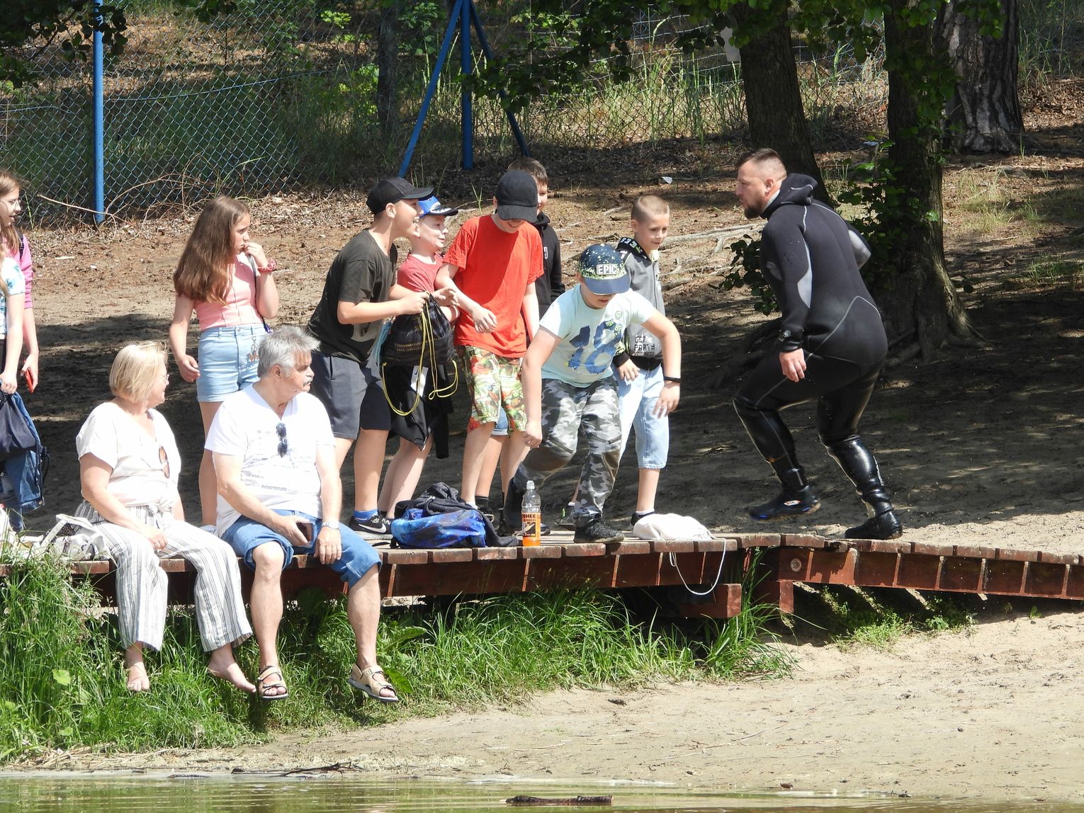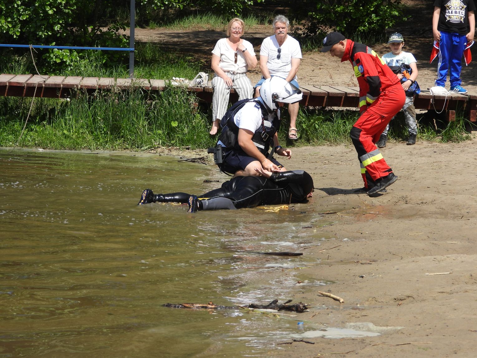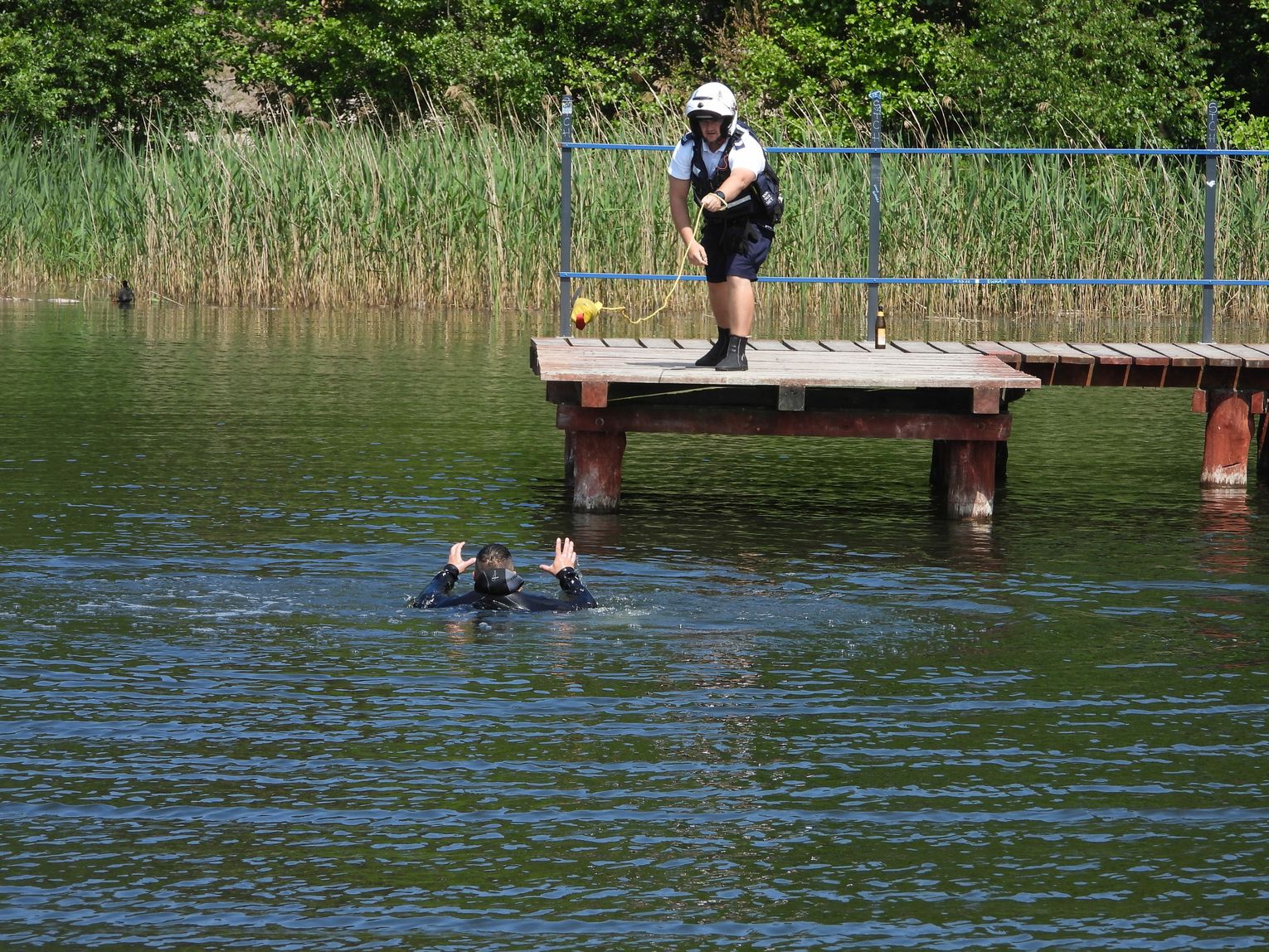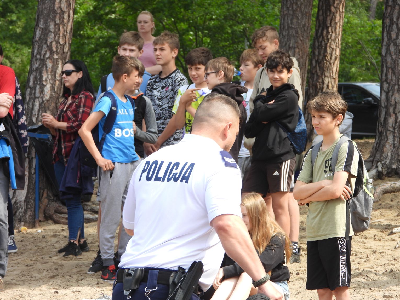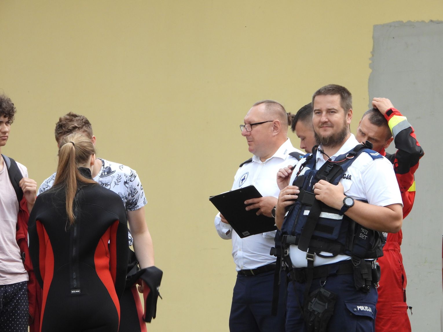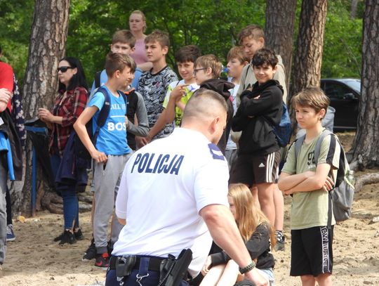 Uczniom najpierw przedstawiono wiedzę teoretyczną. Po kilkunastu minutach odbyły się pokazy praktyczne. WOPR przedstawił kilka sposobów podejmowania z wody topiących się ludzi. Największe zainteresowanie wzbudziło użycie skutera wodnego. Jeden z funkcjonariuszy wcielił się w rolę osoby nietrzeźwej. Biegał po plaży z pustą butelką, a jego rajd zakończył się skokiem do jeziora. Mężczyzna zaczął się topić, ale z pomocą przyszedł mu funkcjonariusz policji. Ostatecznie "nietrzeźwy" został uratowany, a na brzegu założono mu kajdanki.