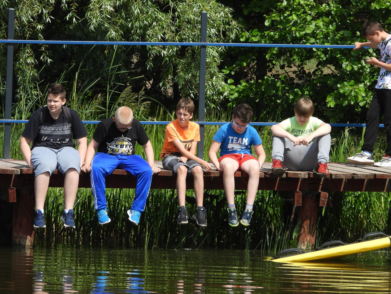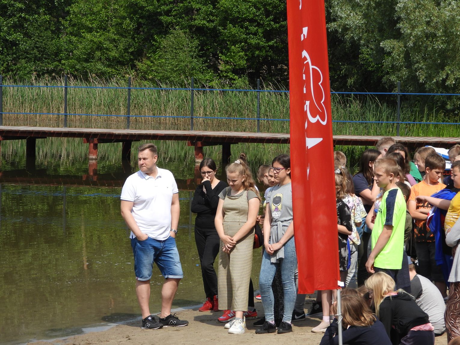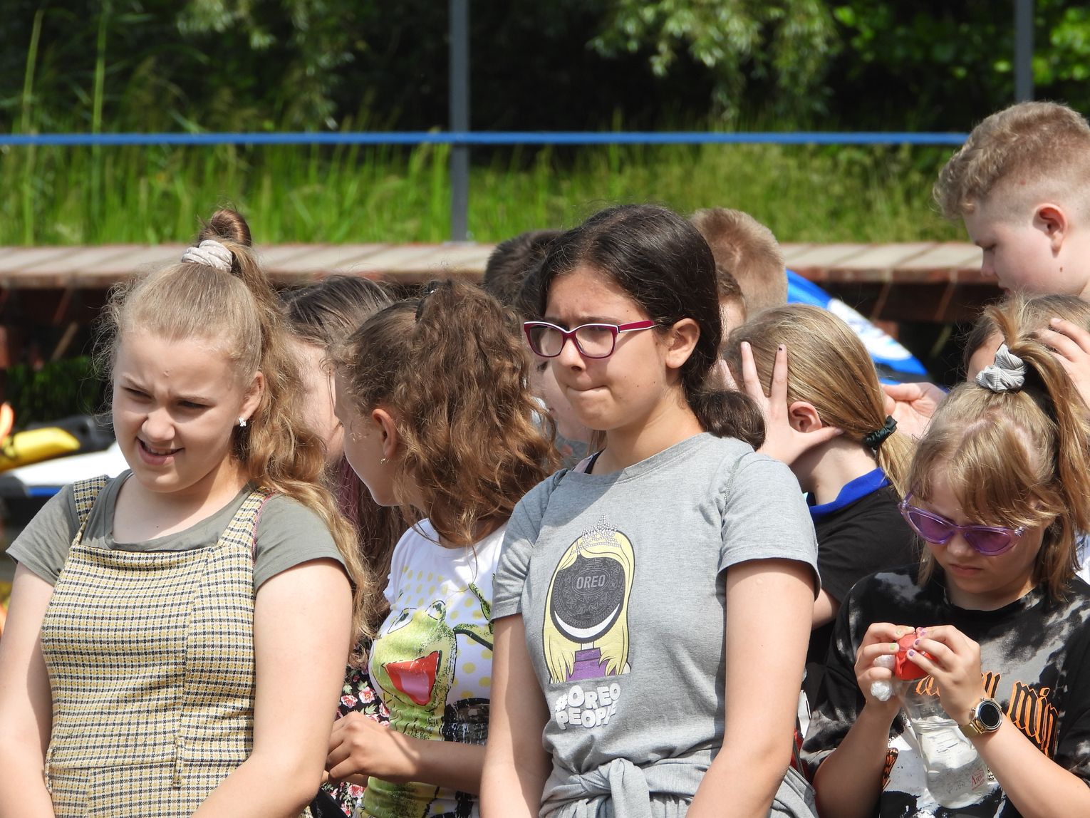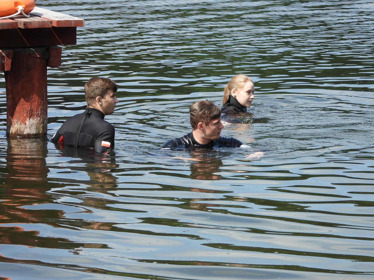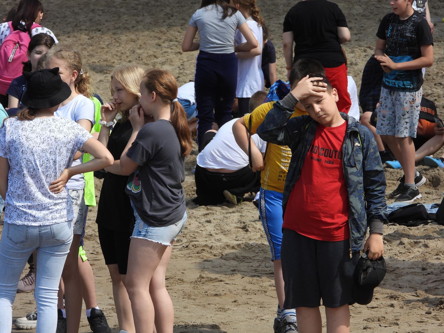 Uczniom najpierw przedstawiono wiedzę teoretyczną. Po kilkunastu minutach odbyły się pokazy praktyczne. WOPR przedstawił kilka sposobów podejmowania z wody topiących się ludzi. Największe zainteresowanie wzbudziło użycie skutera wodnego. Jeden z funkcjonariuszy wcielił się w rolę osoby nietrzeźwej. Biegał po plaży z pustą butelką, a jego rajd zakończył się skokiem do jeziora. Mężczyzna zaczął się topić, ale z pomocą przyszedł mu funkcjonariusz policji. Ostatecznie "nietrzeźwy" został uratowany, a na brzegu założono mu kajdanki.