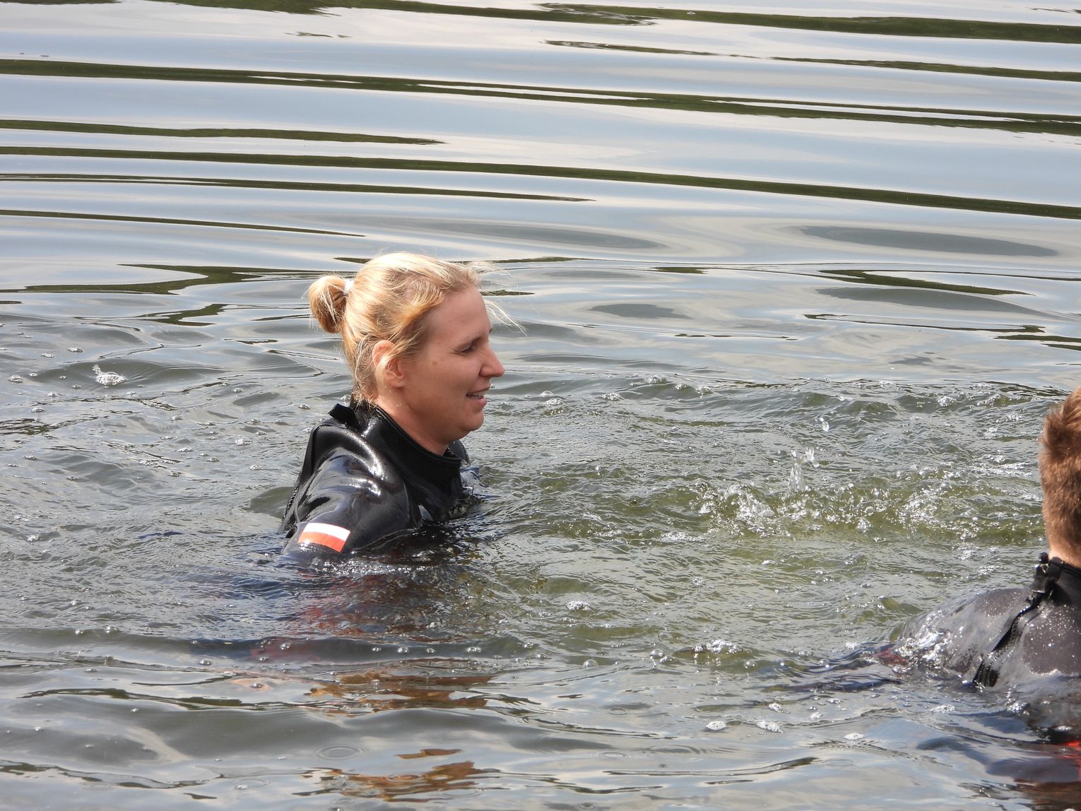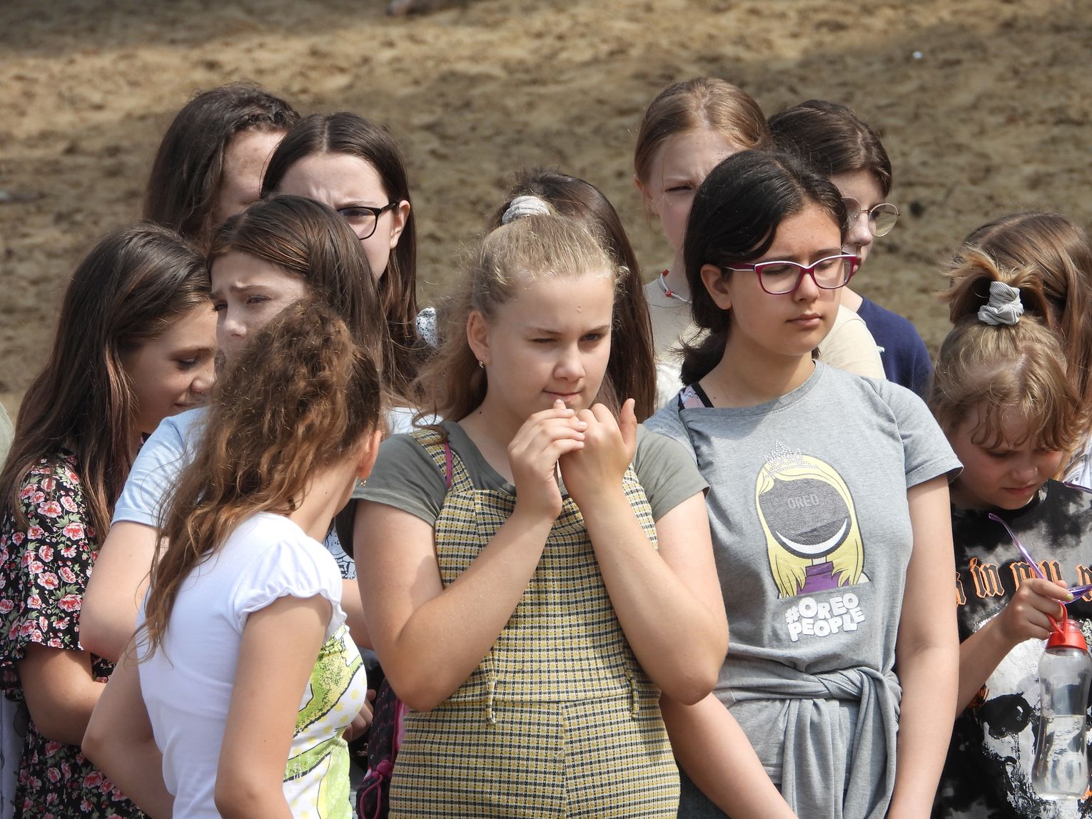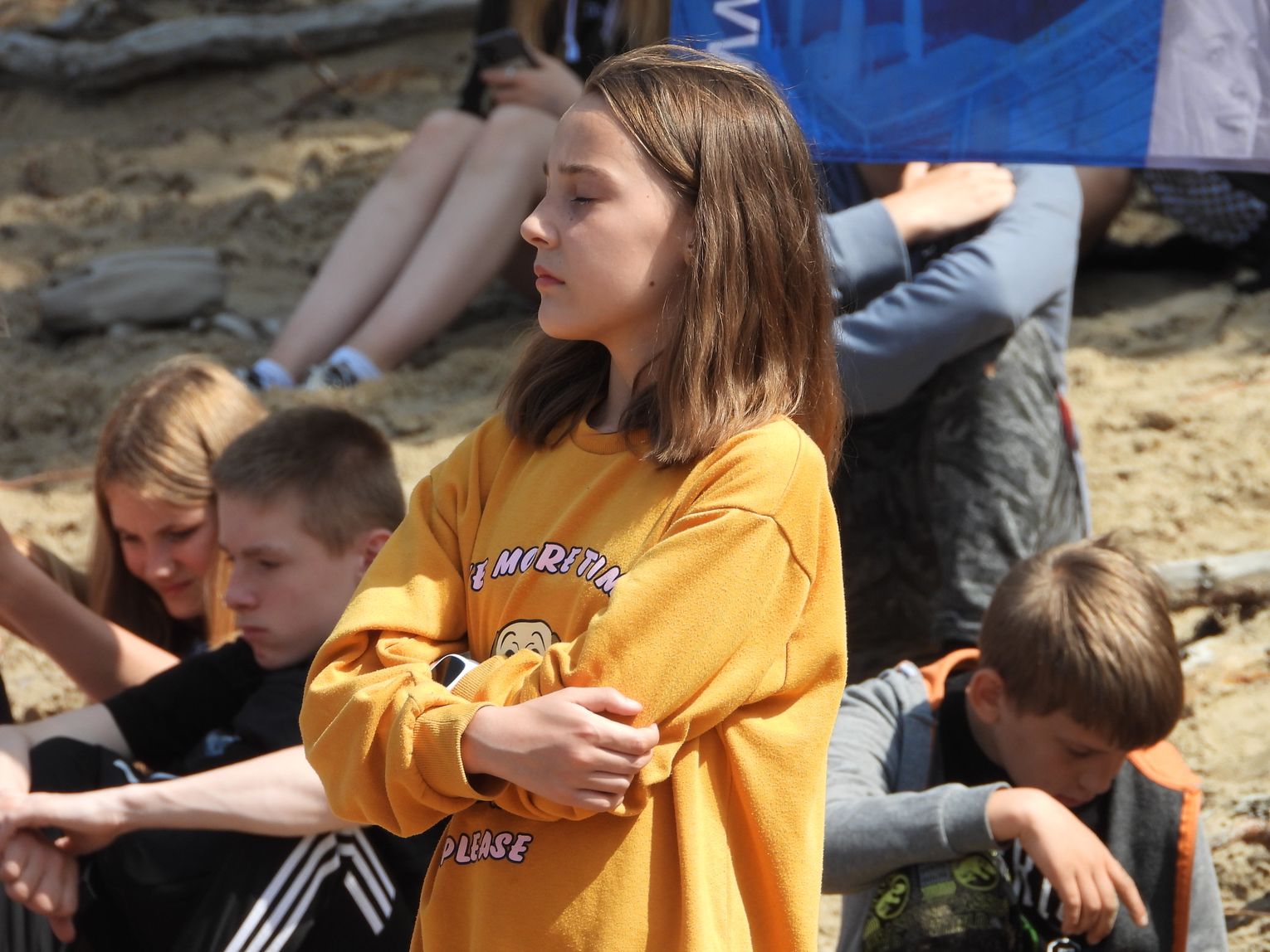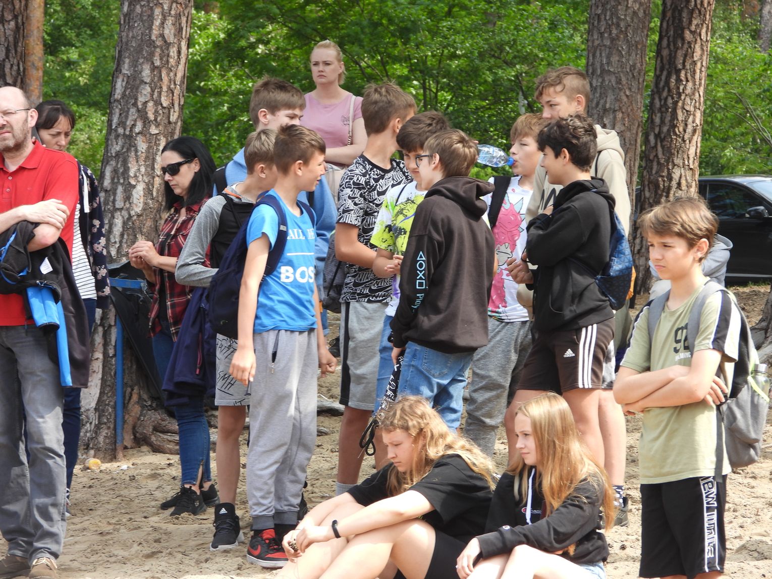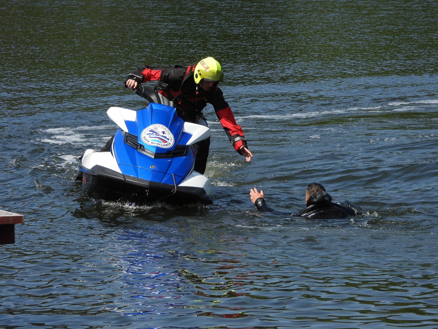Uczniom najpierw przedstawiono wiedzę teoretyczną. Po kilkunastu minutach odbyły się pokazy praktyczne. WOPR przedstawił kilka sposobów podejmowania z wody topiących się ludzi. Największe zainteresowanie wzbudziło użycie skutera wodnego. Jeden z funkcjonariuszy wcielił się w rolę osoby nietrzeźwej. Biegał po plaży z pustą butelką, a jego rajd zakończył się skokiem do jeziora. Mężczyzna zaczął się topić, ale z pomocą przyszedł mu funkcjonariusz policji. Ostatecznie "nietrzeźwy" został uratowany, a na brzegu założono mu kajdanki.