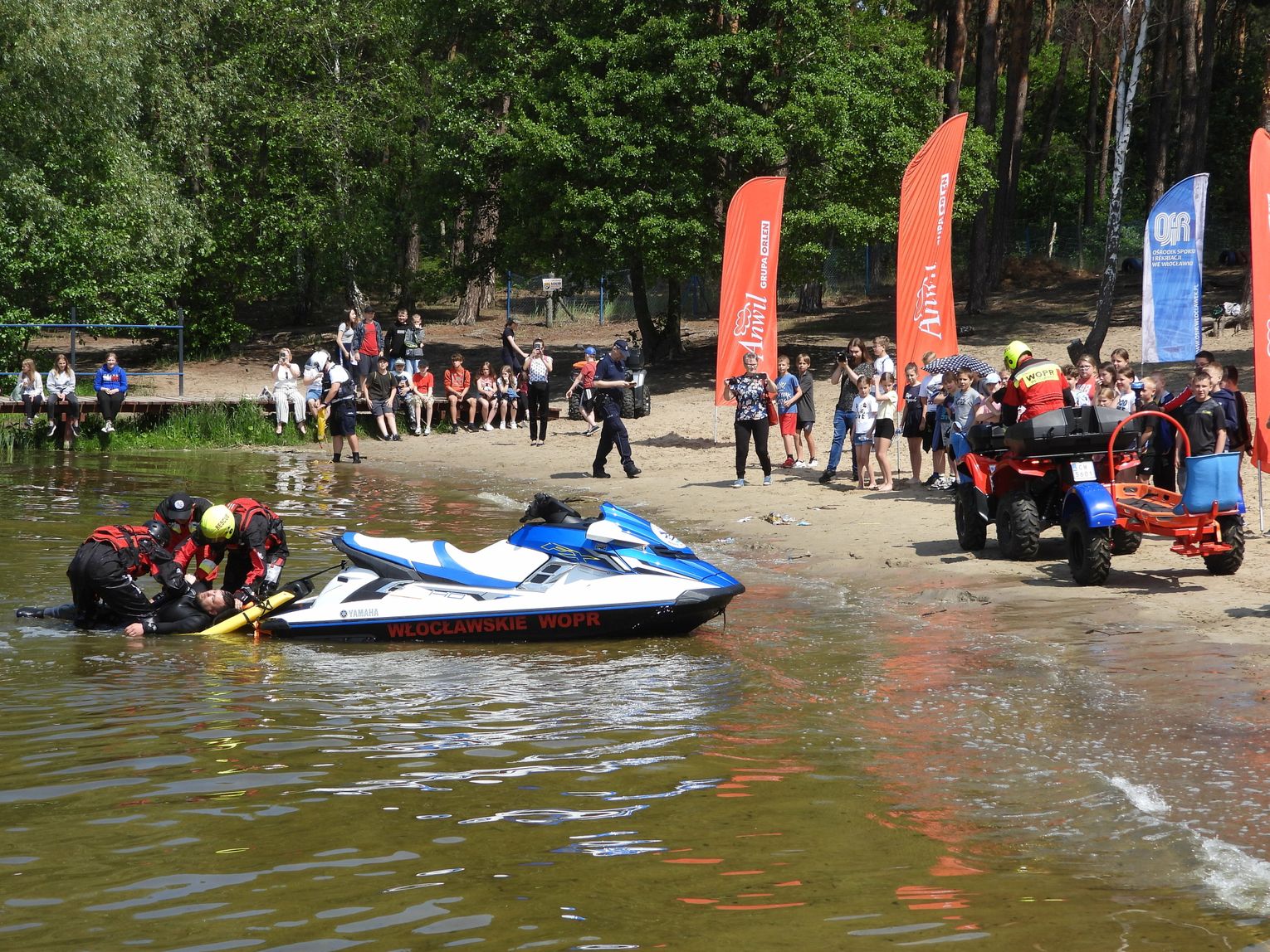 Temperatury za naszymi oknami już dawno przekroczyło 20 stopni Celsjusza. Wielkimi krokami zbliżają się wakacje. Wiele osób, zwłaszcza dzieci będą wolne od szkoły słoneczne dni spędzać nad jeziorami znajdującymi się w pobliżu naszego miasta. W tym czasie może dojść do wypadków. Jak się w takich sytuacjach zachować pokazali dzieciom policjanci oraz WOPR. Pokazy dla uczniów włocławskich szkół rozpoczęły się dziś o godzinie 10:00 nad Jeziorem Czarne.
